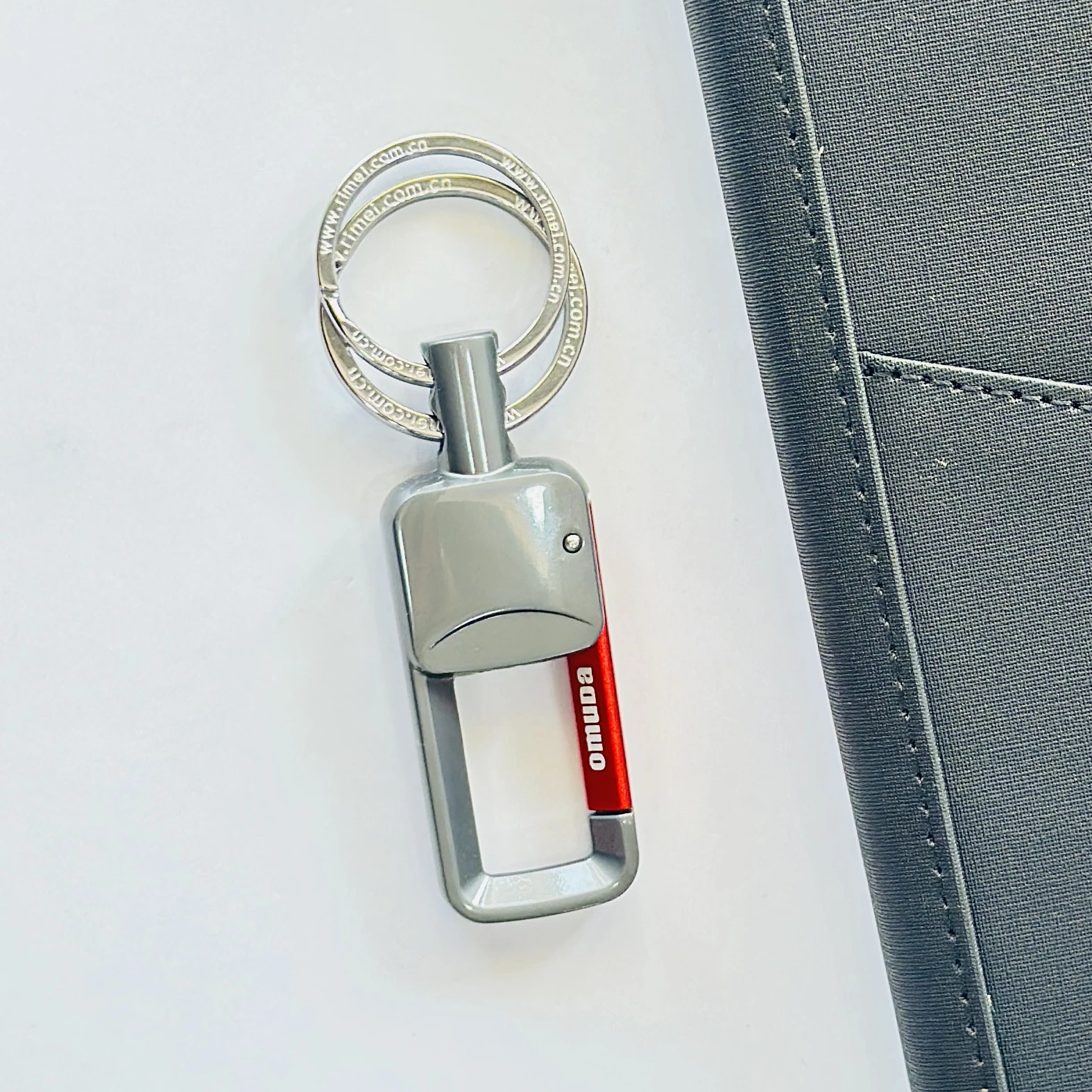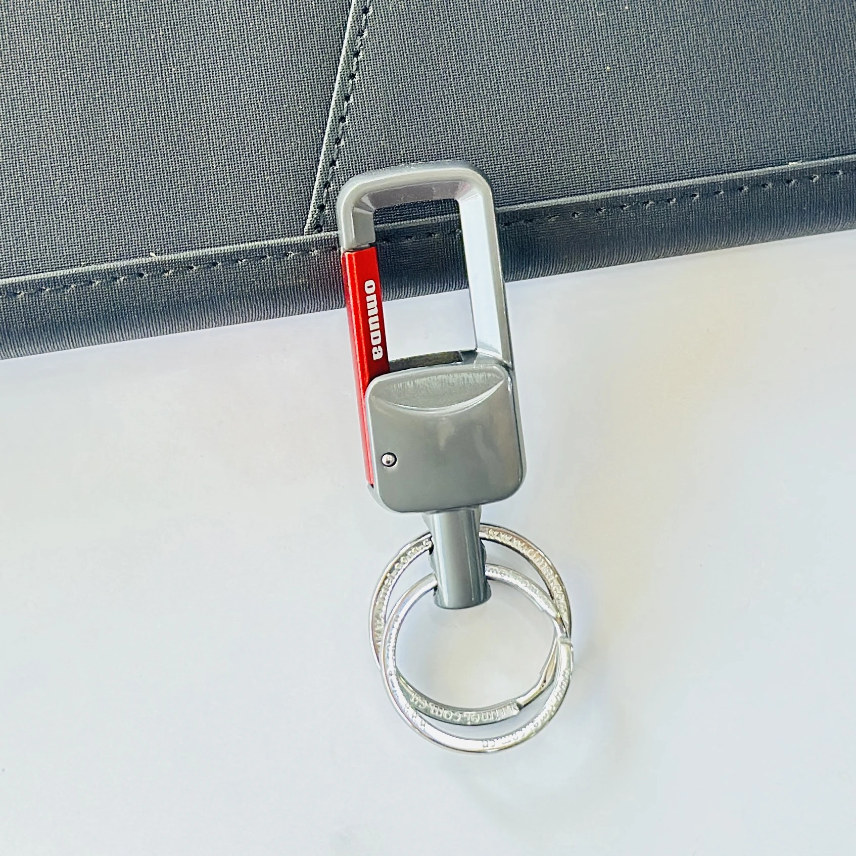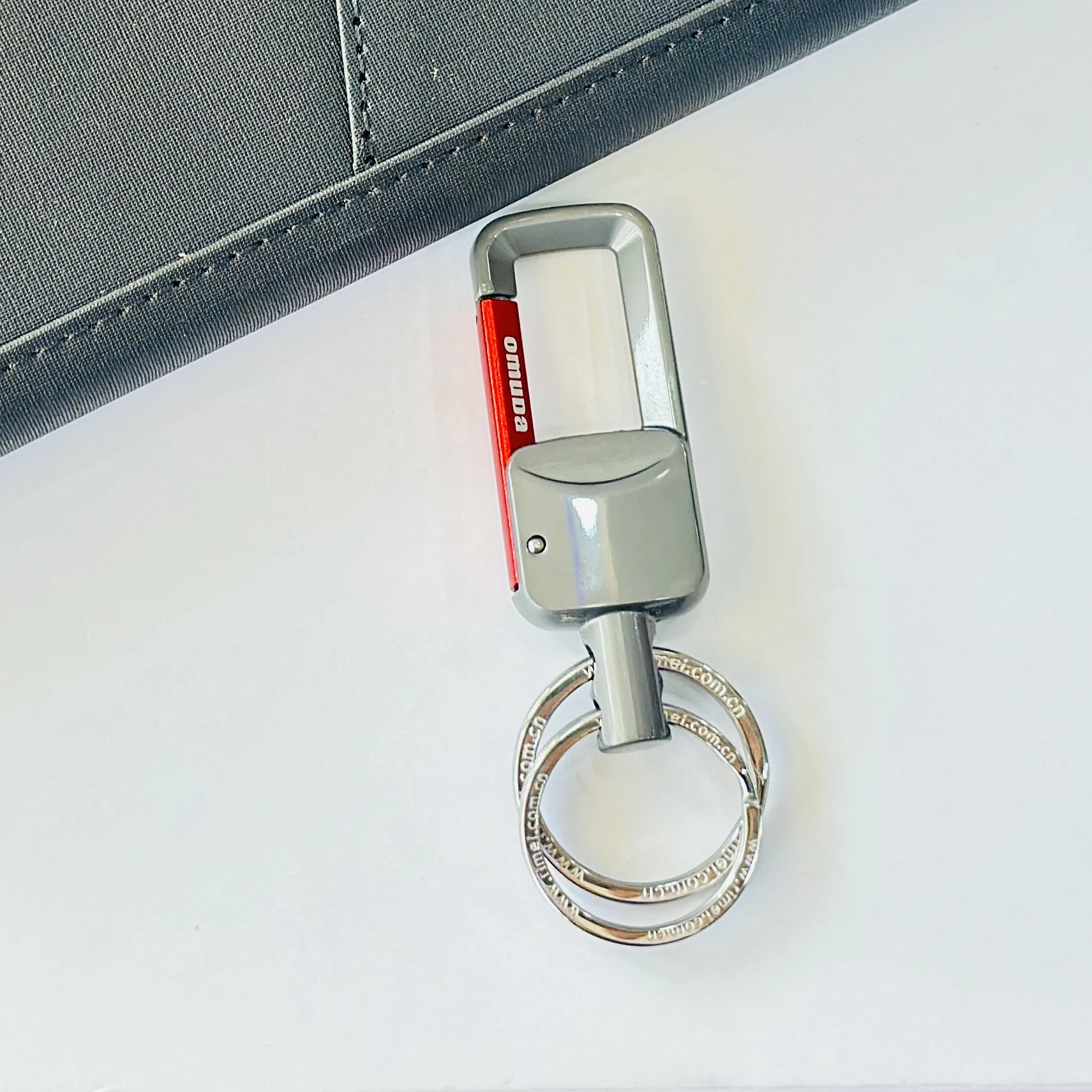 Omuda stylish hook locking metal carabiner double ring keychain