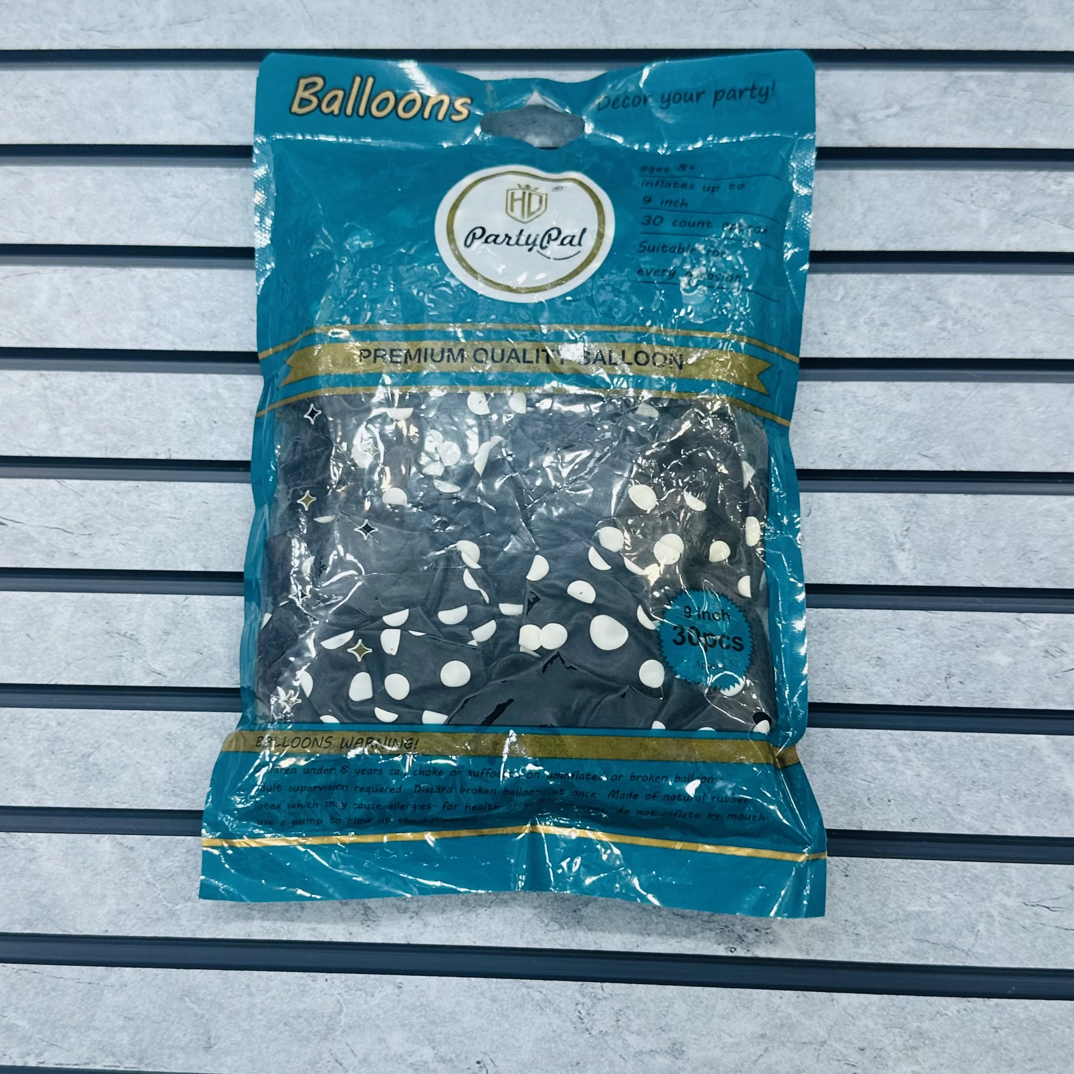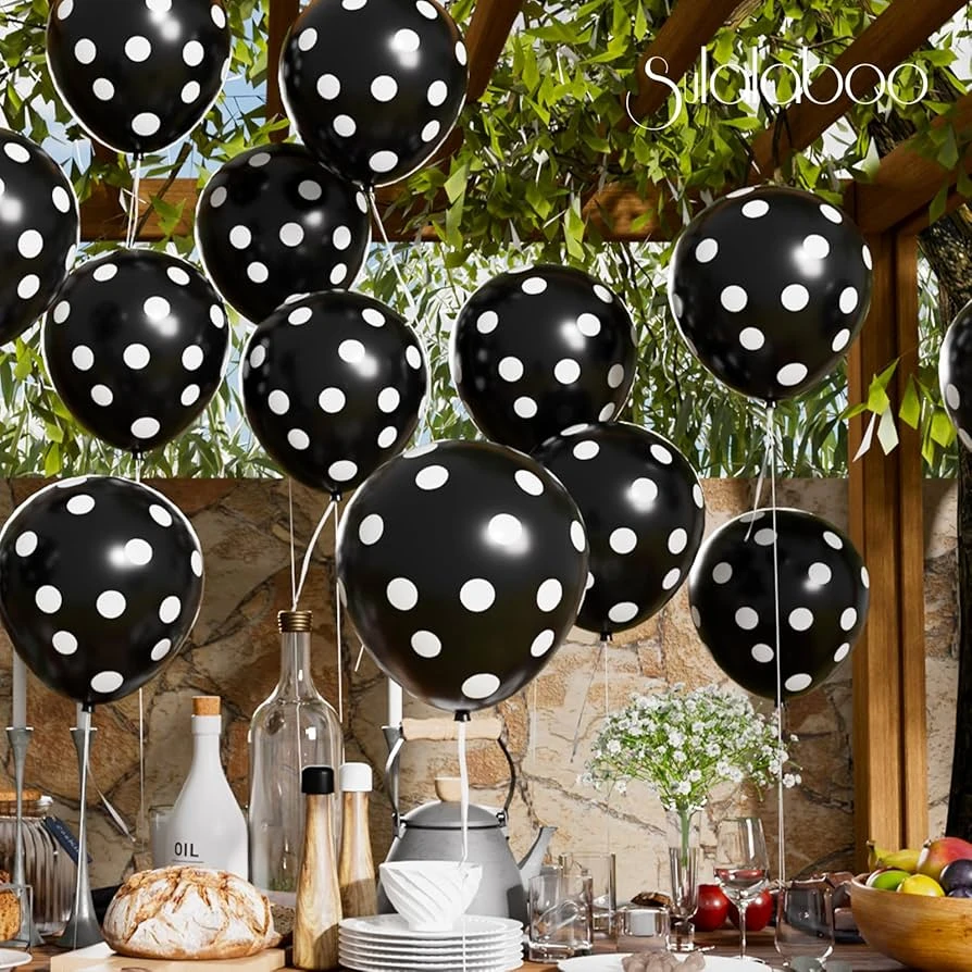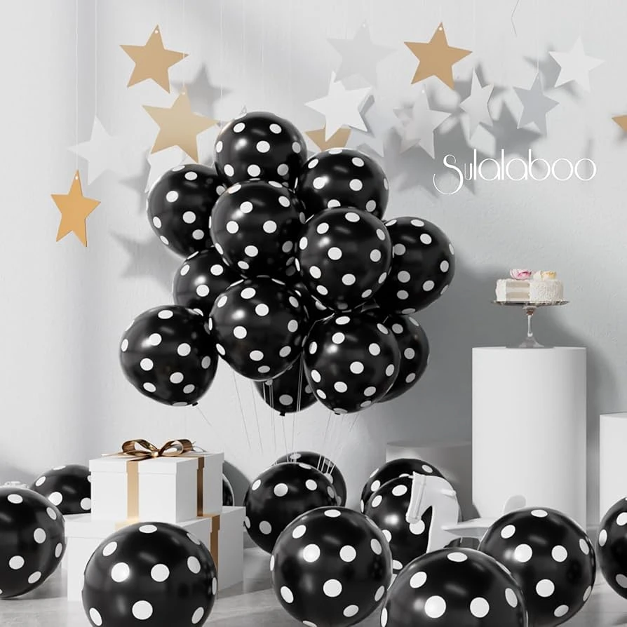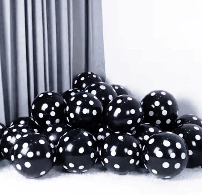 👉Theme :- package of Black party balloons with white polka dots.