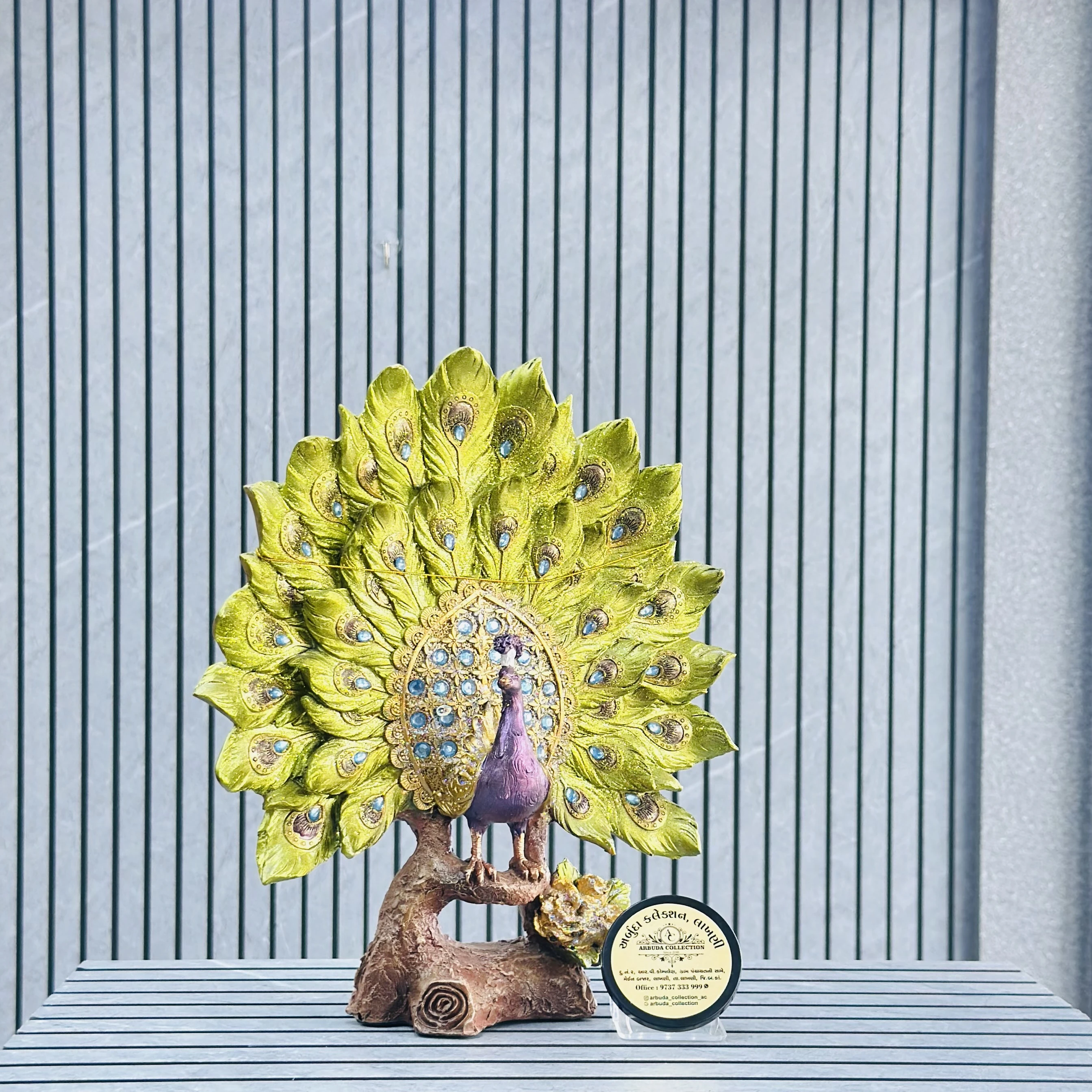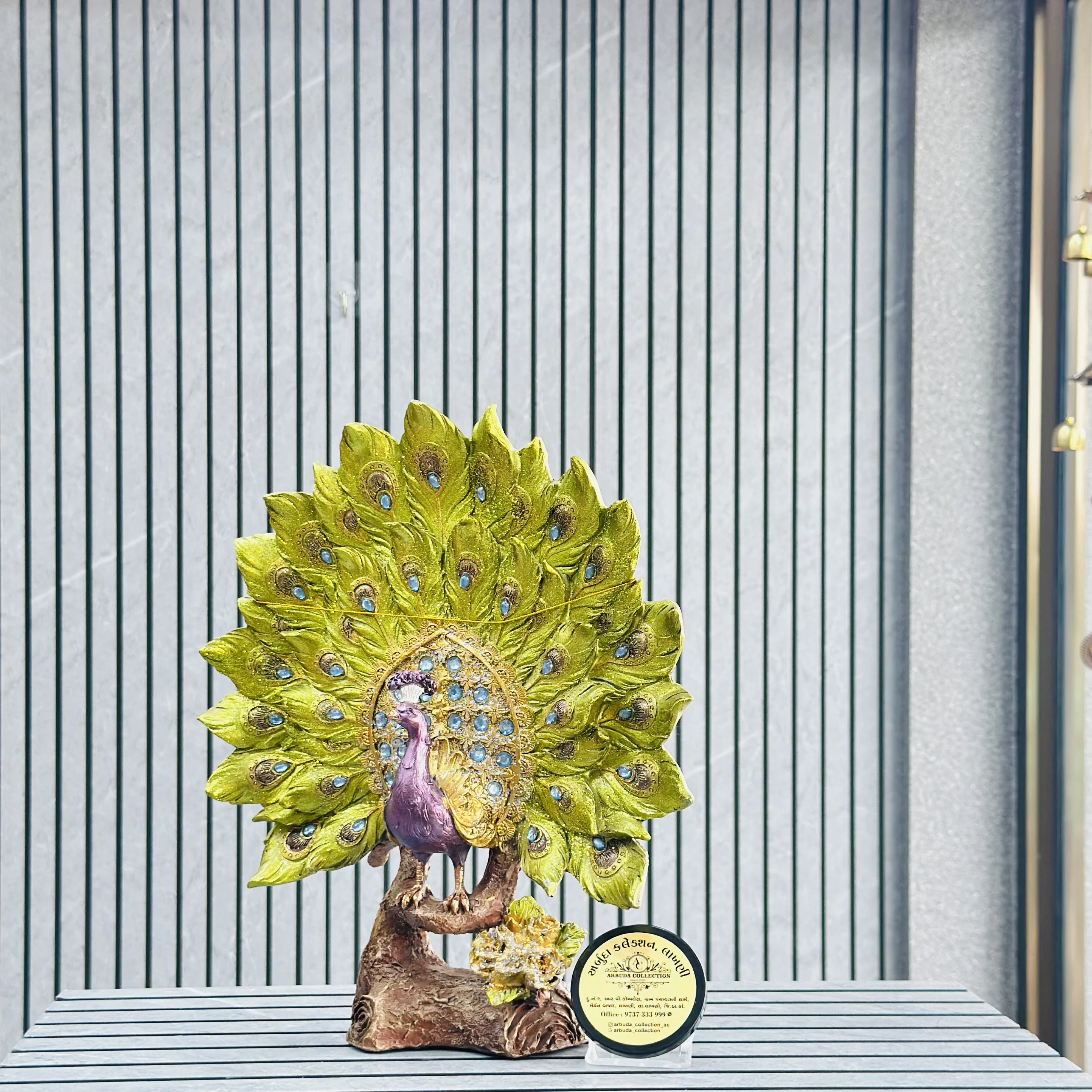 *✅ ARBUDA COLLECTION ✅* *✅9737333999✅* Theme :- Peacock pride Showpiece Brand :- arbuda collection lakhani Colour:- mixed Style:- Designer Fancy look Material:- decorative sculpture Dimensions :- 10 hight, 3 width Uses :- peacock statue table decor, crafted from resin and featuring a majestic peacock with a glittering tail Cleaning:- wipe clean with a dry cloth Origin:- made in India by local artists Other words:- limited addition…