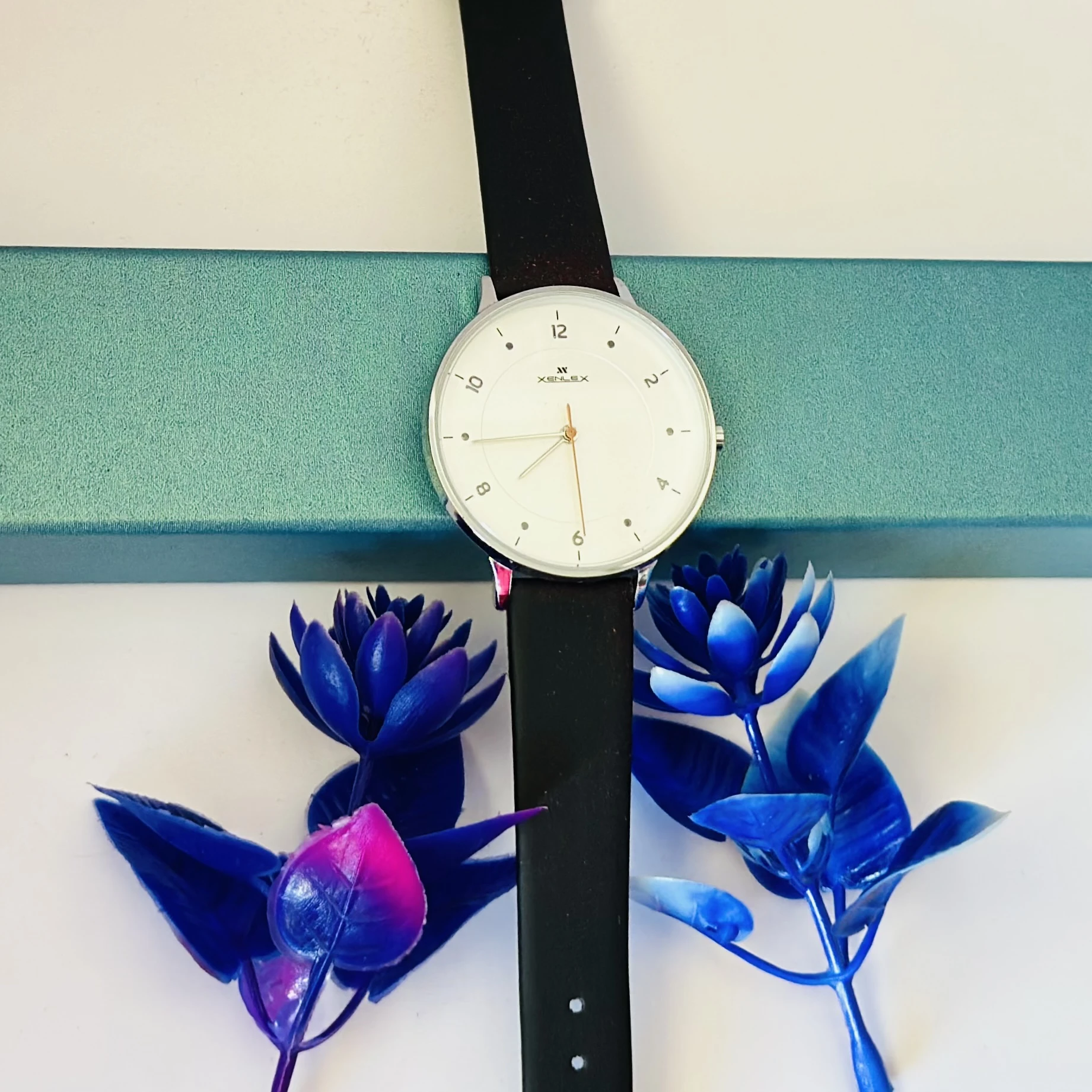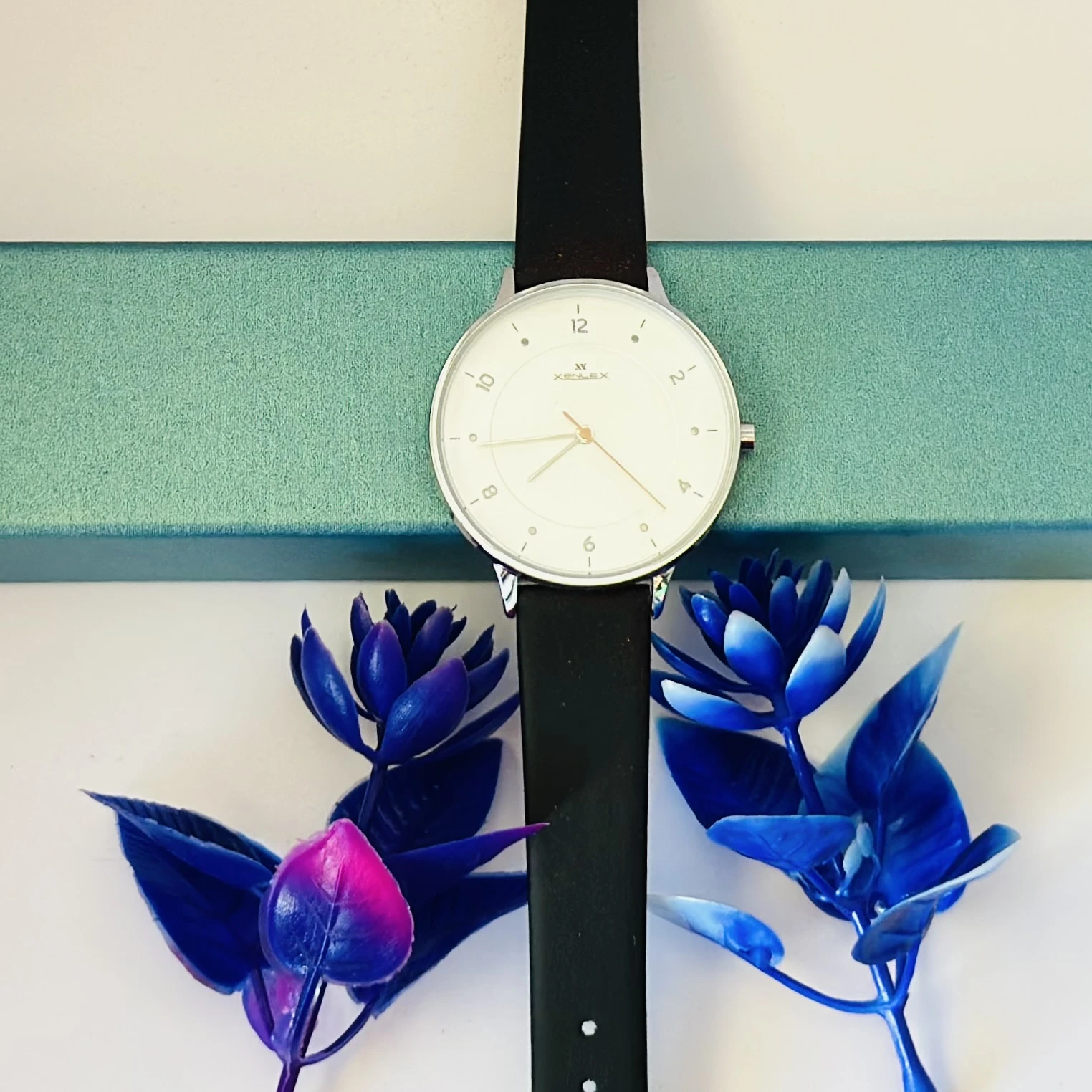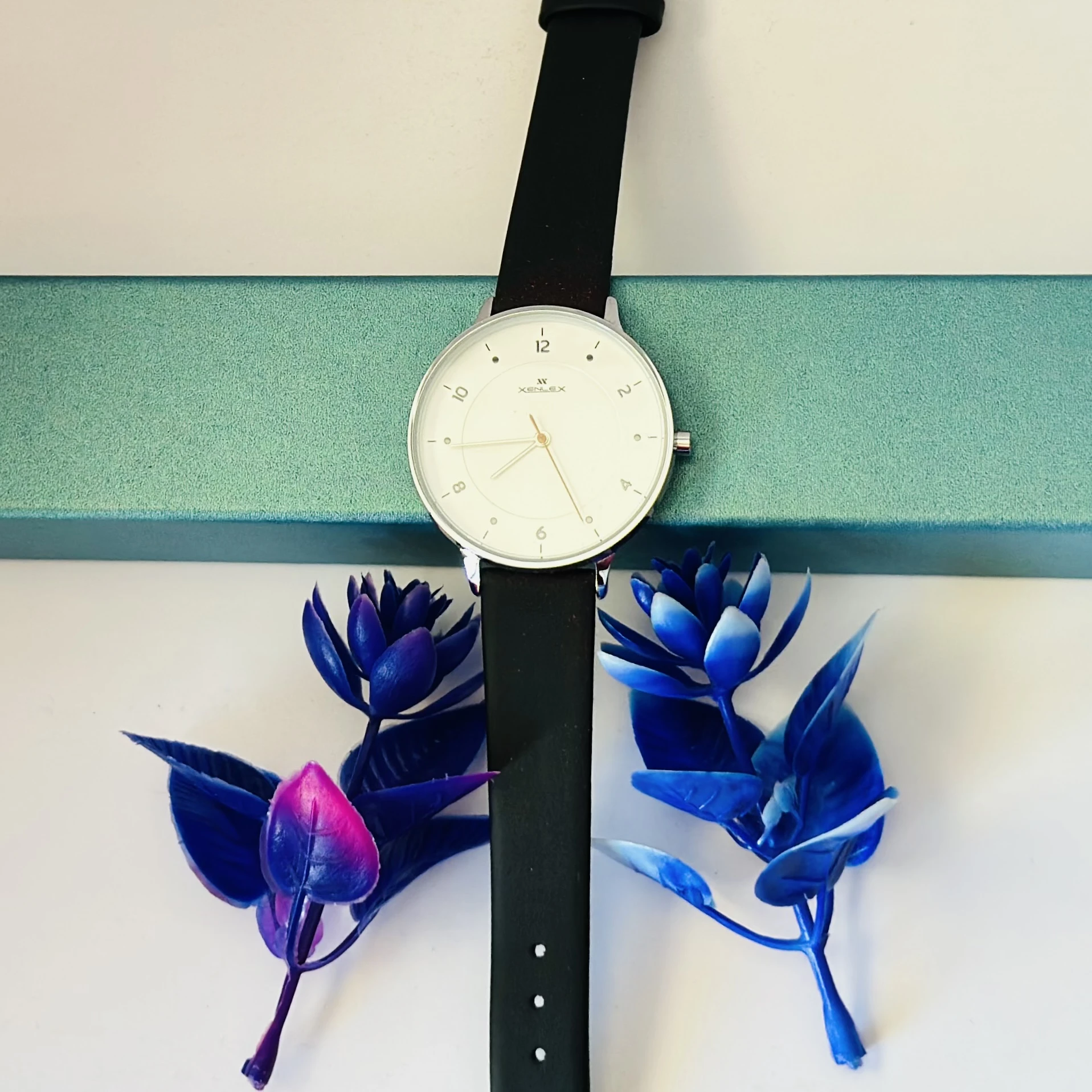 👉 Theme :- Pierre Cardin Belleville Simplicity analogue watch with a white dial and black leather strap.