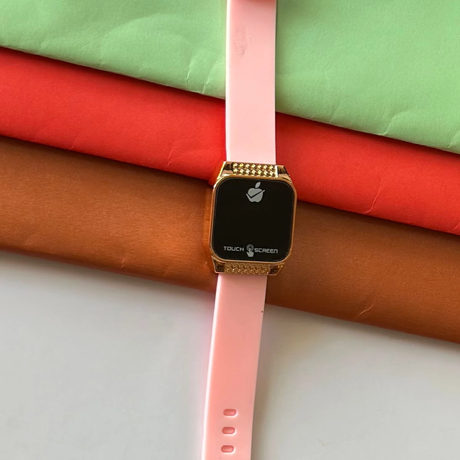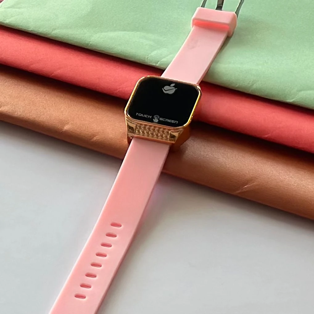 👉 Theme :- pink digital wristwatch with a pink silicone strap.