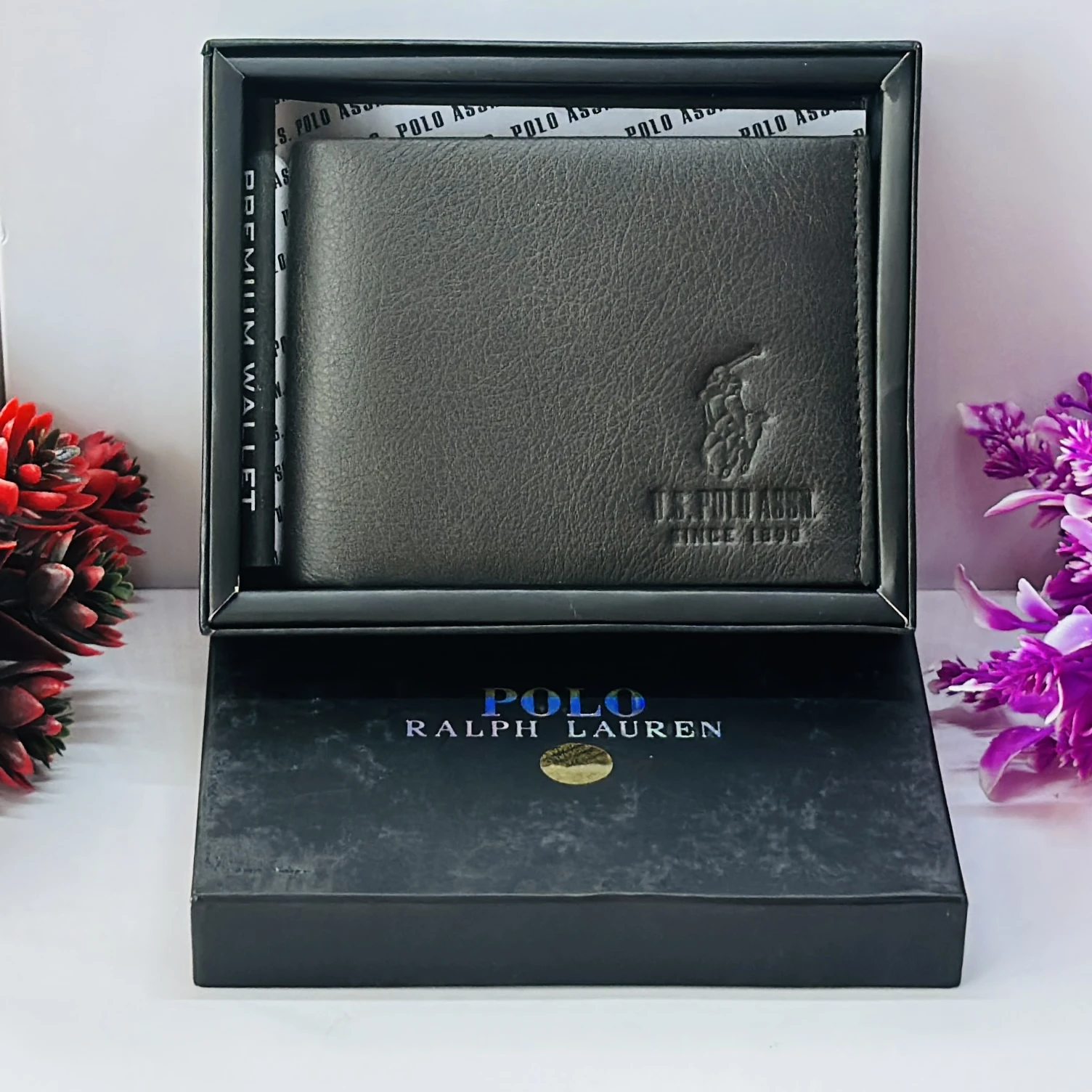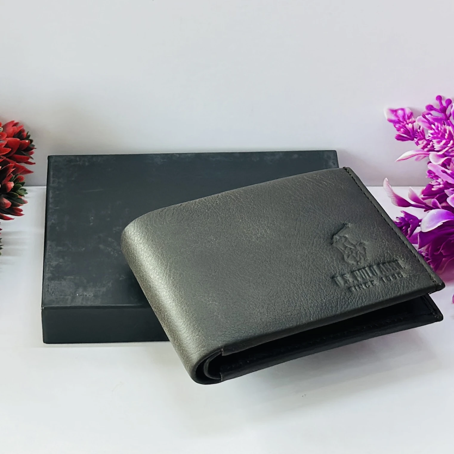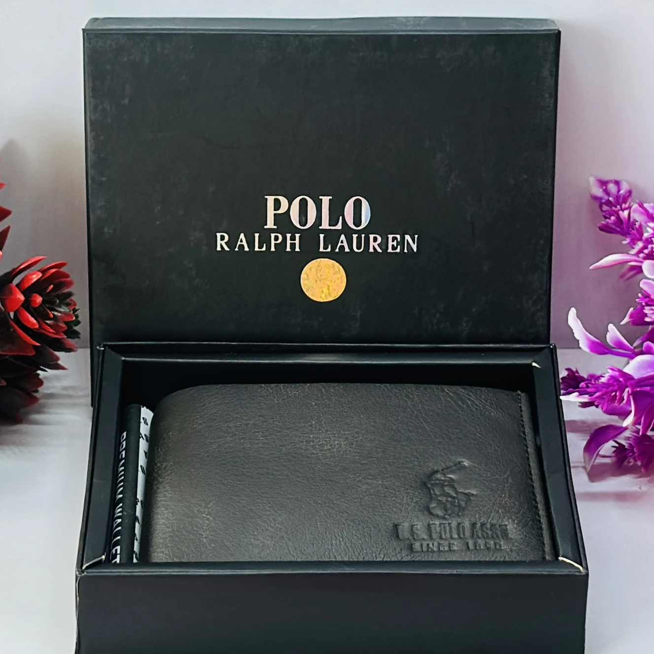 👉 Theme :- Polo Ralph Lauren men's black textured leather bifold wallet.