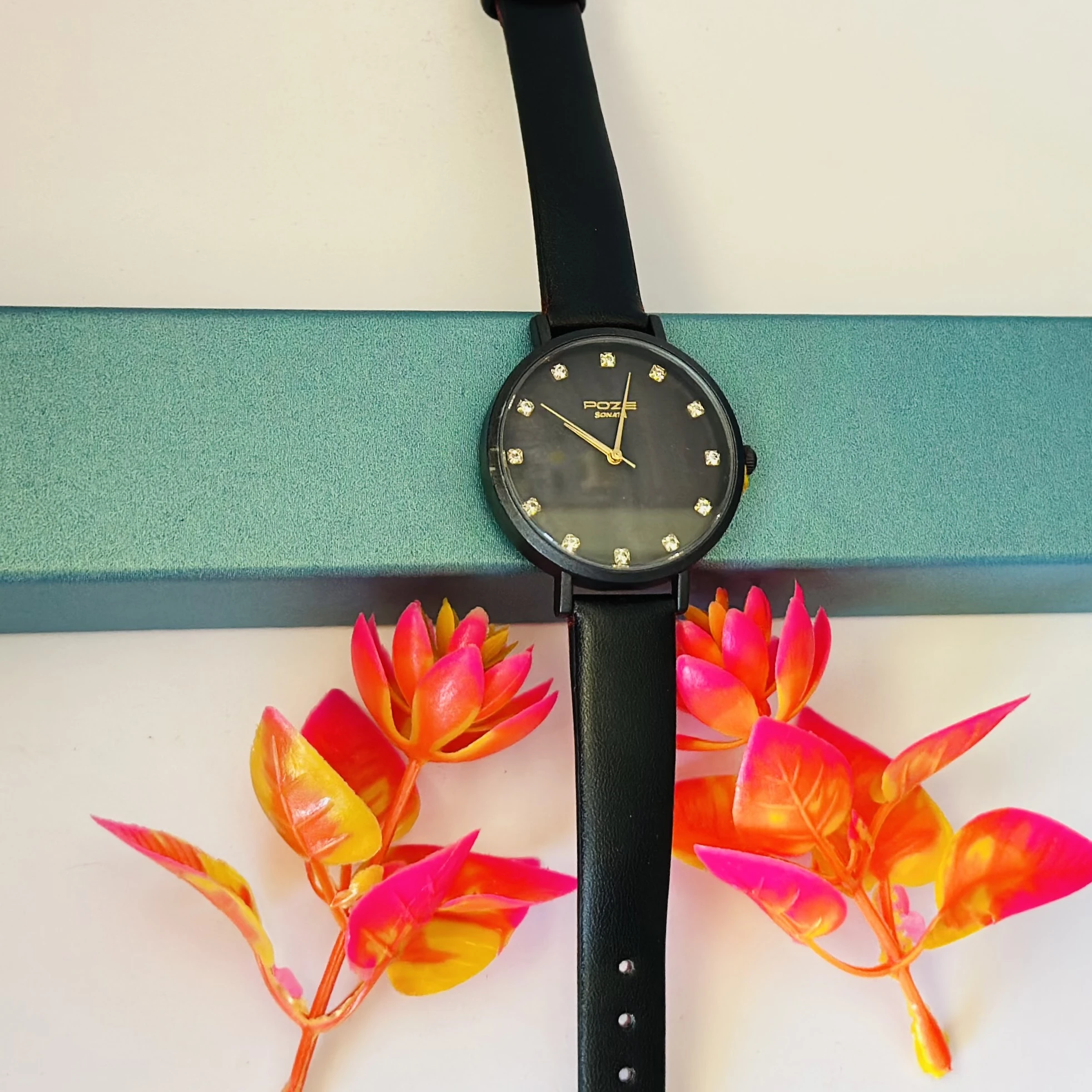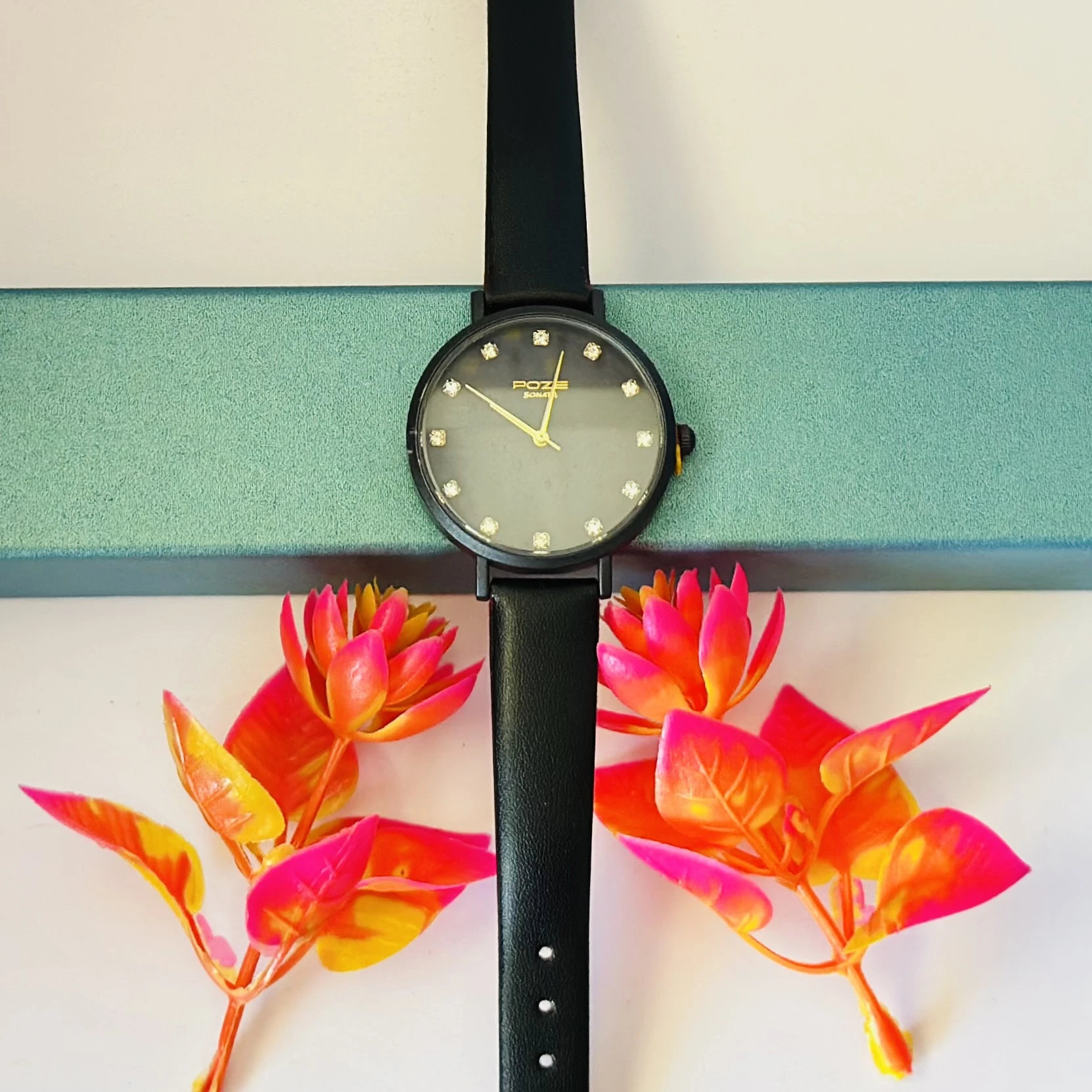 👉 Theme :- Poze by Sonata Quartz Analog Black Dial PU Leather Strap Watch for Women