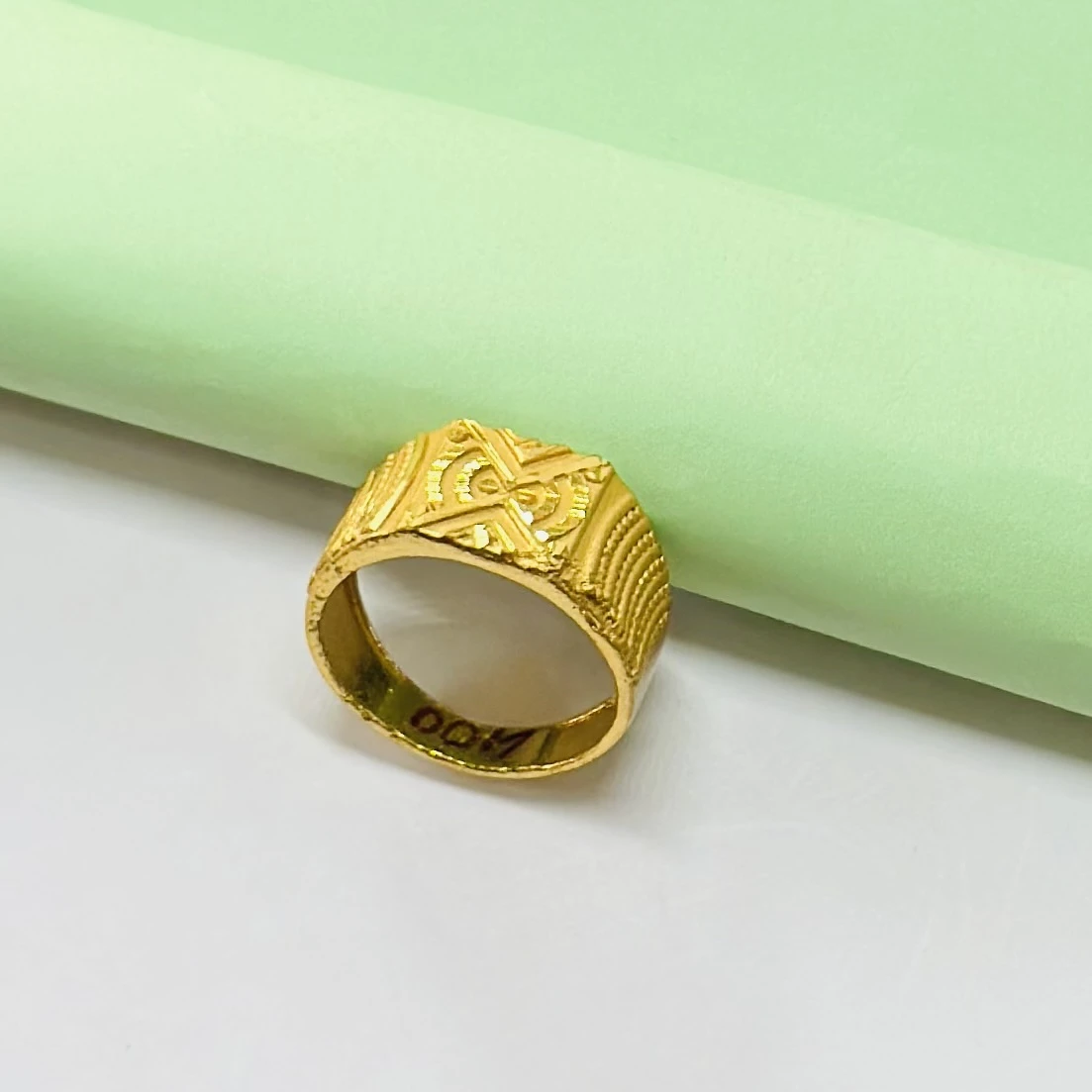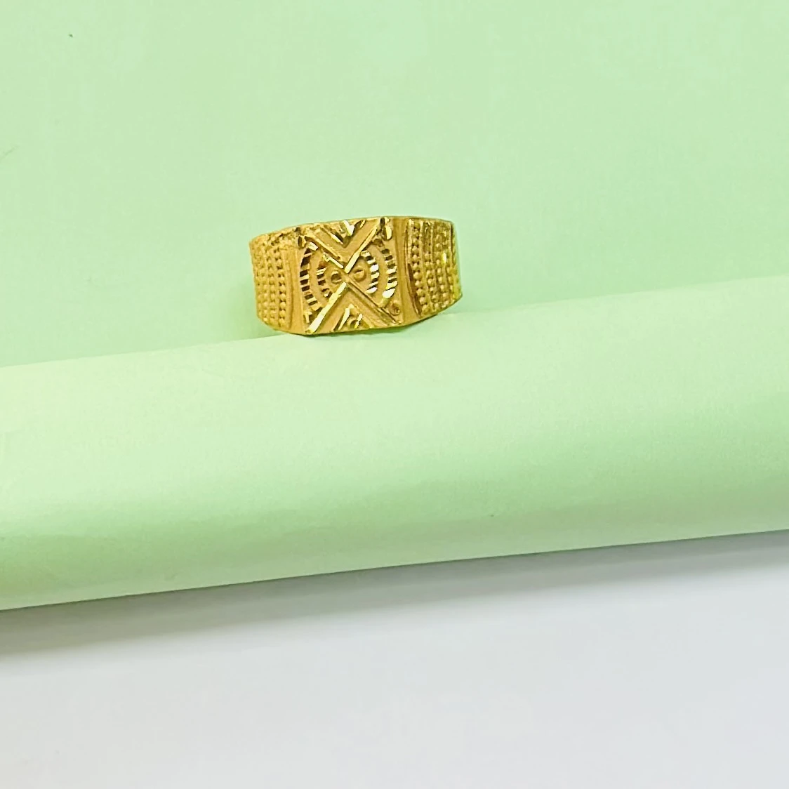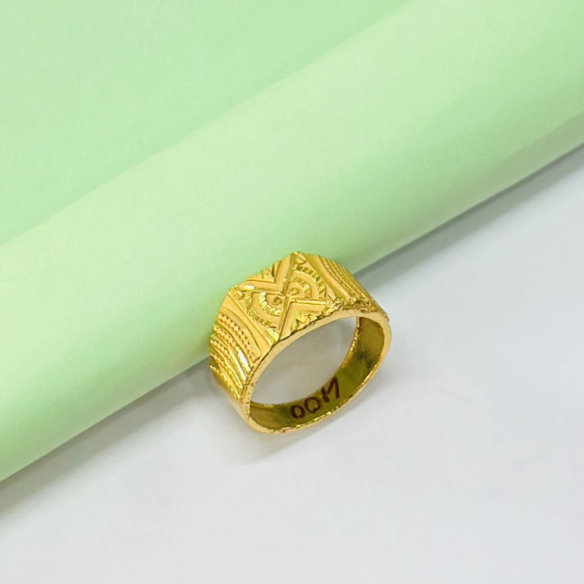Premium Rectangular Gold-Plated, Gold Look Finely Detailed Handmade Ring for Men