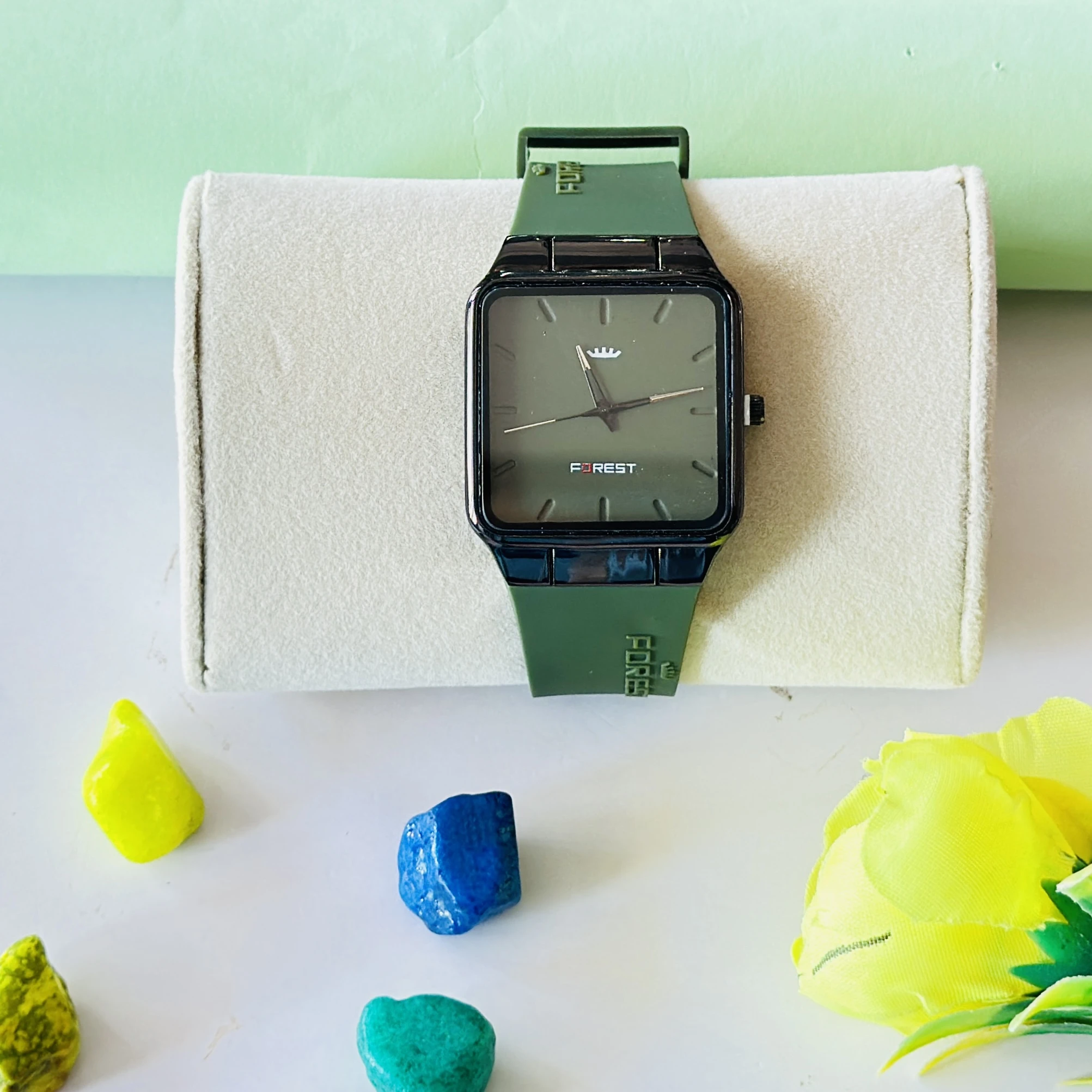 Forest Men's Analog Watch with a square dial case and quartz movement.