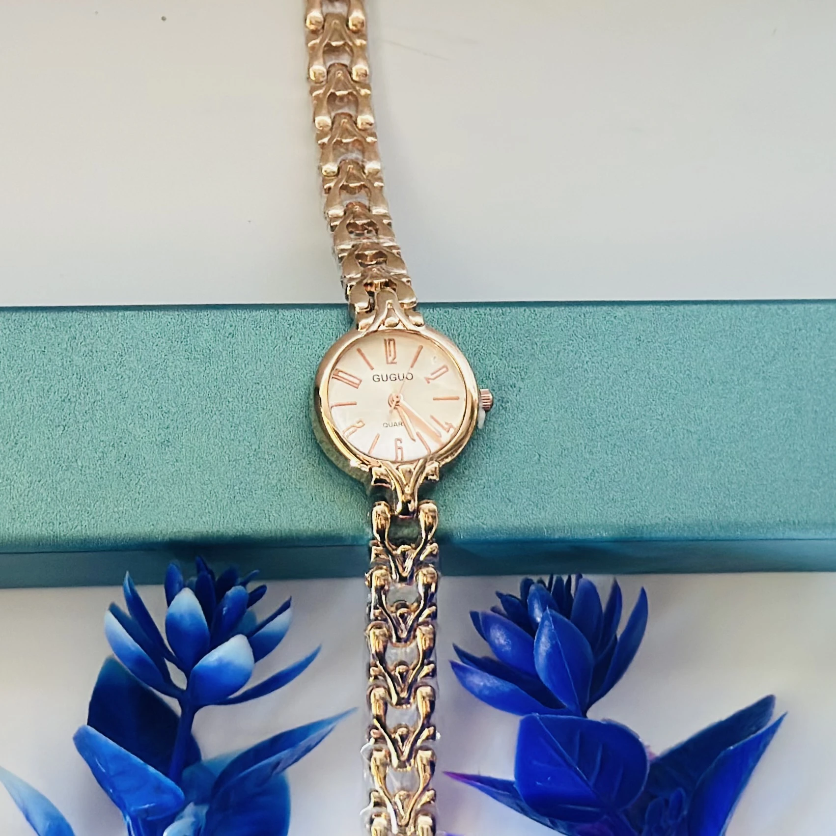 👉 Theme :- quartz analog women's rose gold-toned bracelet watch.