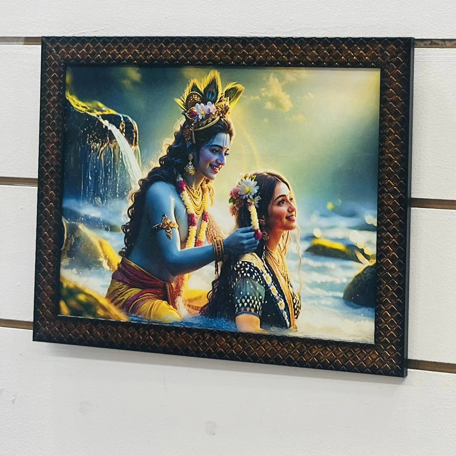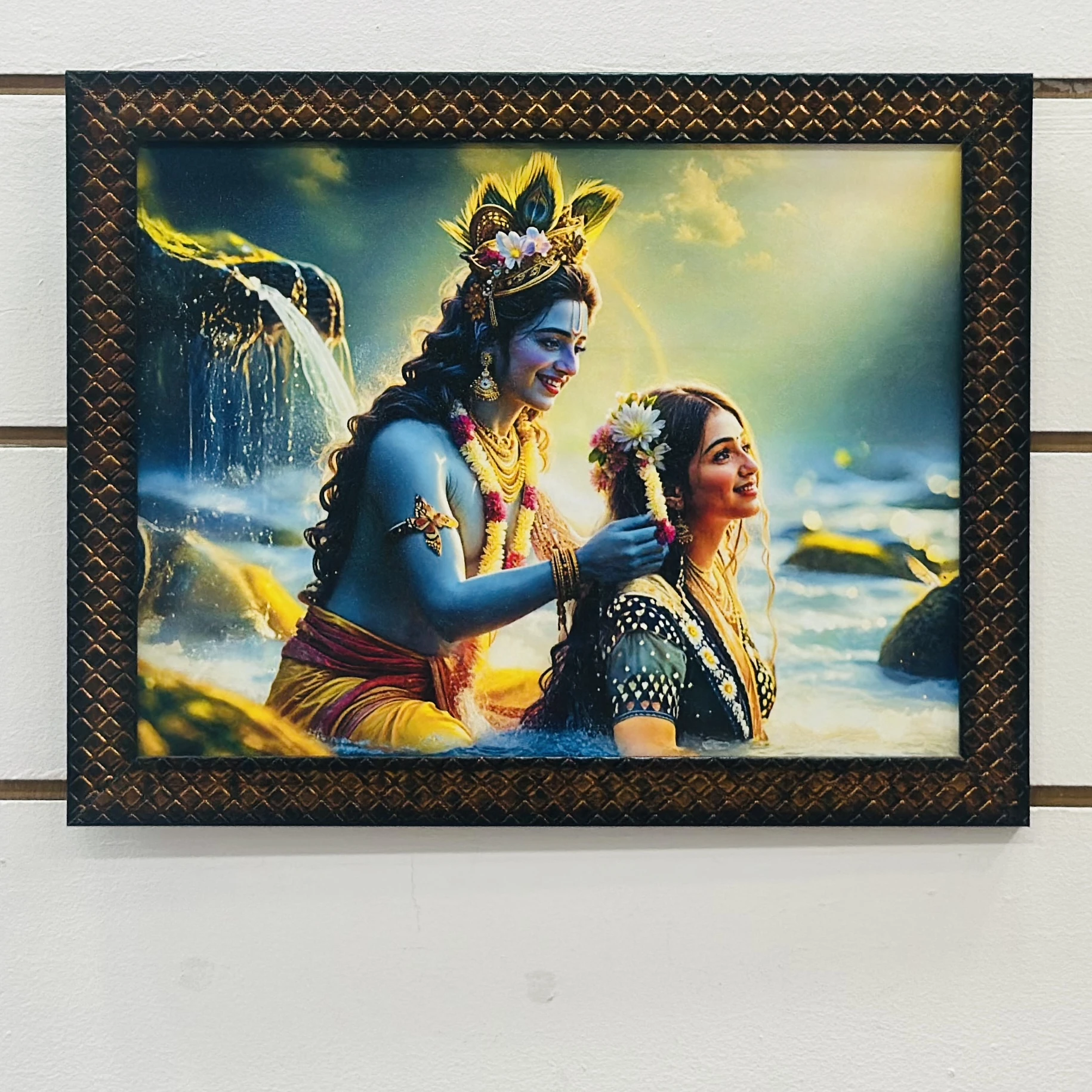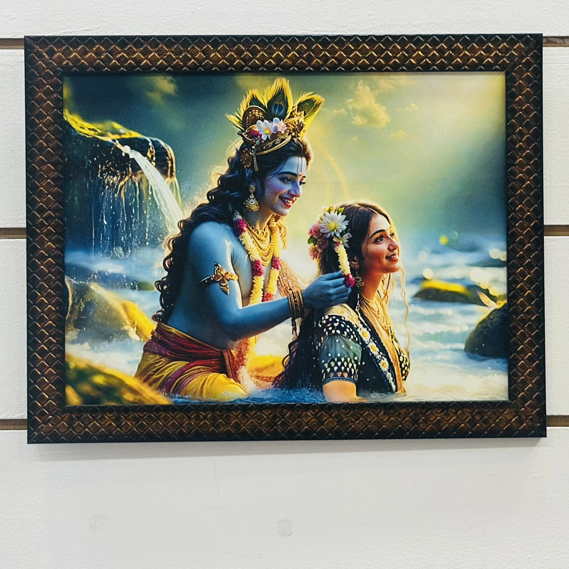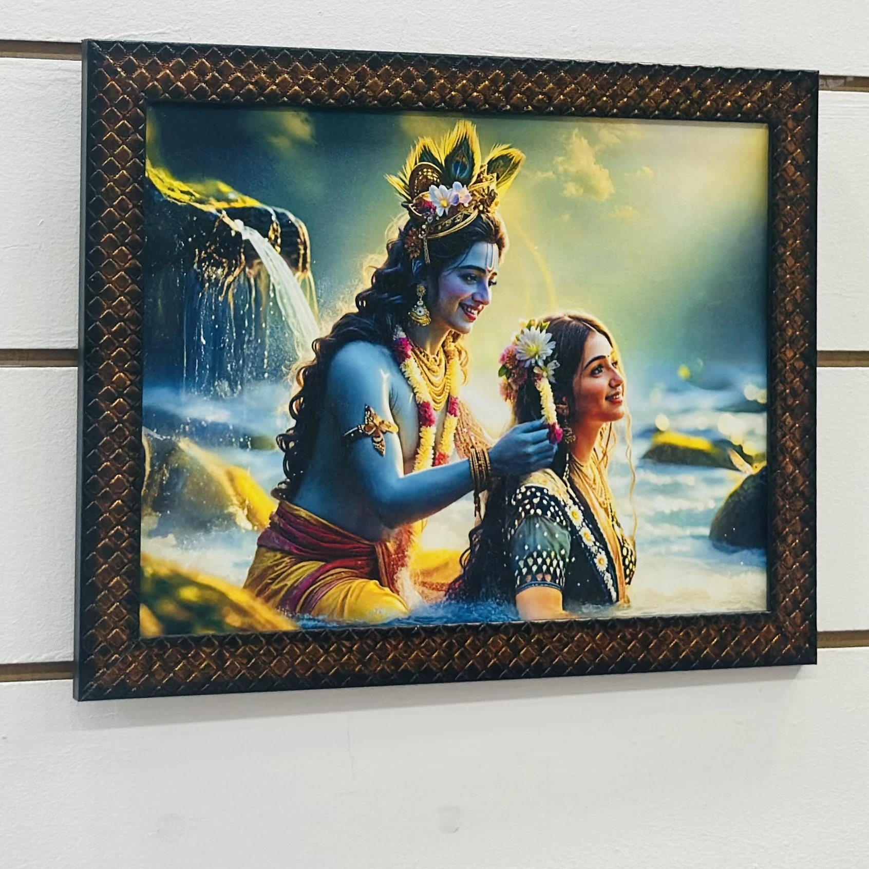 Radha Krishna wall painting (SKU CEVBF8 )featuring a synthetic or textured frame.