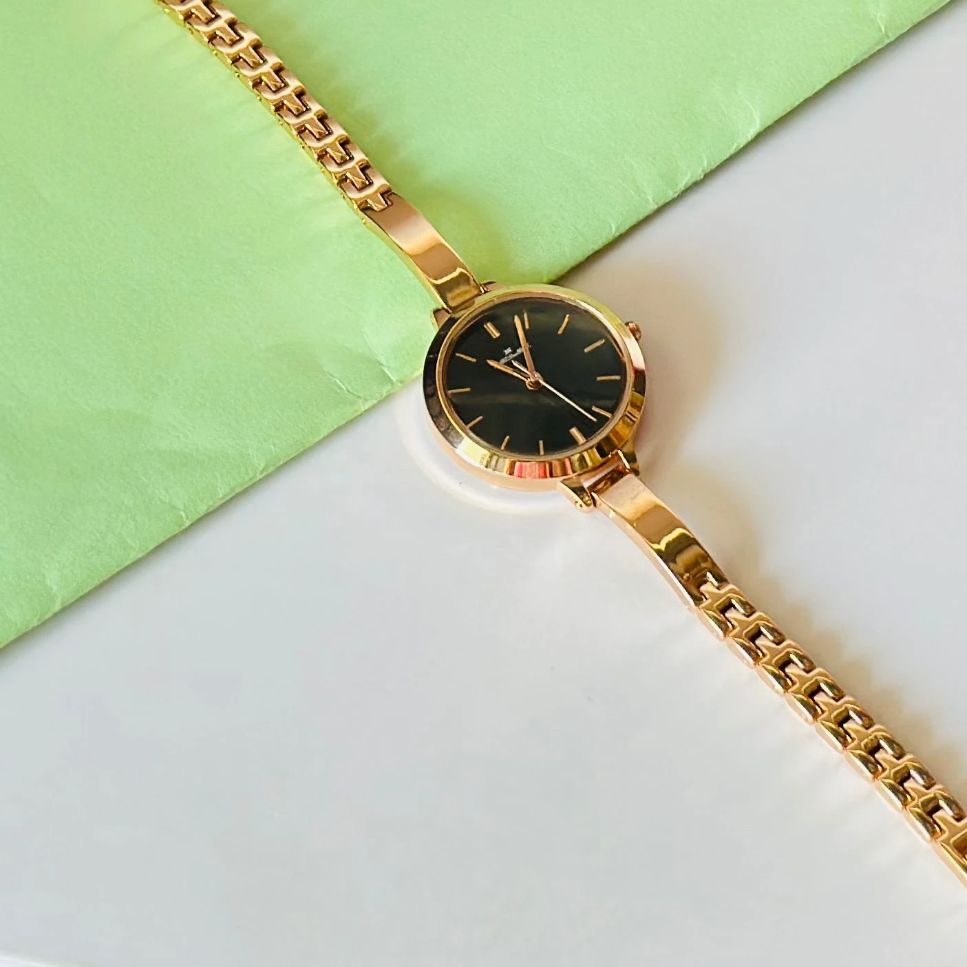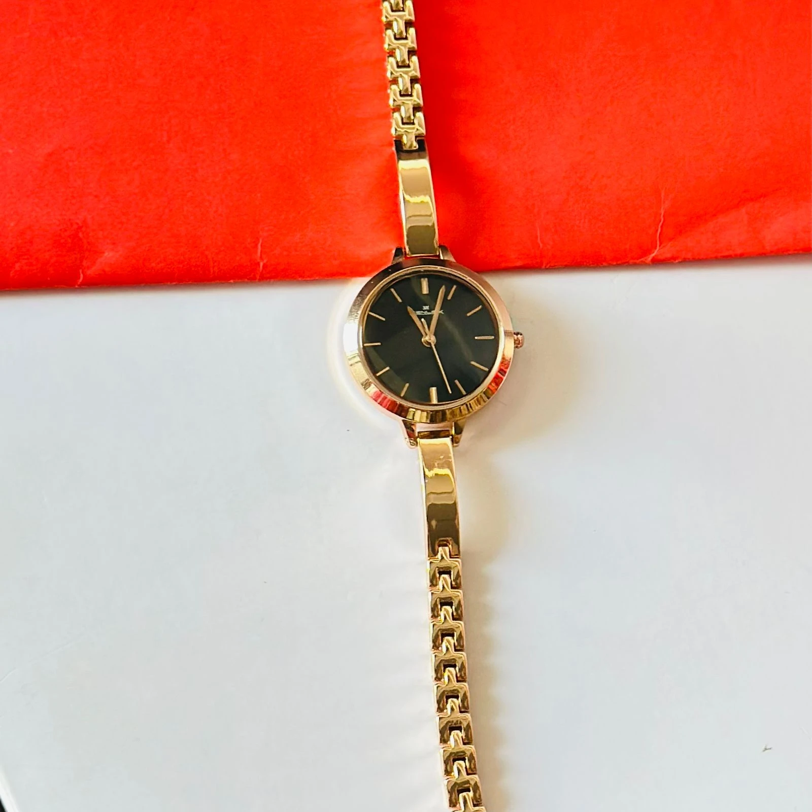 👉 Theme :- Raga Viva quartz analog watch for women with a rose gold metal strap and black dial.
