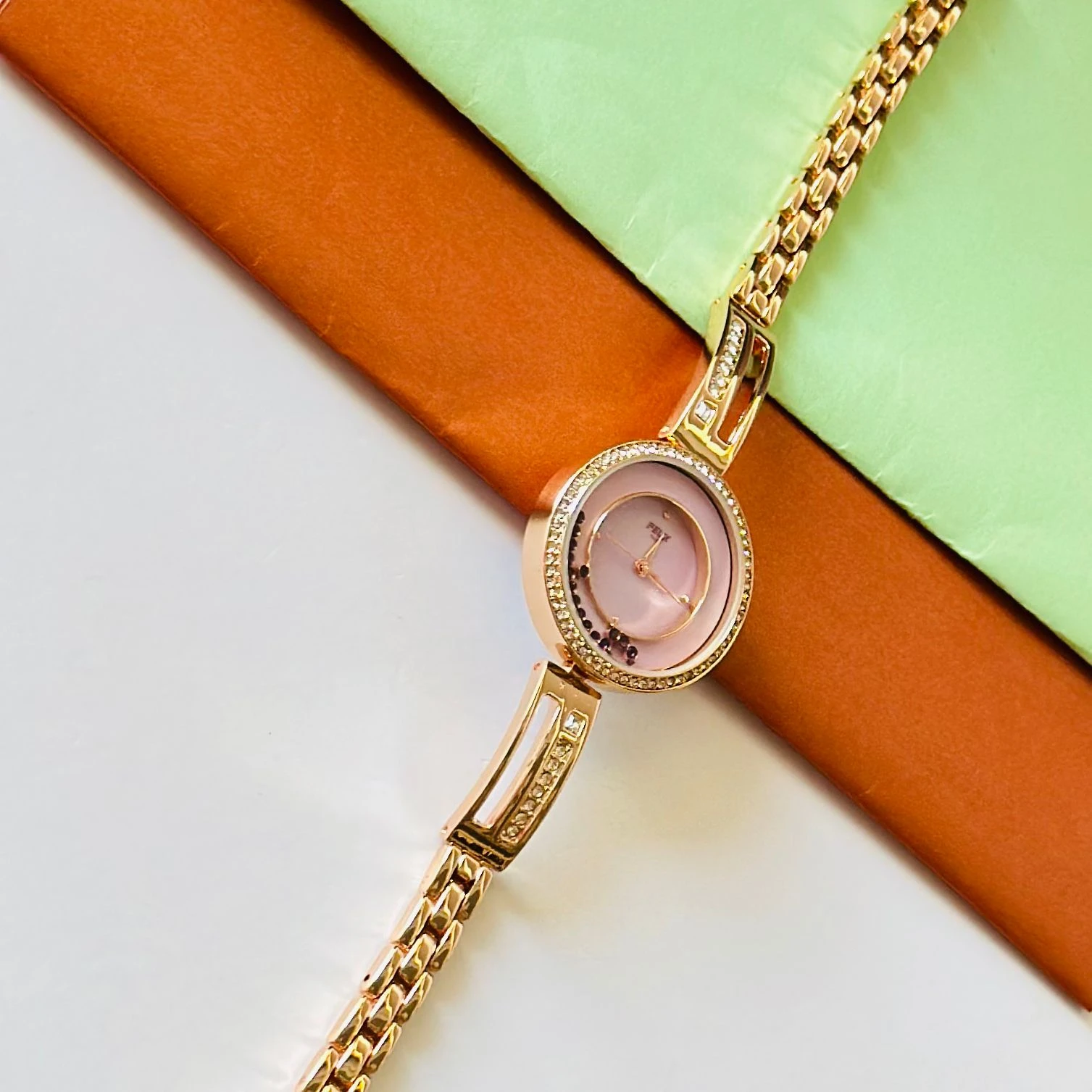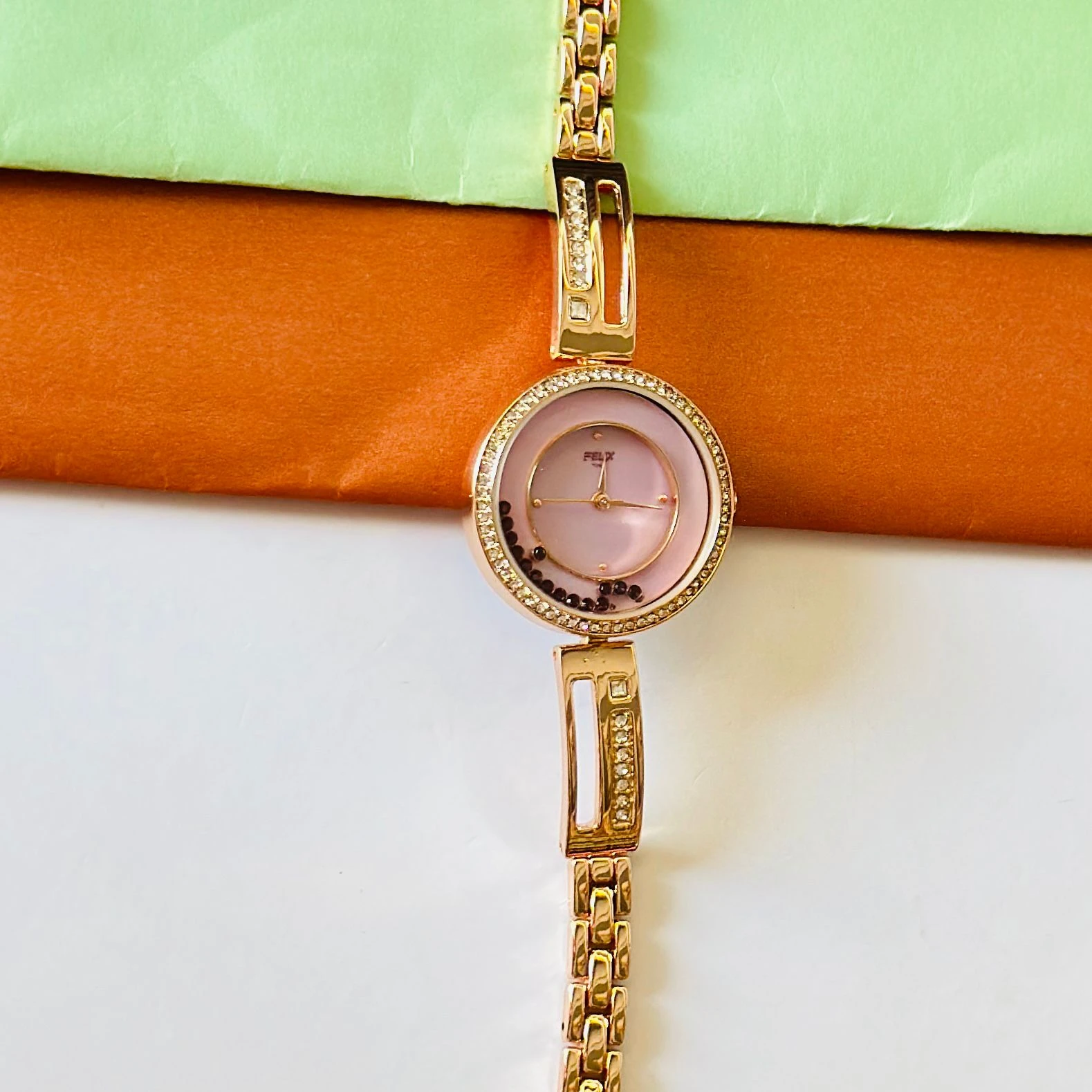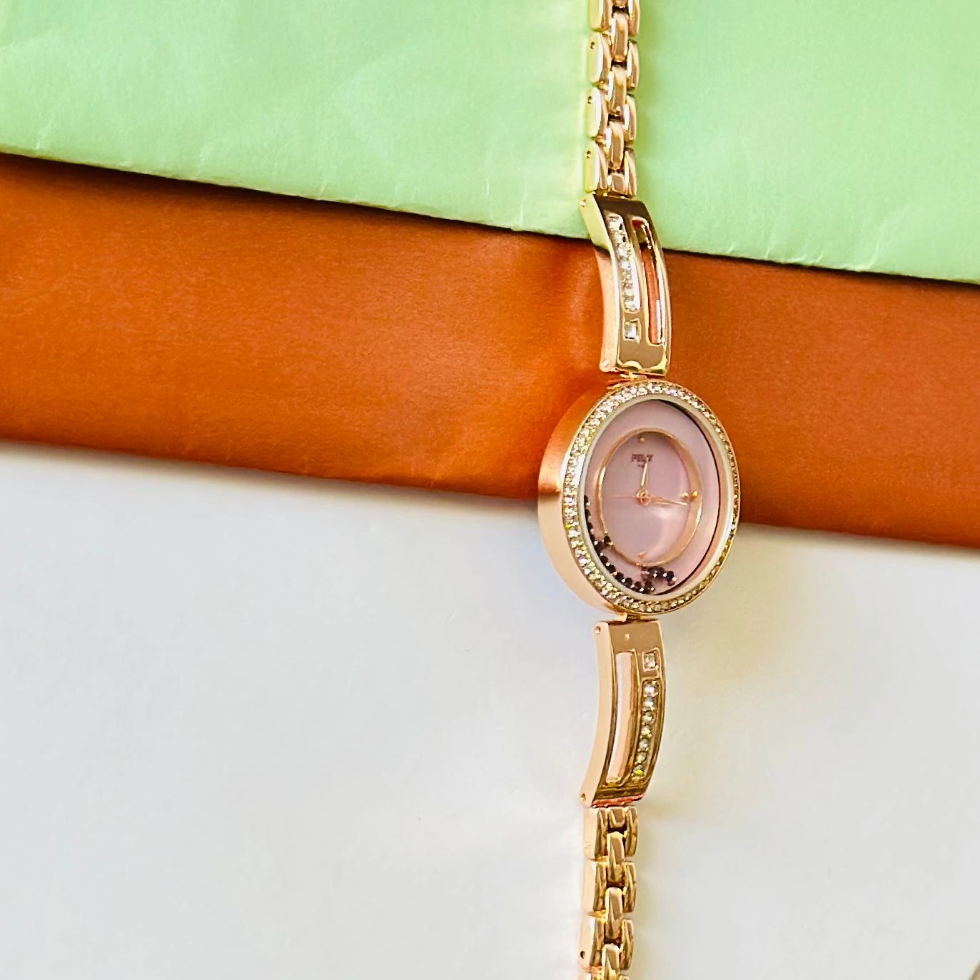 Raga Viva quartz analog watch for women with a rose gold metal strap