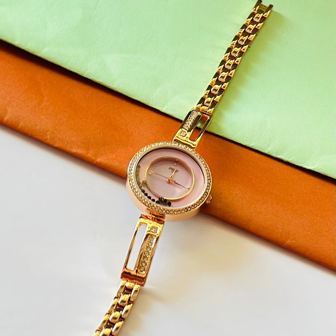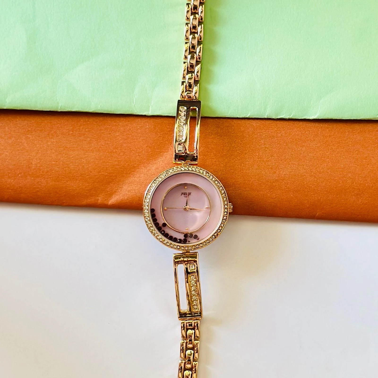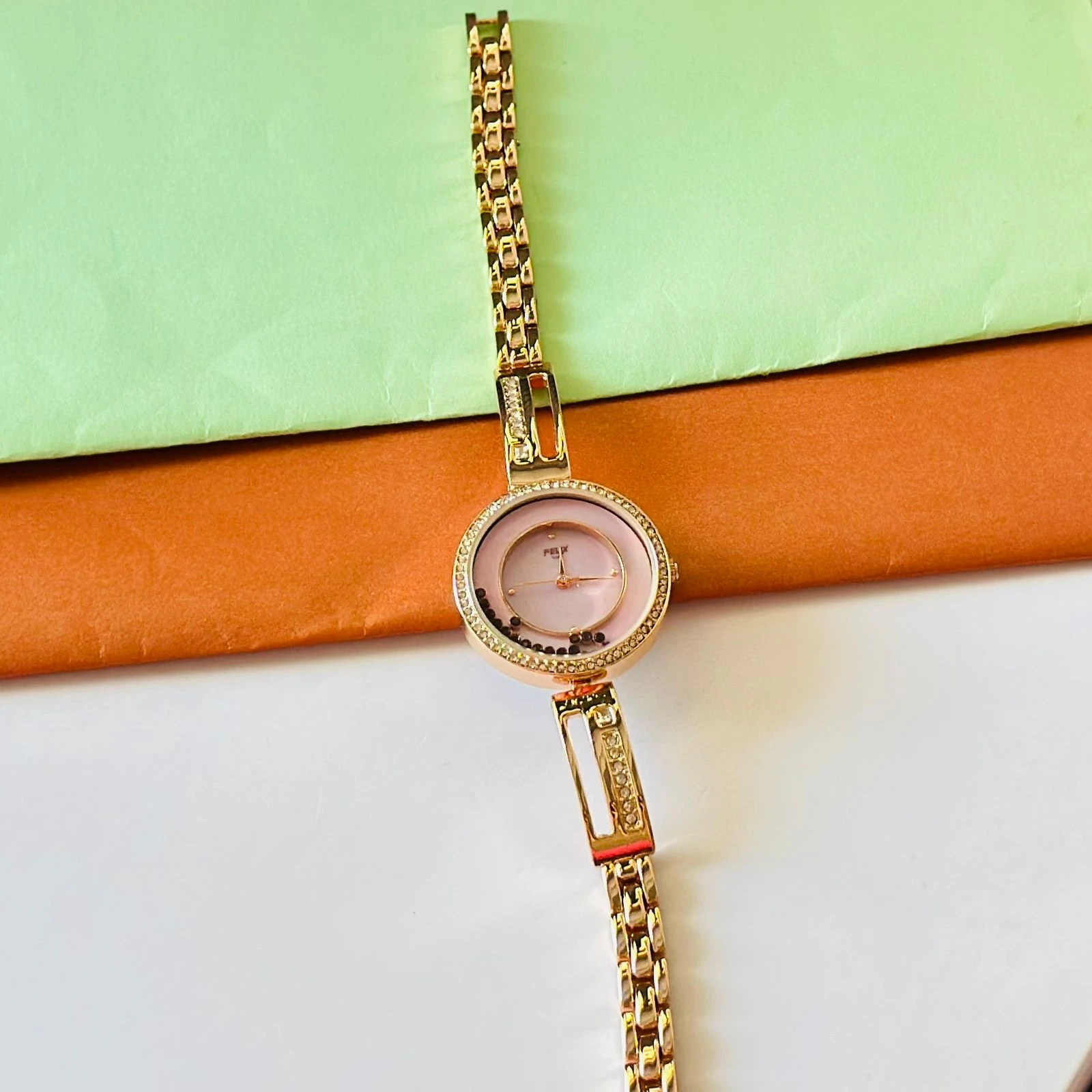 Raga Viva quartz analog watch for women with a rose gold metal strap