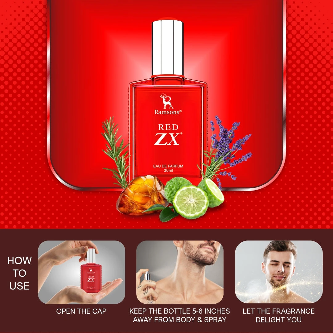 👉 Theme :- Ramsons Red ZX Eau De Parfum, a 30 ml bottle of unisex fragrance.