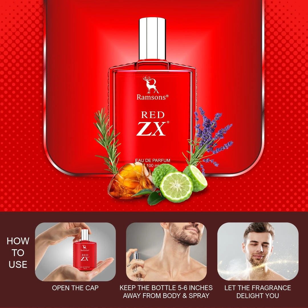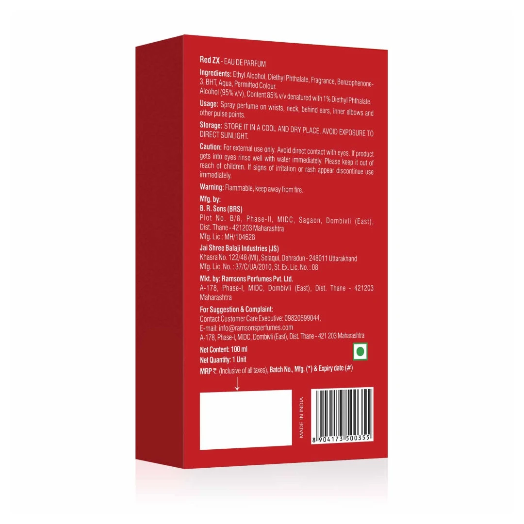 👉 Theme :- Ramsons Red ZX Eau De Parfum, a 100 ml bottle of unisex fragrance.