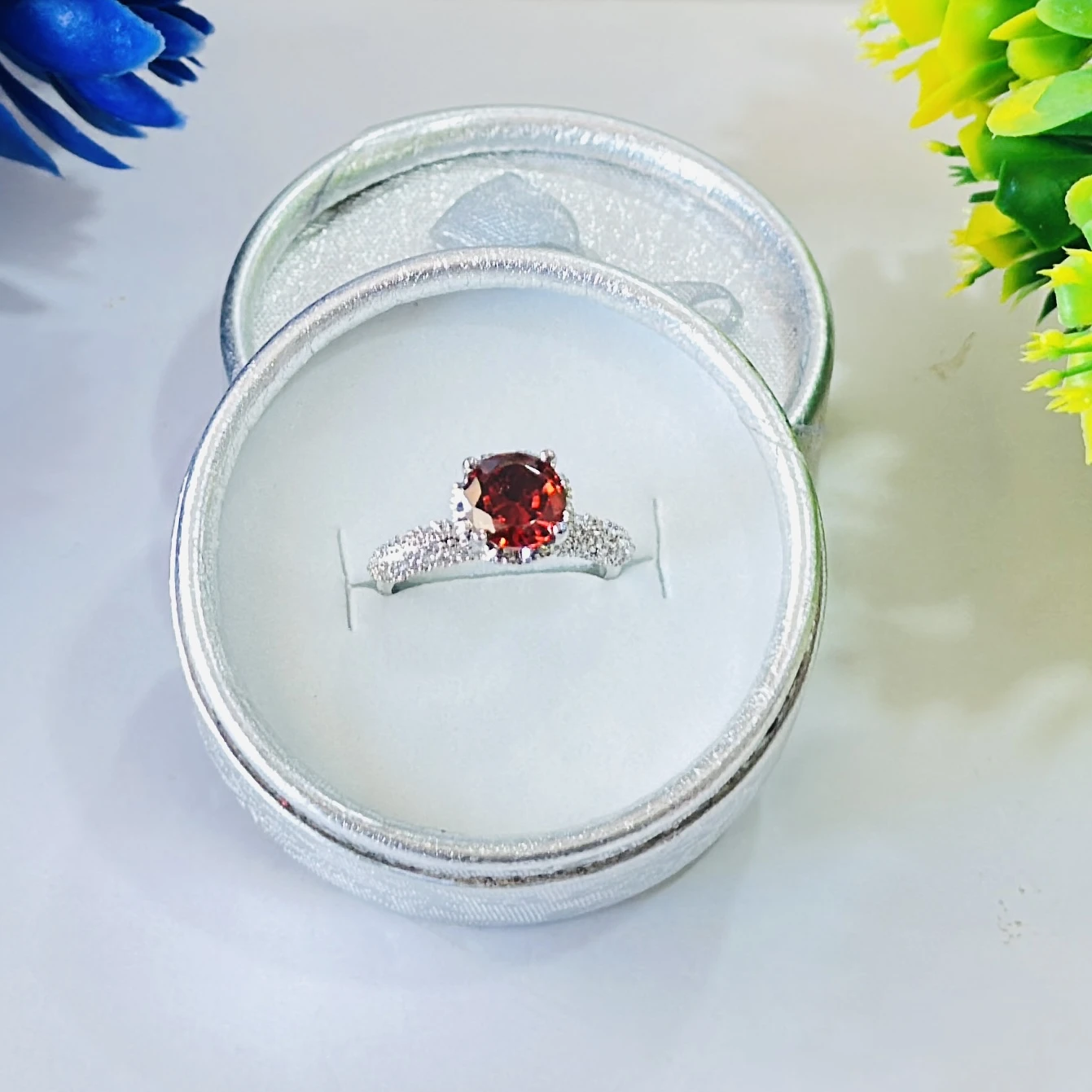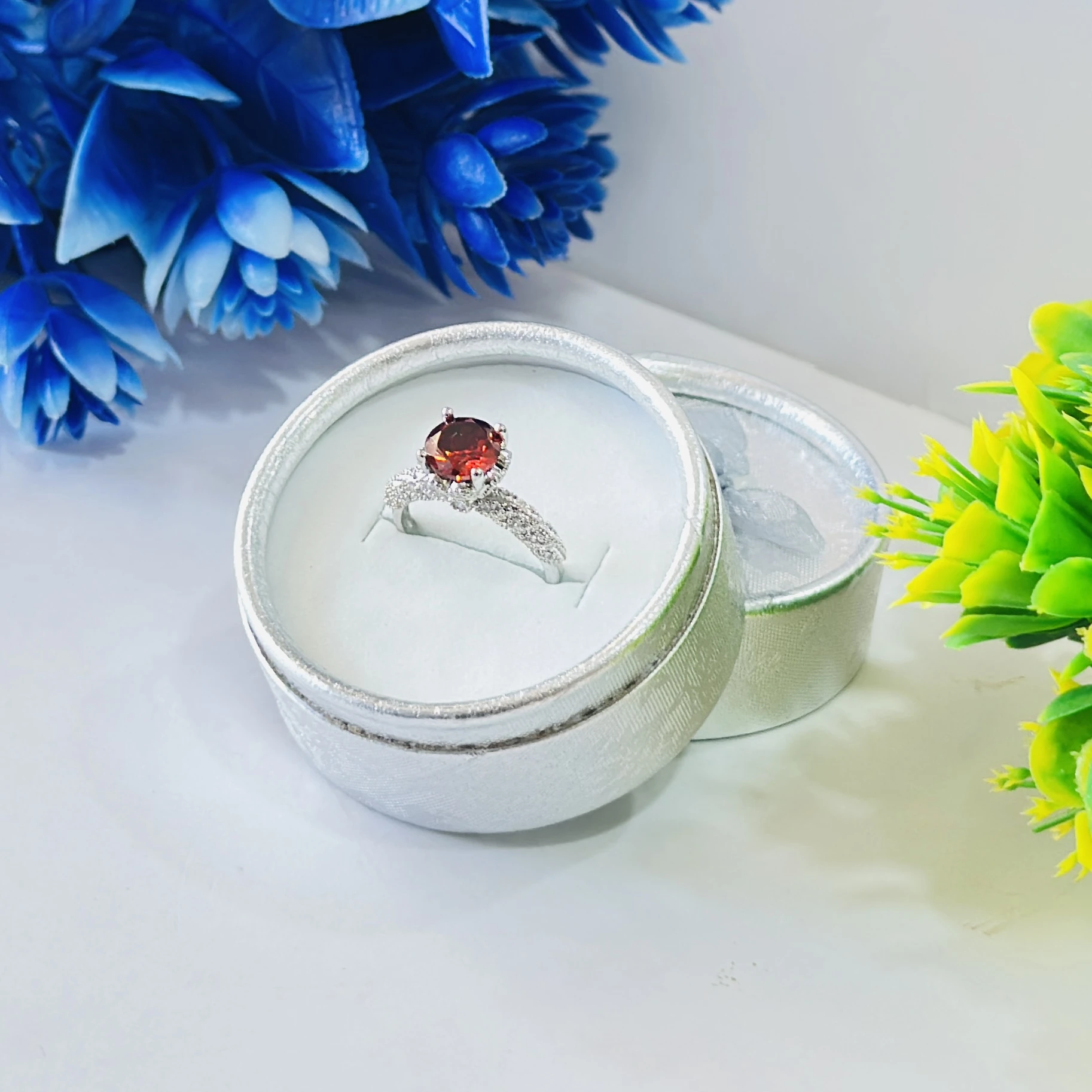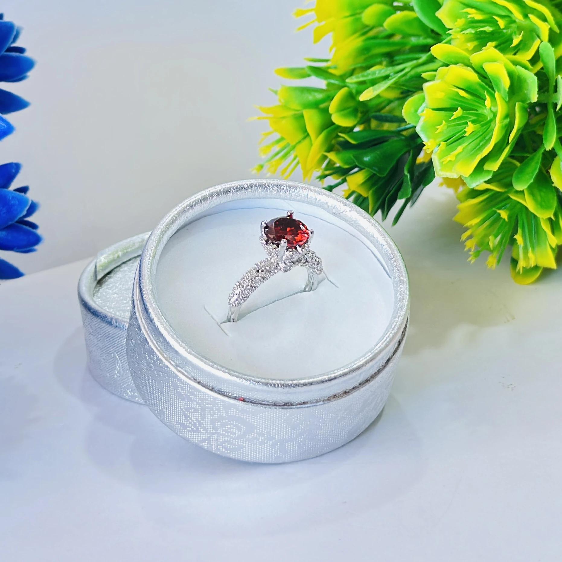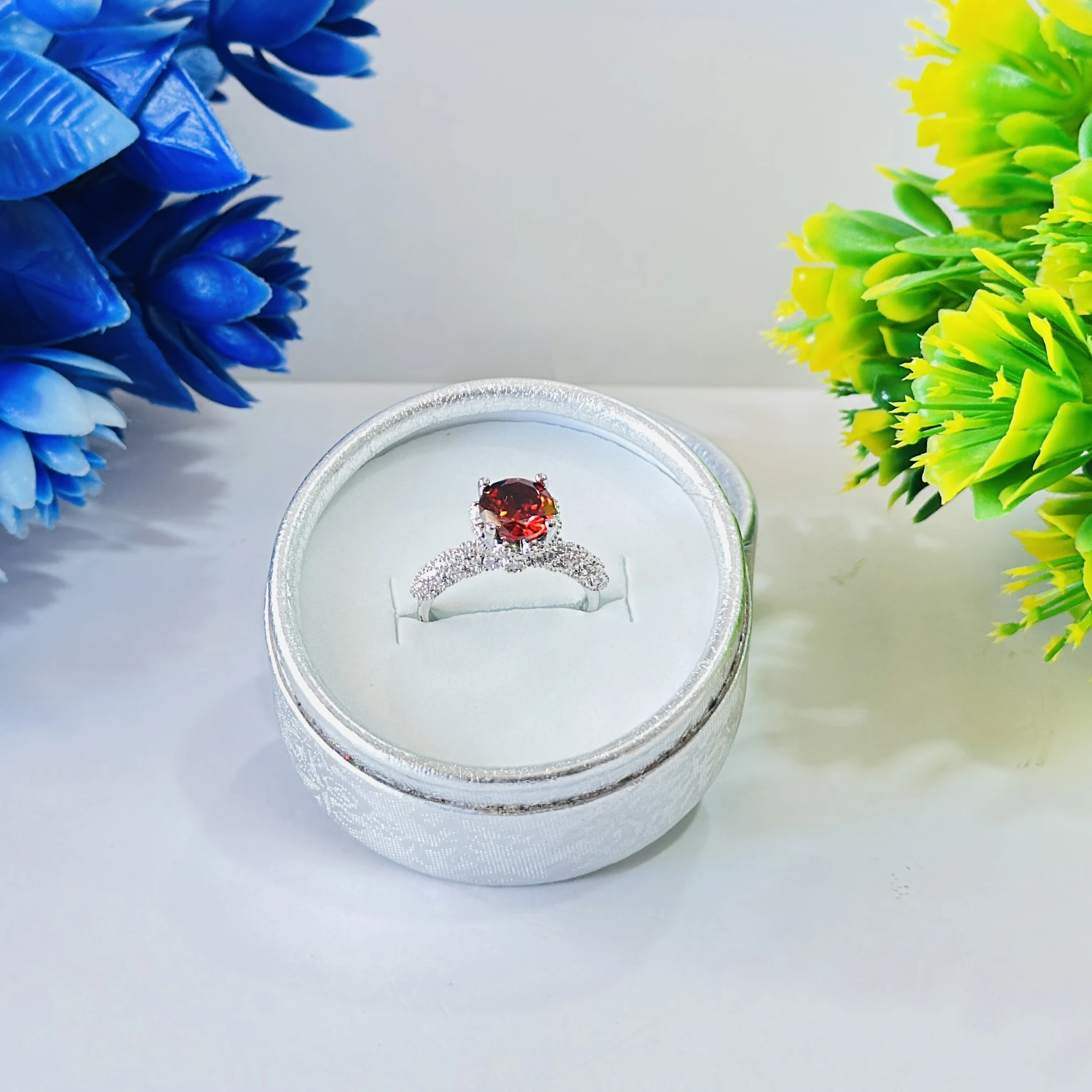 👉 Theme :- Round Red Garnet White Created Sapphire 925 Sterling Silver Engagement Ring