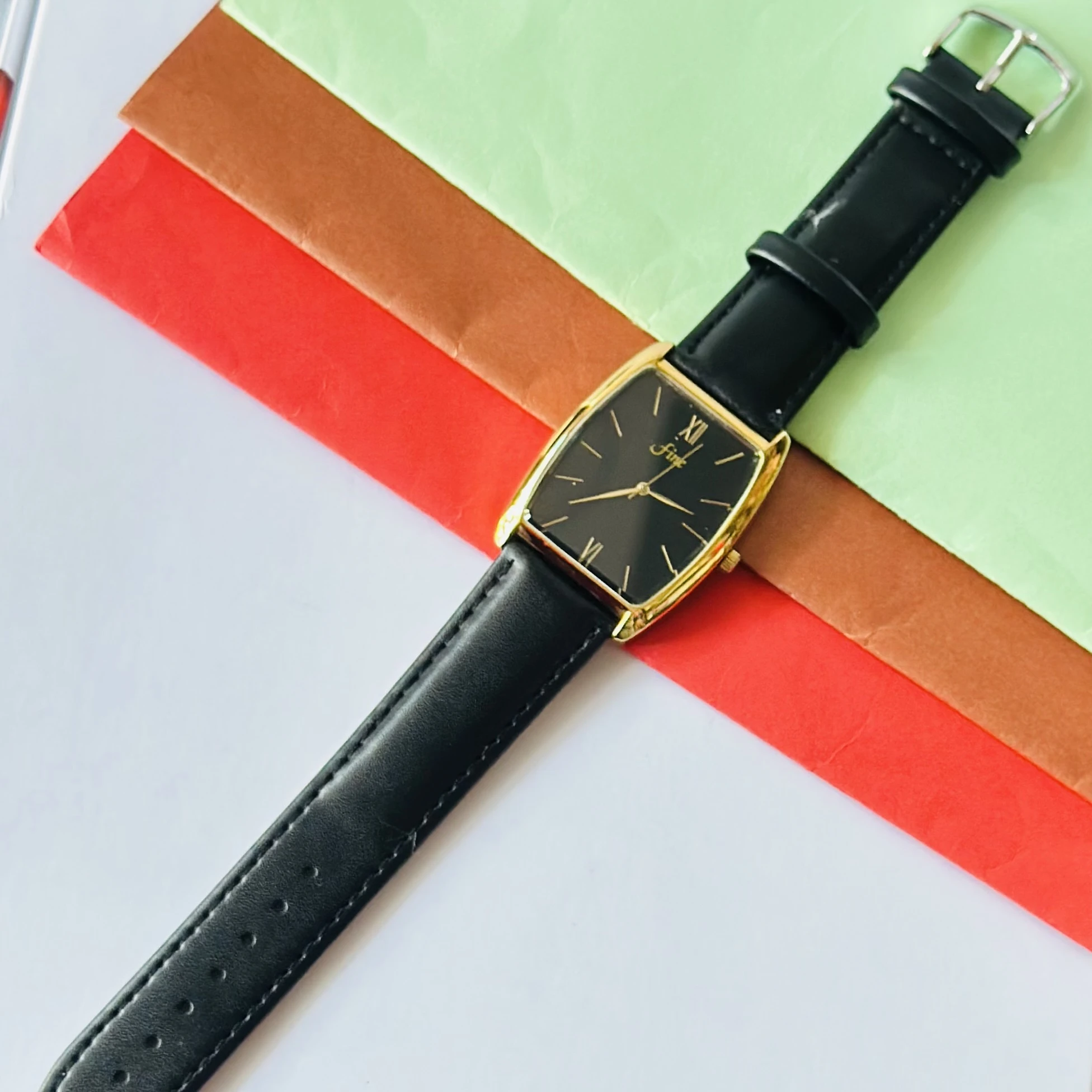 👉 Theme :- Regalia Opulent analog watch for men with a black dial and black leather strap.