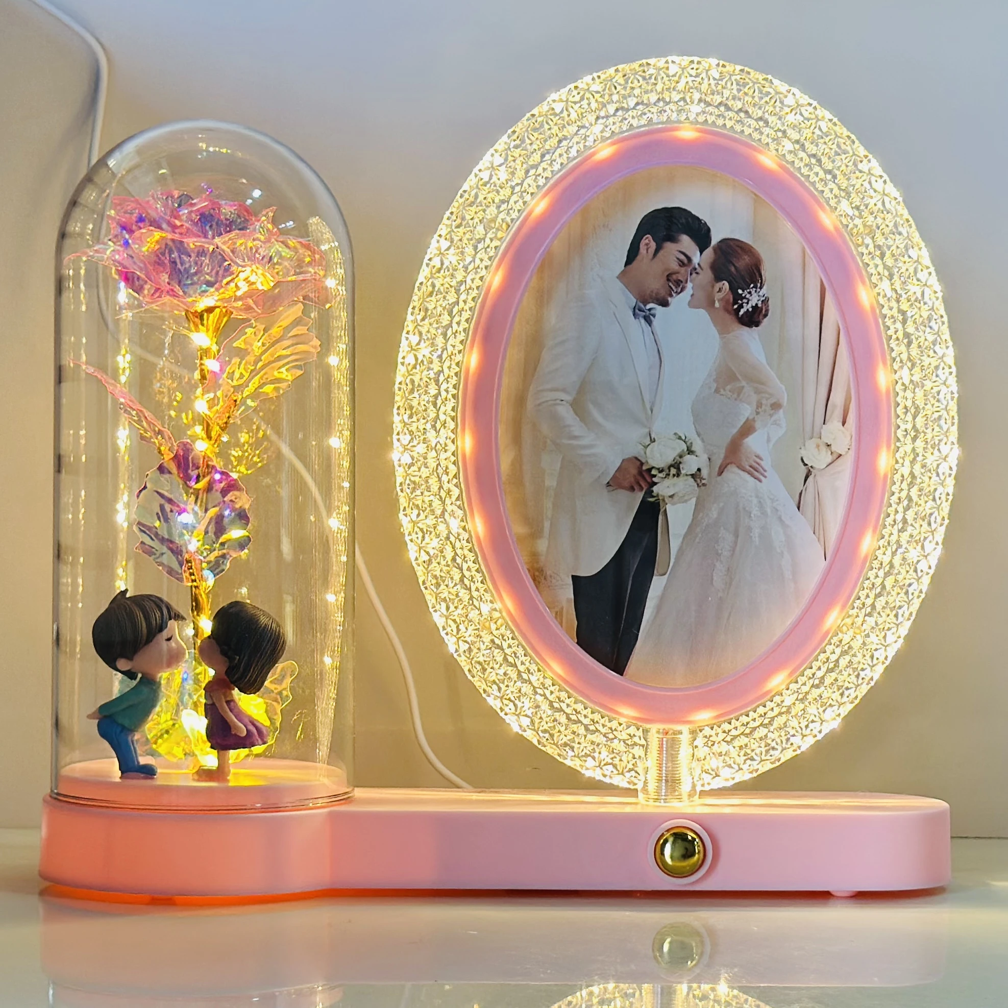 Romantic LED Rose Dome Lamp with Kissing Couple