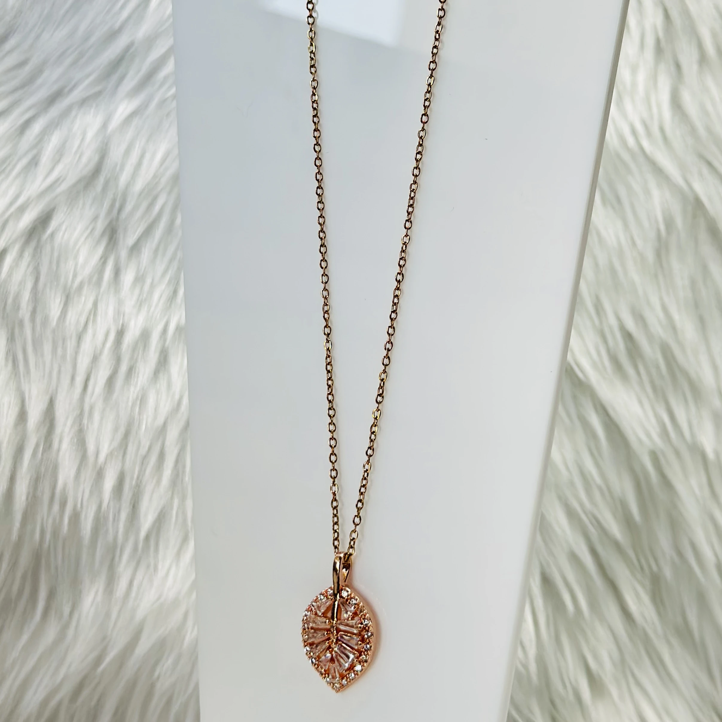👉Theme :- Rose gold palm leaf necklace with diamond accents, crafted from stainless steel.