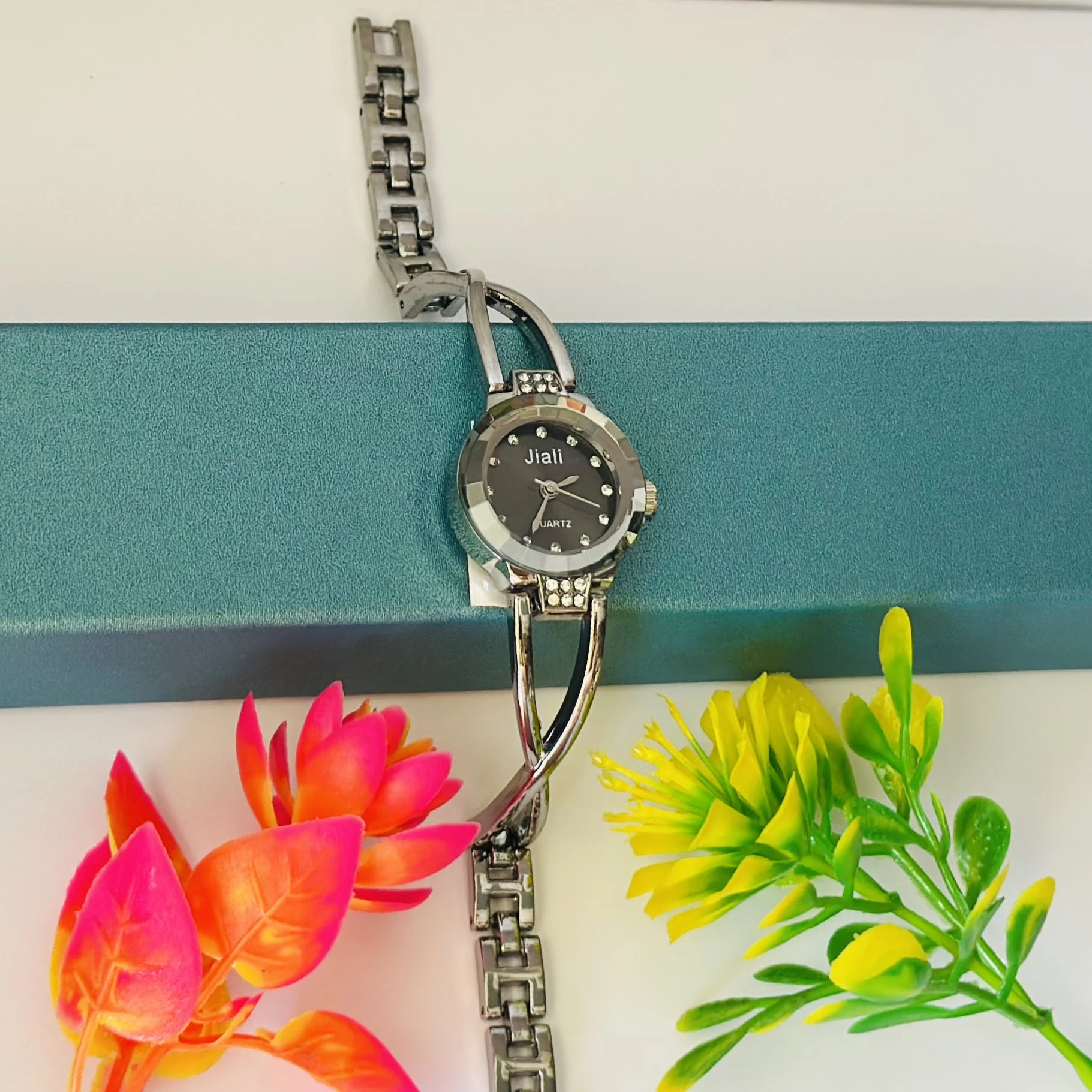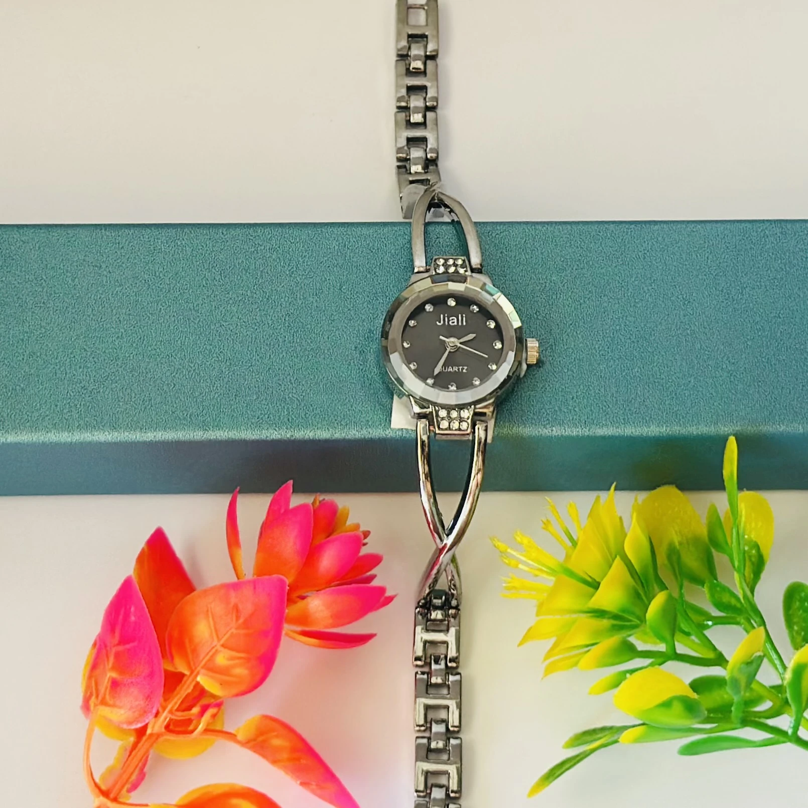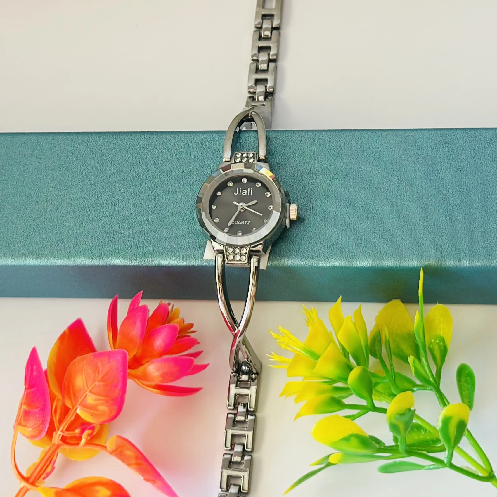👉 Theme :- Rose gold-toned women's bracelet watch with a crystal-accented dial.
