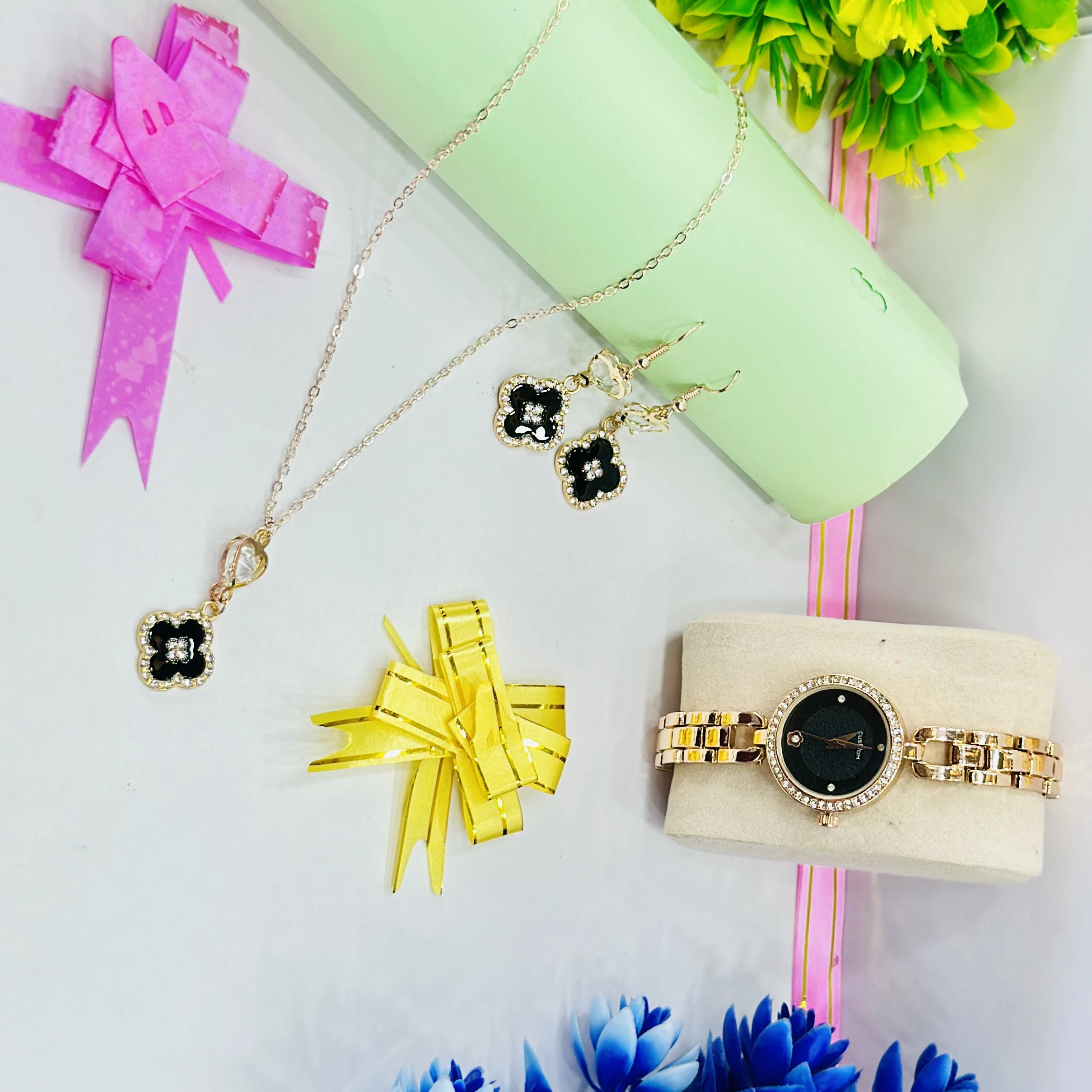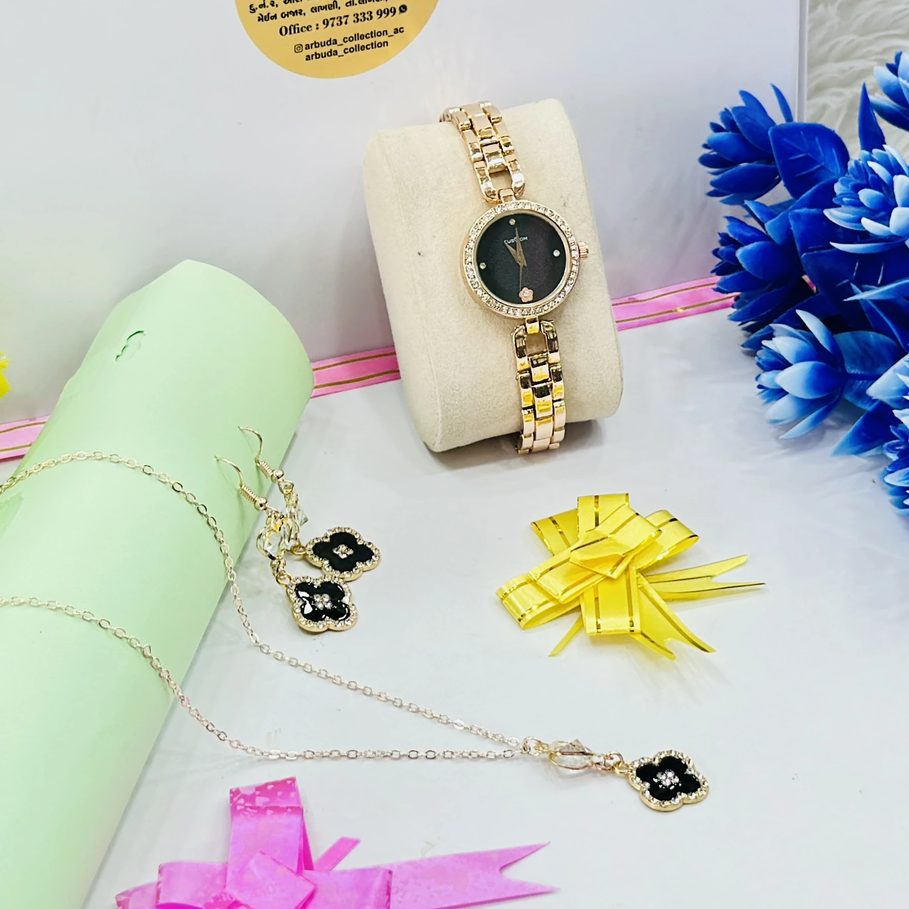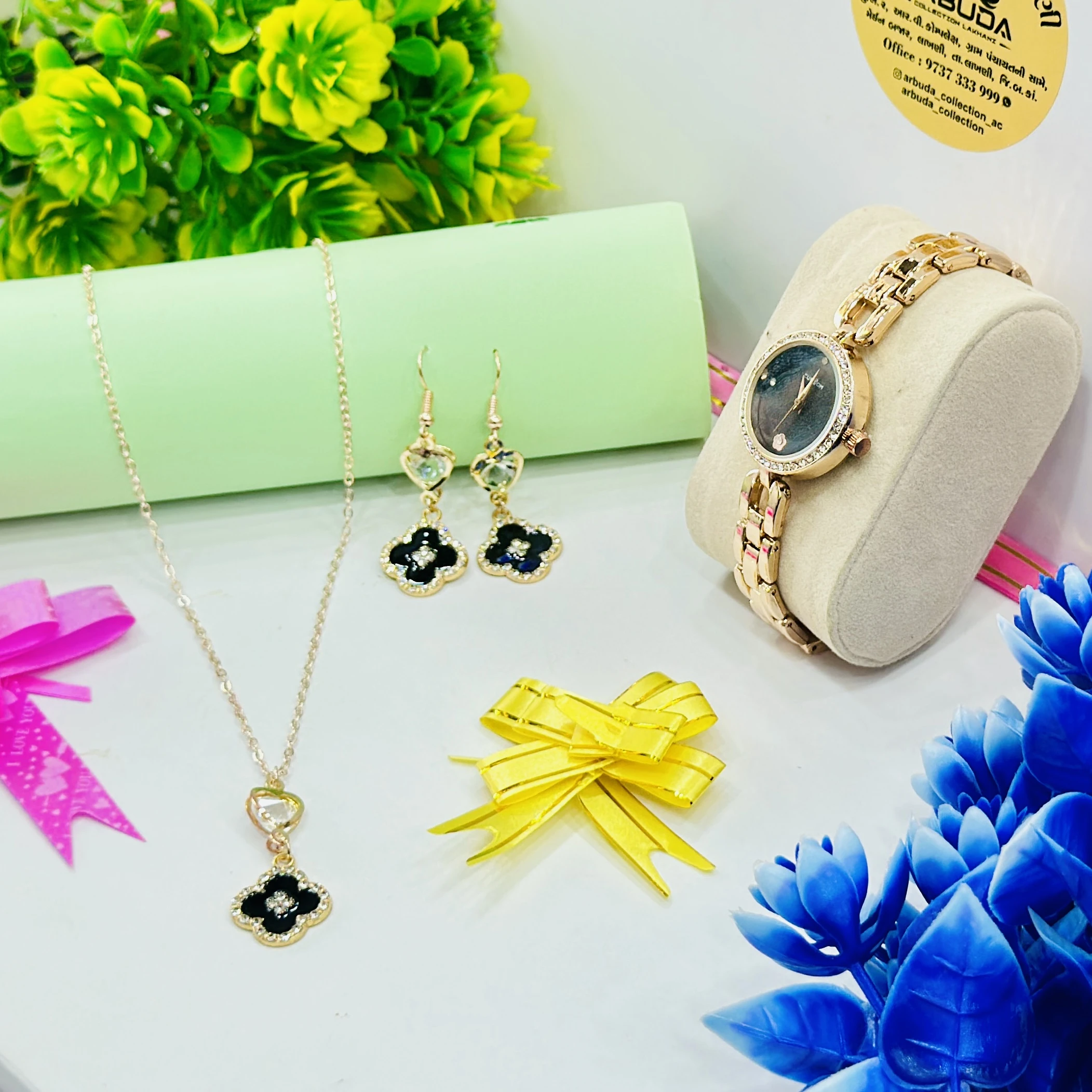 *✅ ARBUDA COLLECTION ✅* *✅9737333999✅* 👉Theme :- jewelry set features a gold-plated necklace and matching earrings and watch 👉Brand :- Arbuda Collection 👉Style :- Traditional 👉 Material :- Imported Cality 👉 Use :- Fashion accessories, women’s jewellery … 👉Dimensions : No 👉 Cleaning. :- wipe clean with a dry cloth 👉Origin:- made in India Other 👉 words:- limited addition…