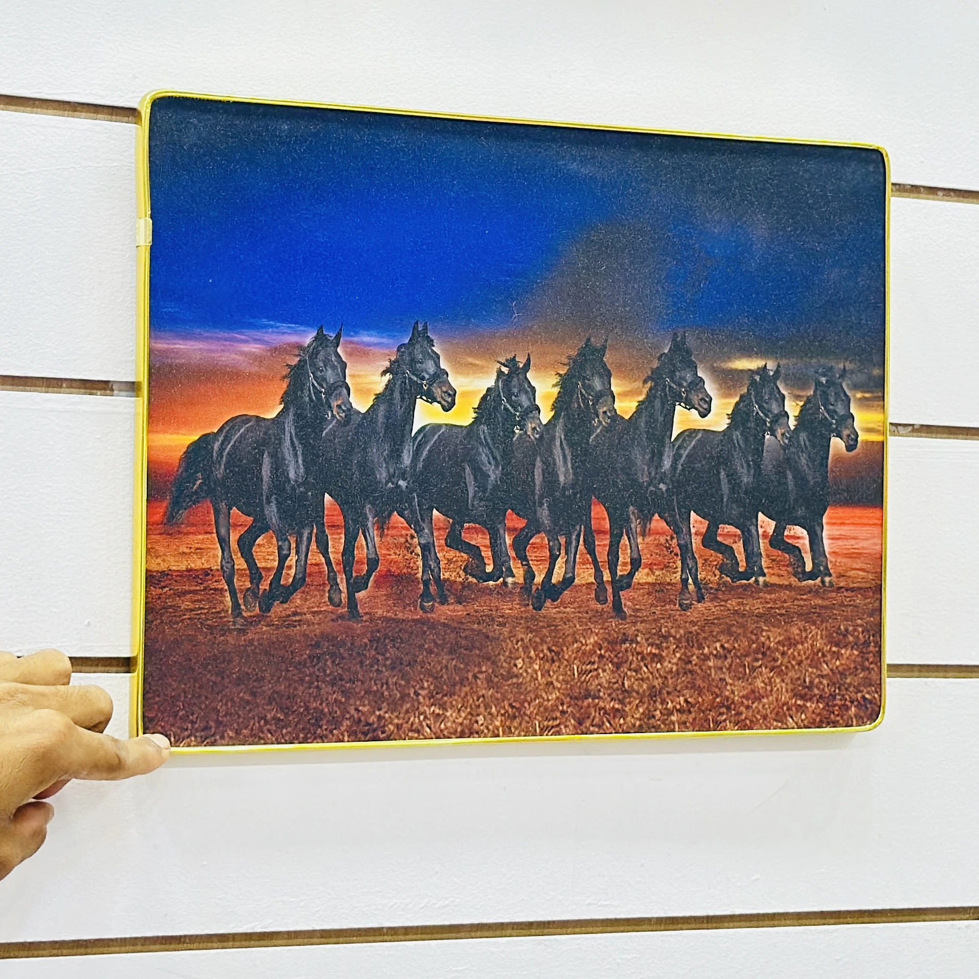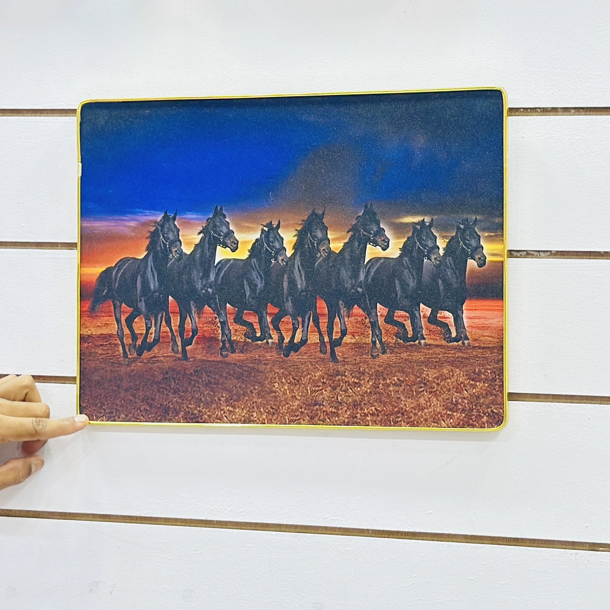👉 Theme :- Shubh Sanket Vastu 7 Horse Running Textured Home Decorative Painting.