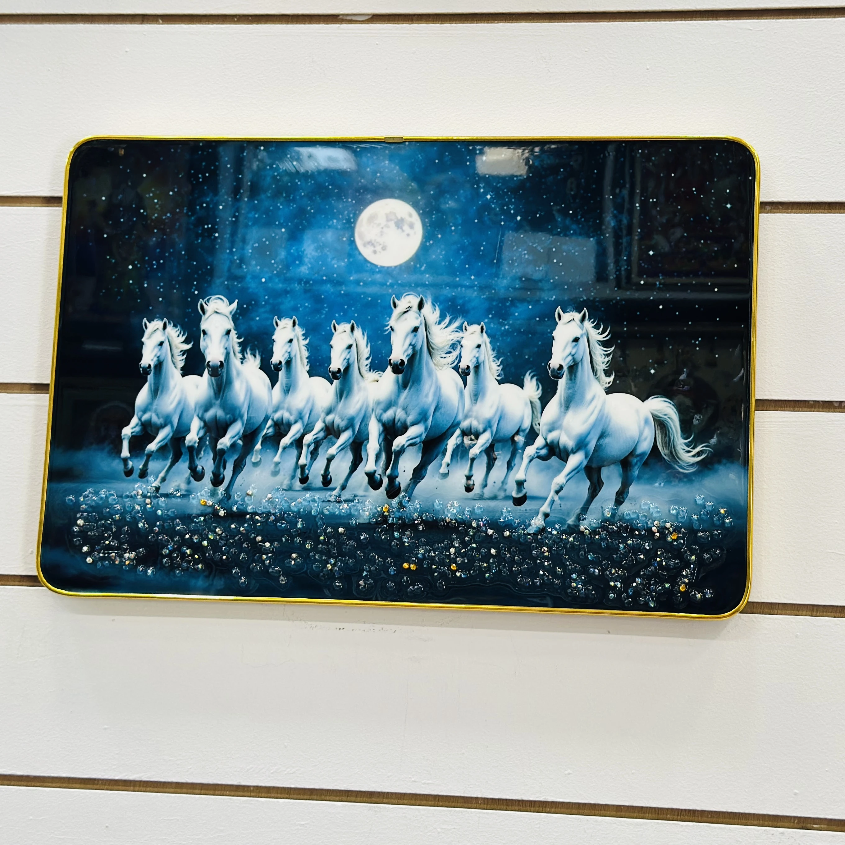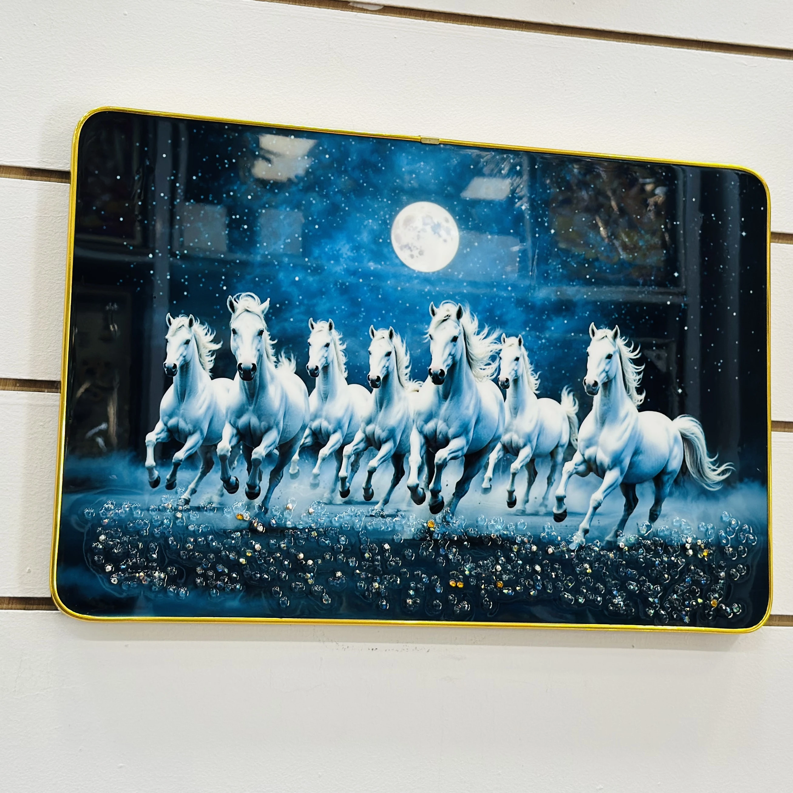 👉 Theme :- Masstone Vastu Seven Running Horses Big Crystal Embedded Painting.