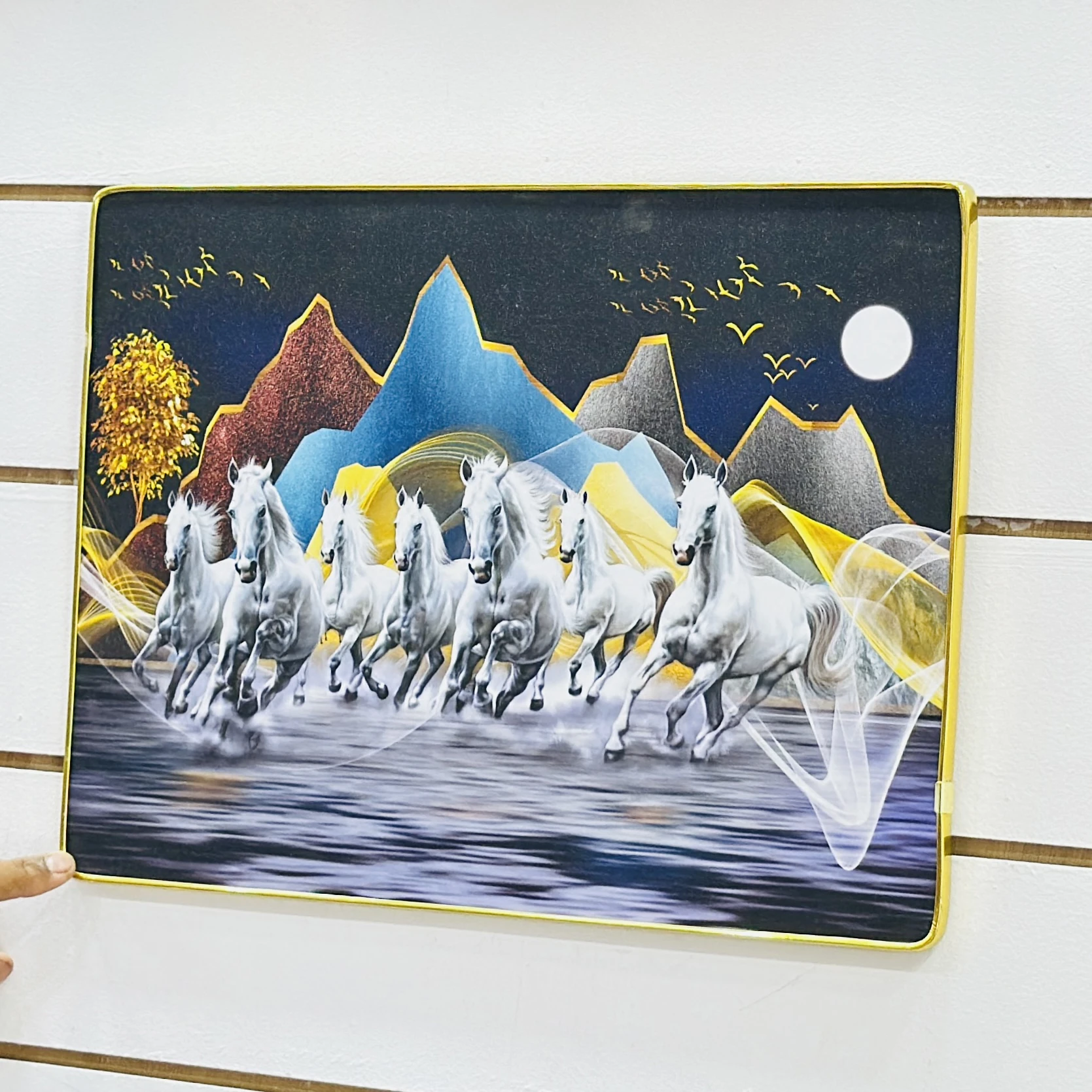 👉 Theme :- Shubh Sanket Vastu 7 Horse Running Textured Home Decorative Painting.