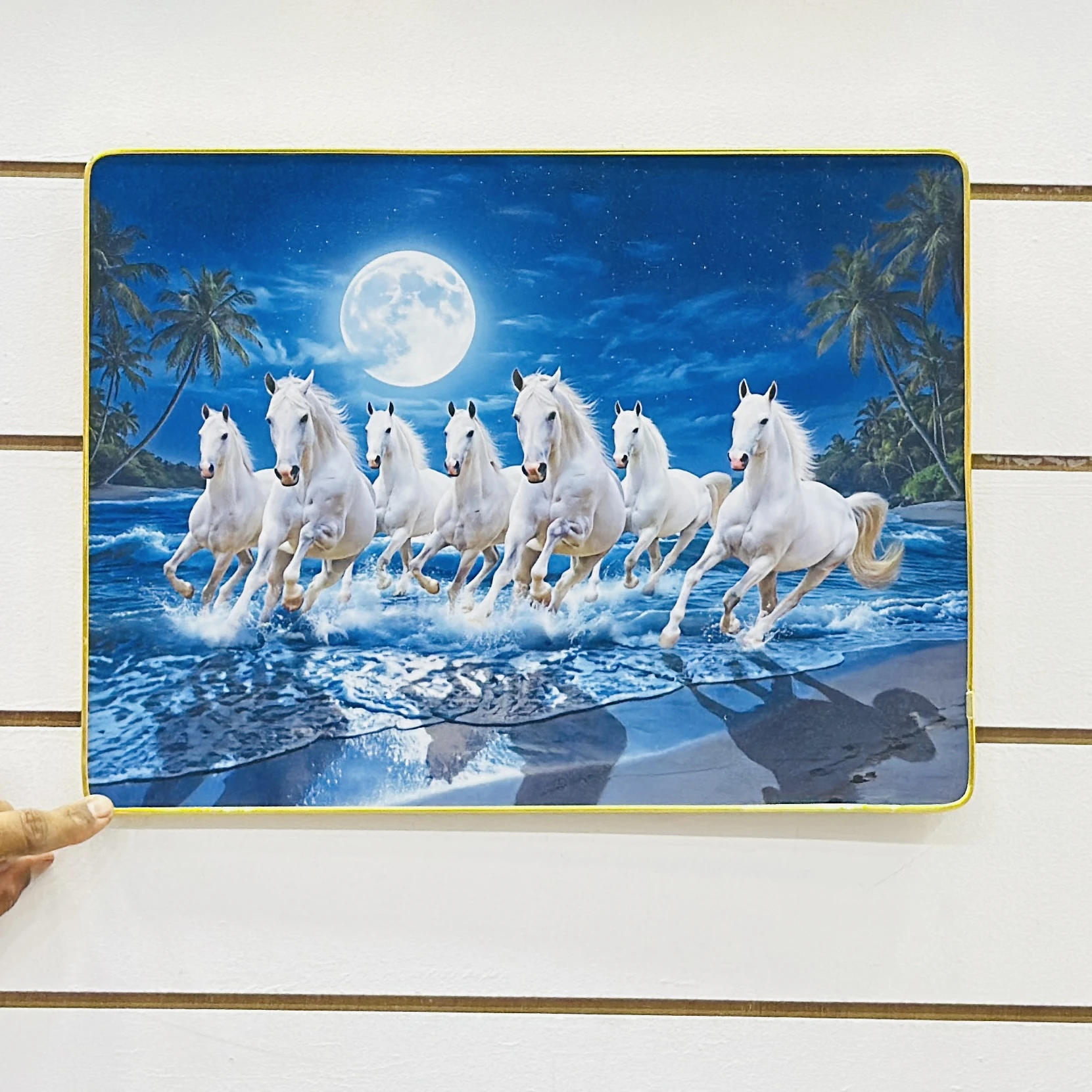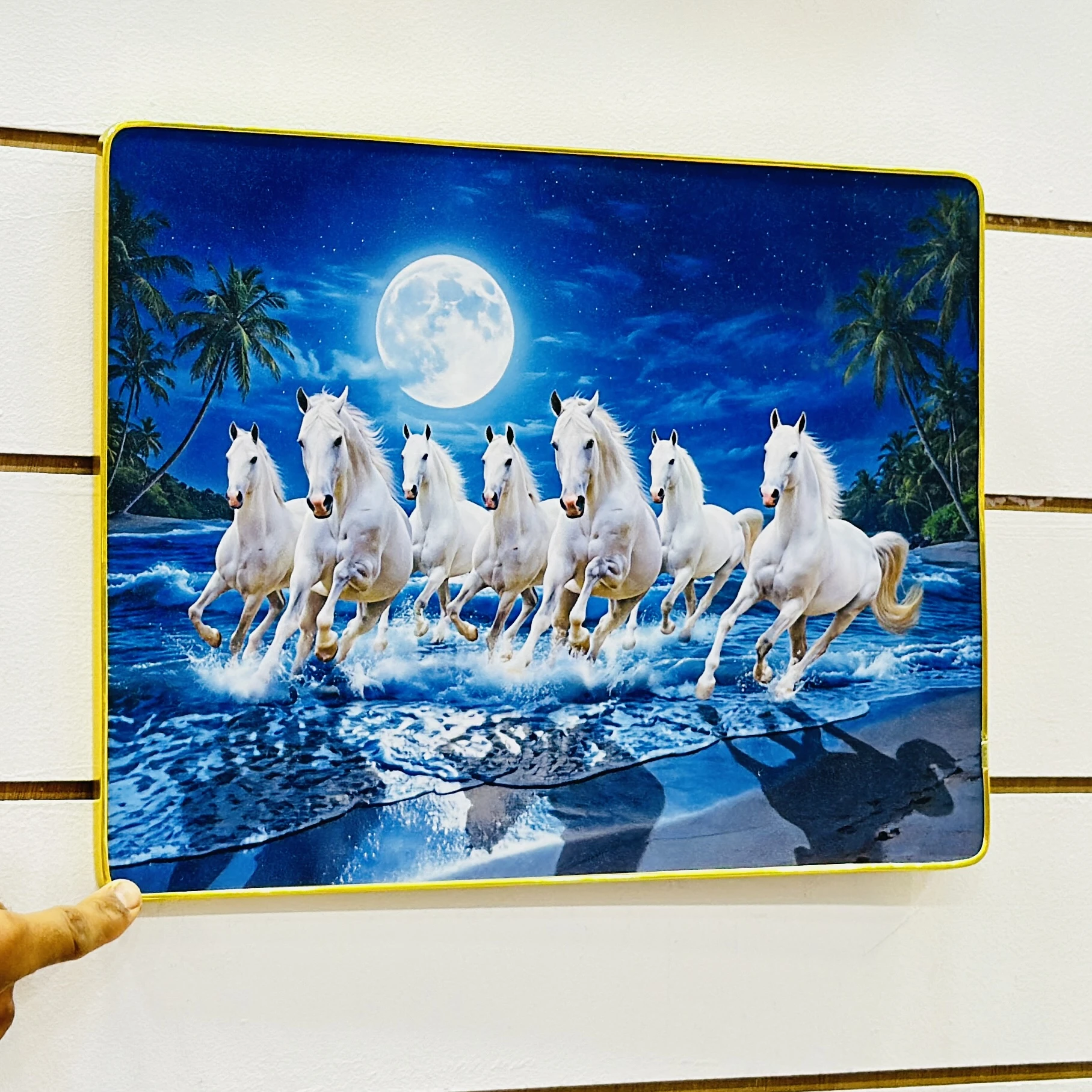 👉 Theme :- Shubh Sanket Vastu 7 Horse Running Textured Home Decorative Painting.