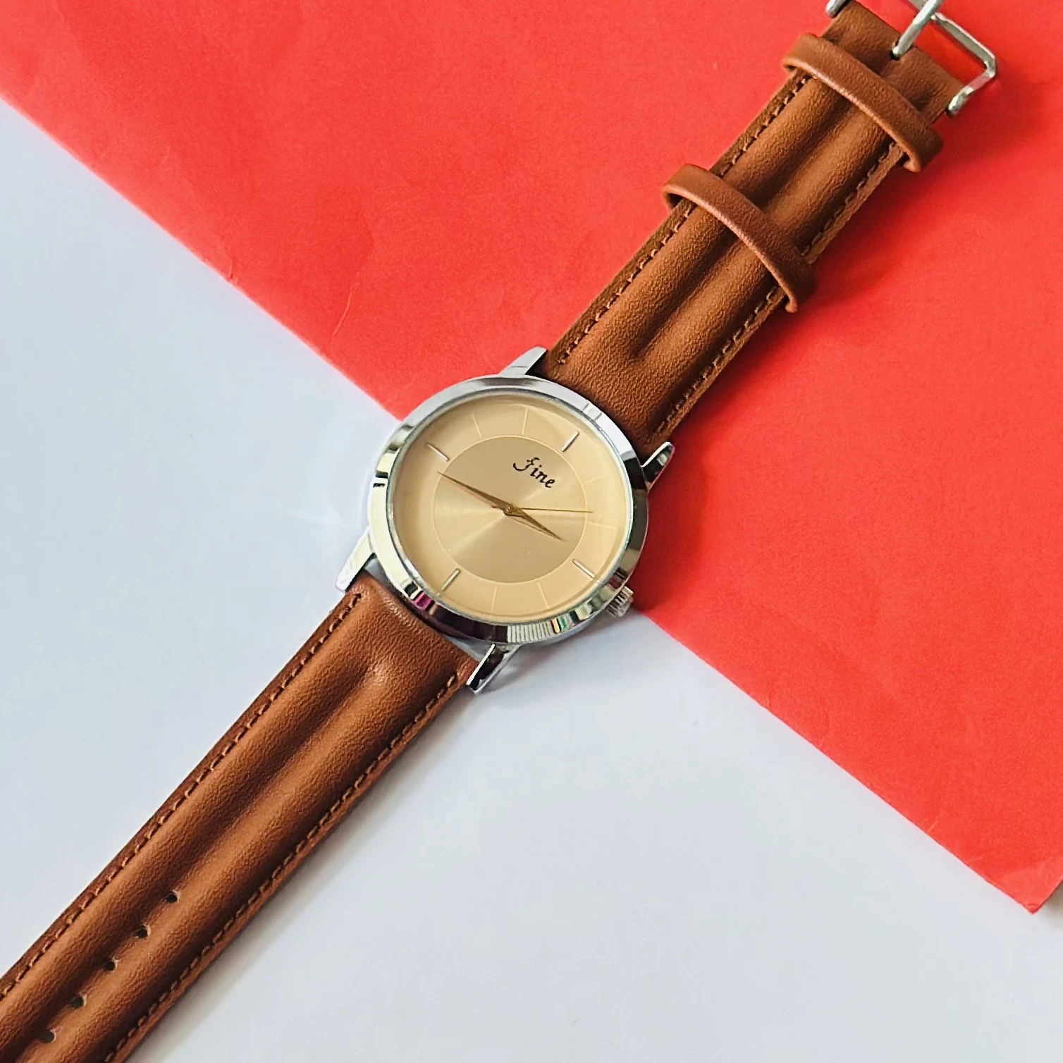 👉 Theme :- Silver Dial Brown Leather Strap Analog Wrist Watch for Men.