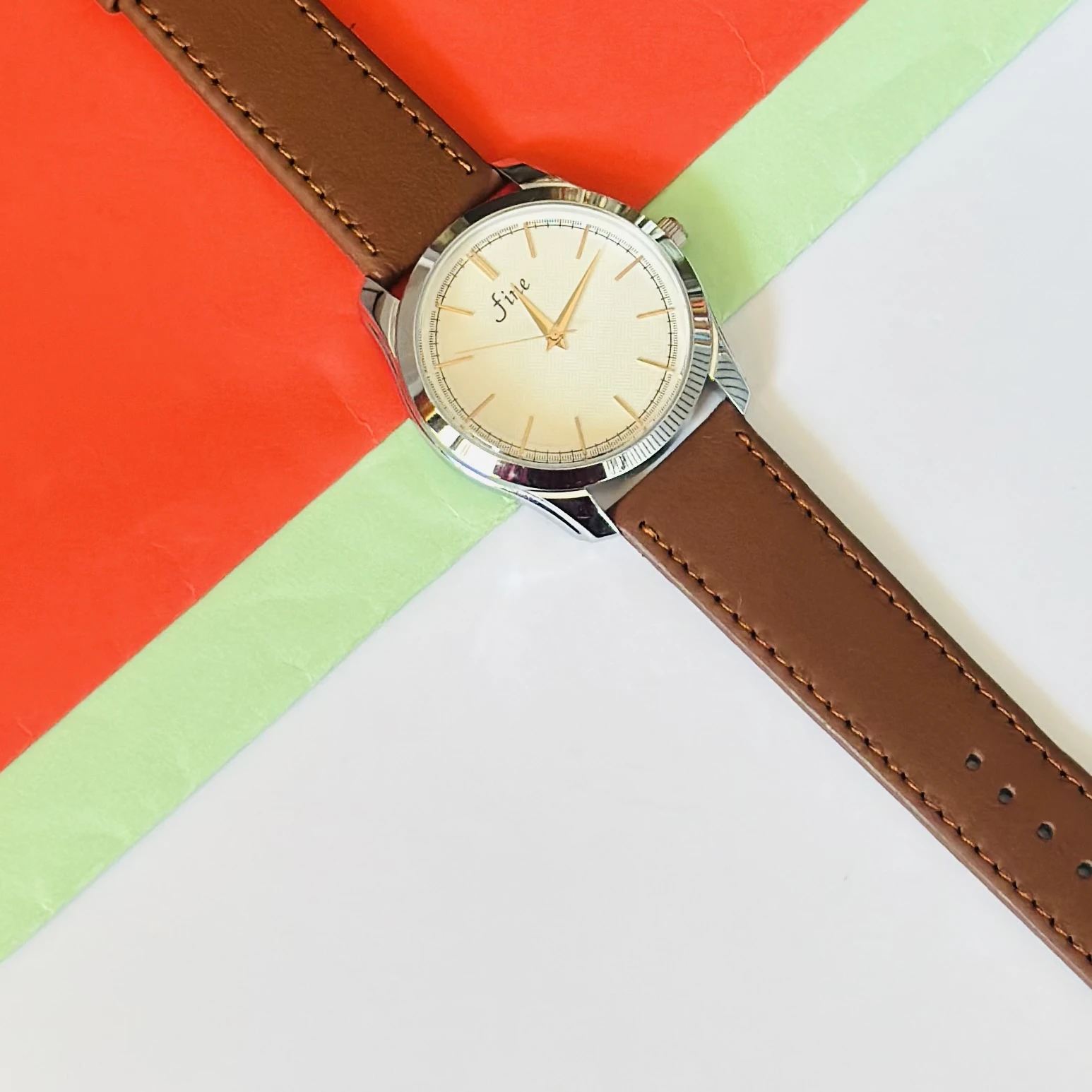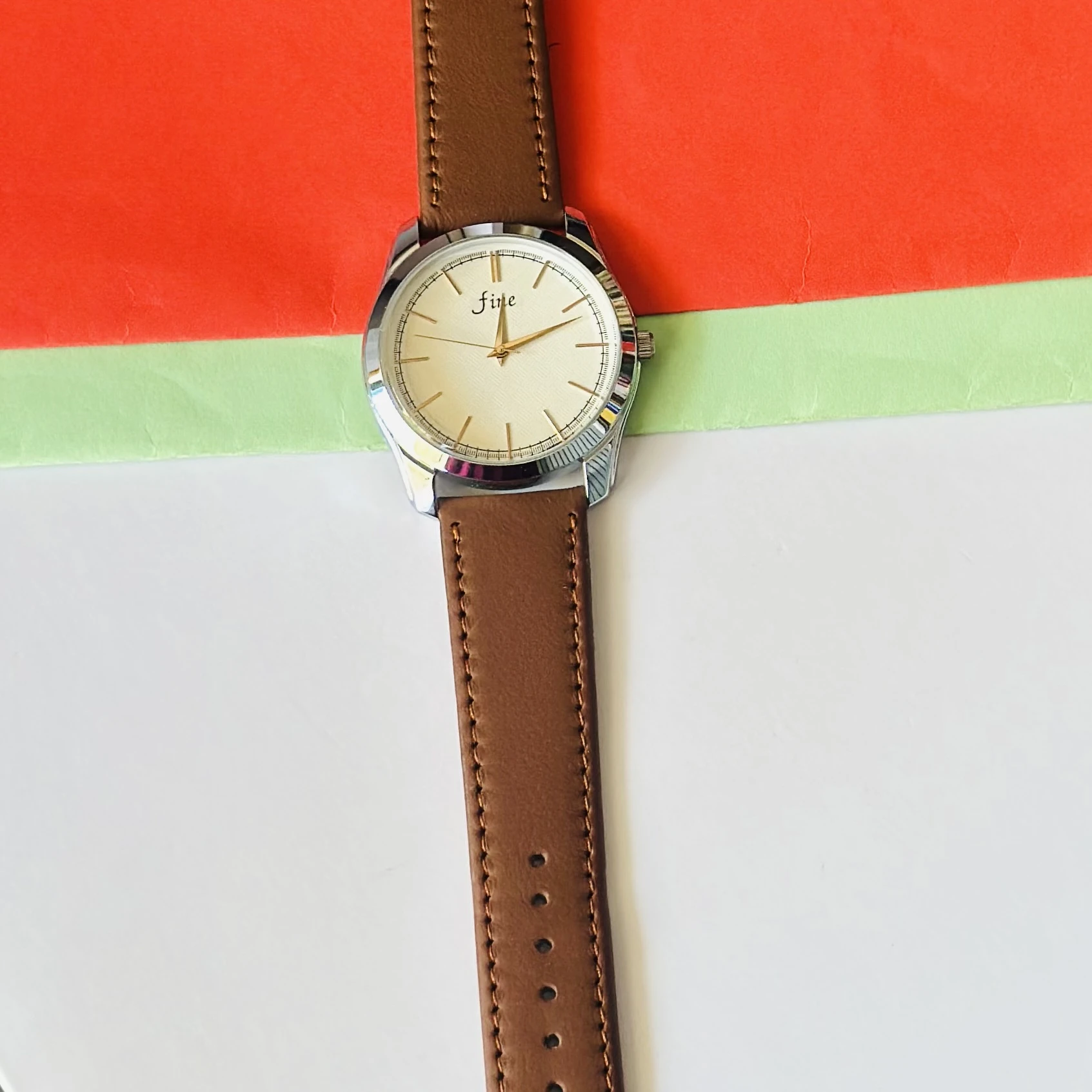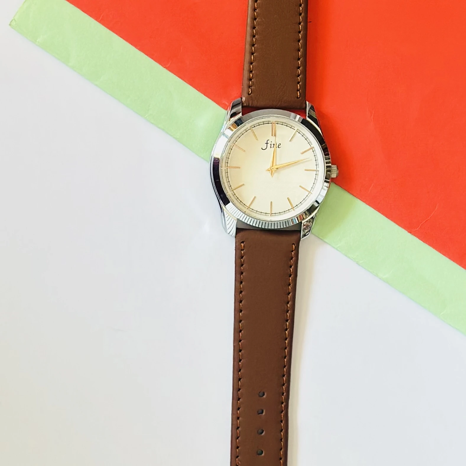 👉 Theme :- Silver Dial Brown Leather Strap Analog Wrist Watch for Men.
