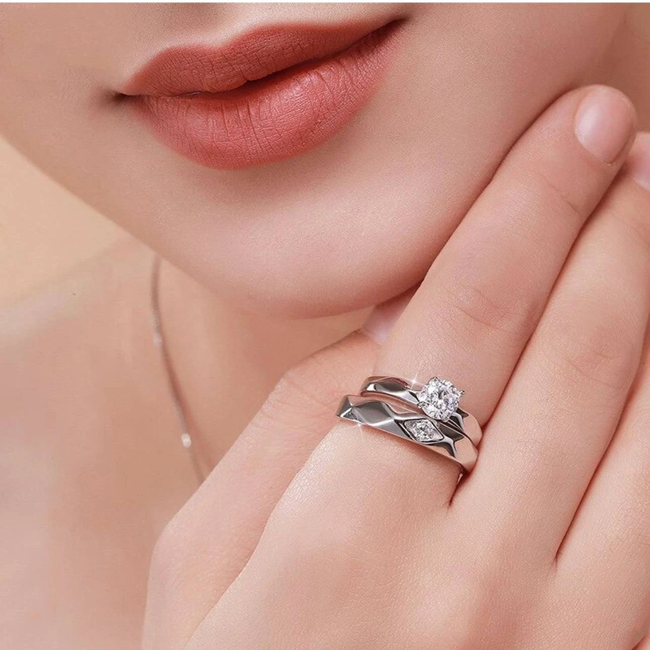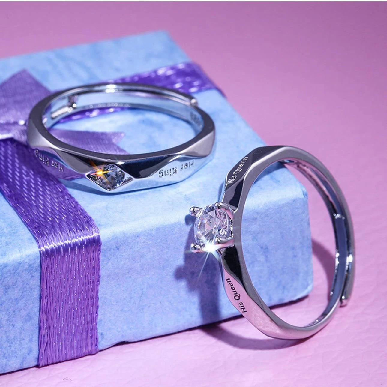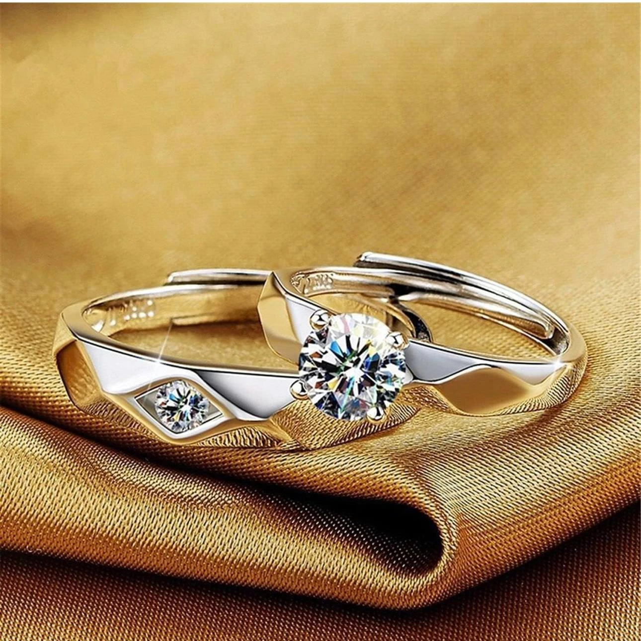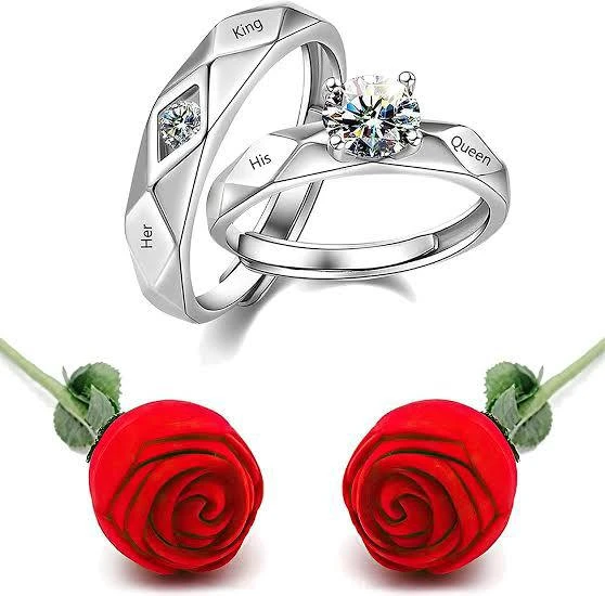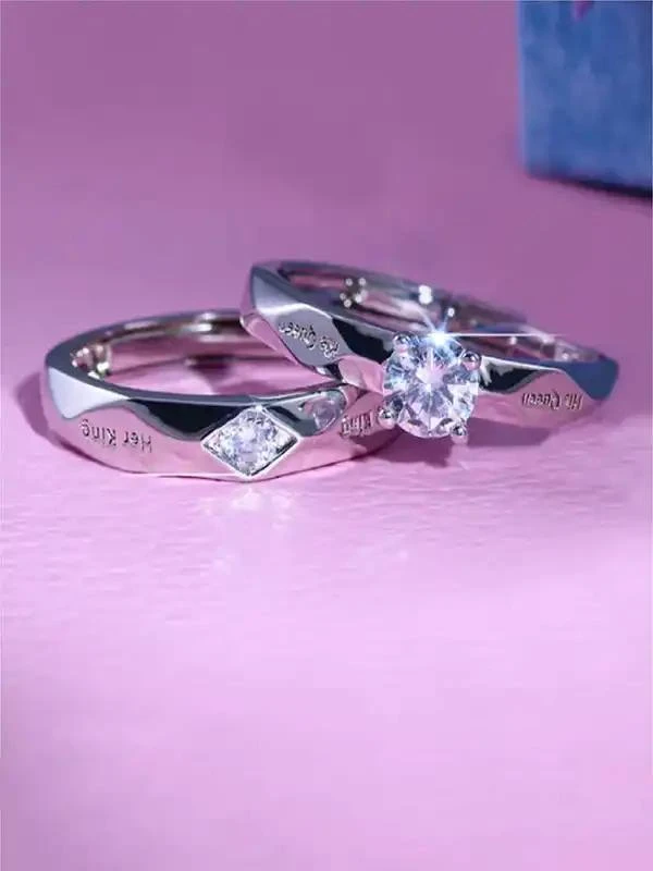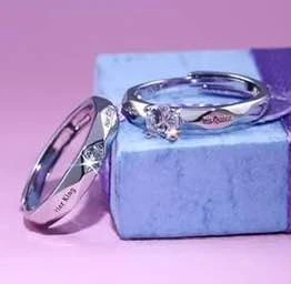 👉 Theme :- Set of silver-plated, adjustable couple's rings,