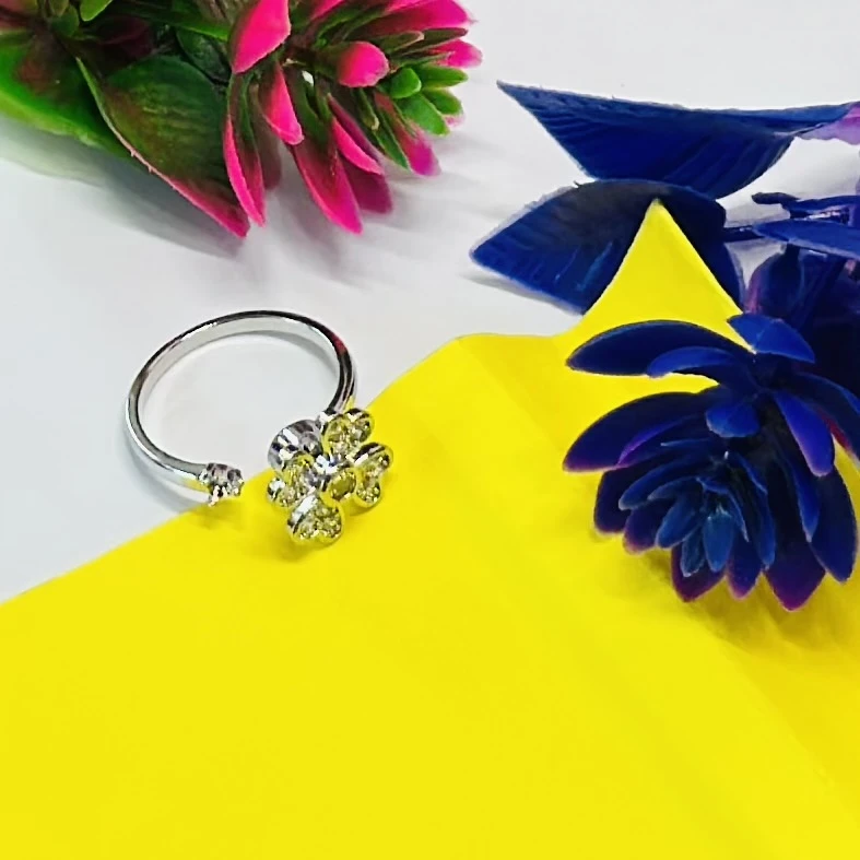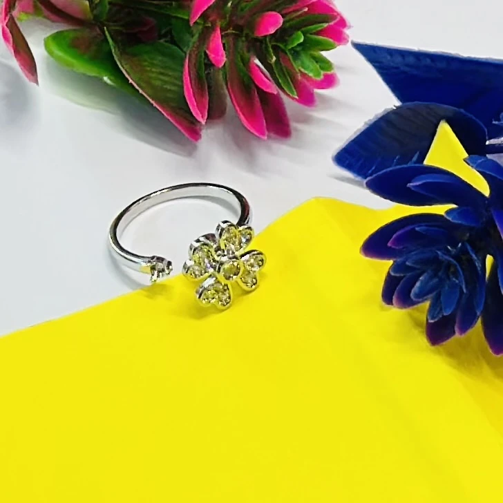 👉 Theme :- silver flower toe ring with a green center and diamond details.