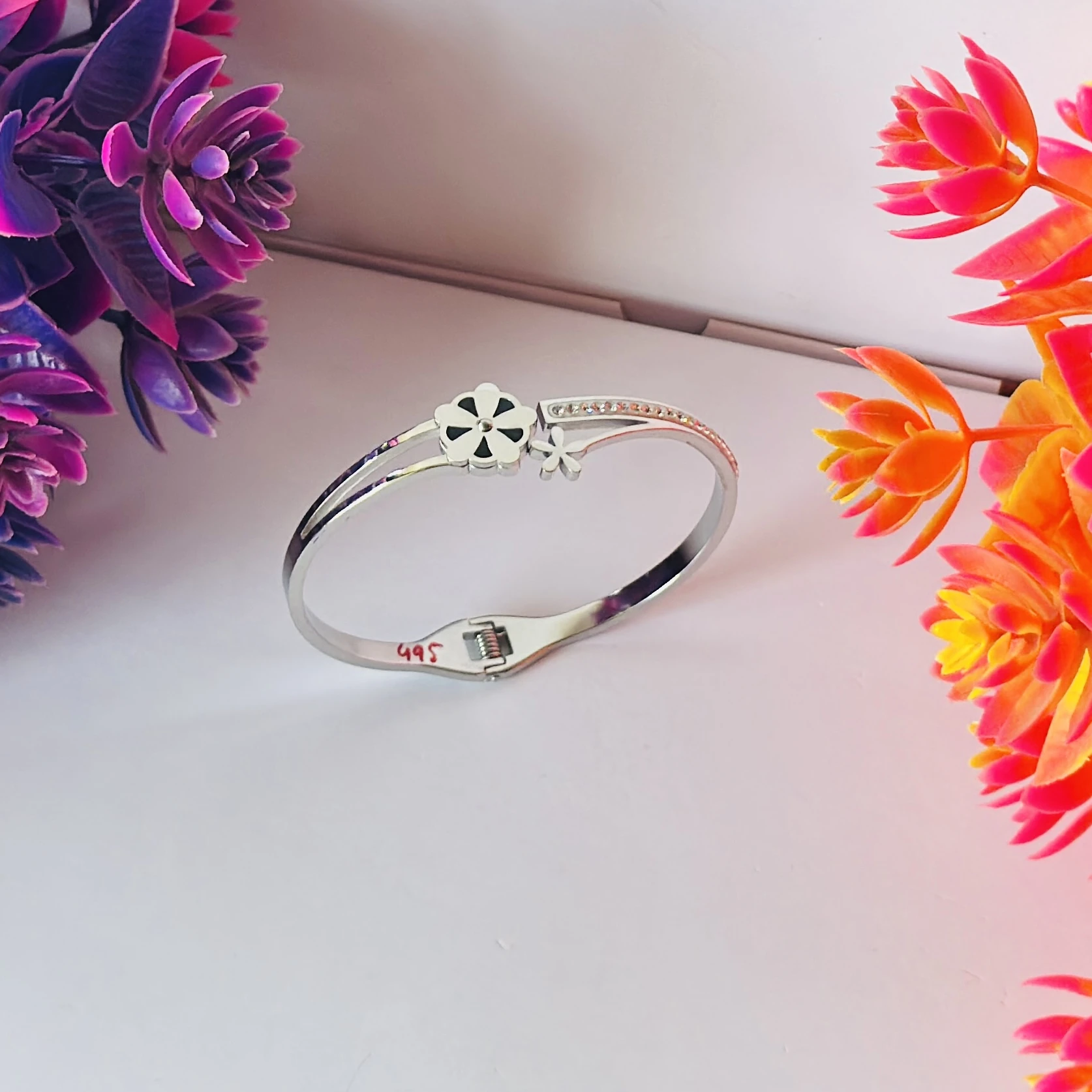 👉Theme :- stainless steel silver-plated evil eye bangle bracelet.