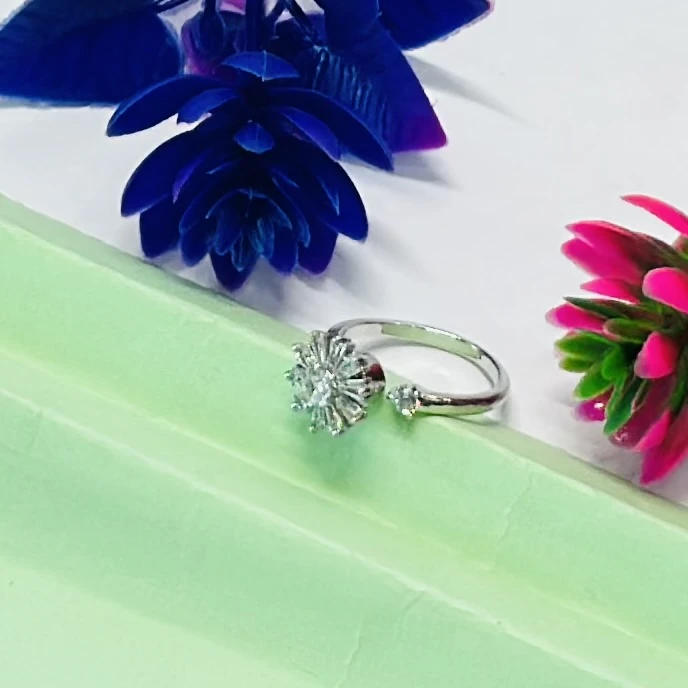 👉 Theme :- Silver toe ring featuring a white zircon floral design.