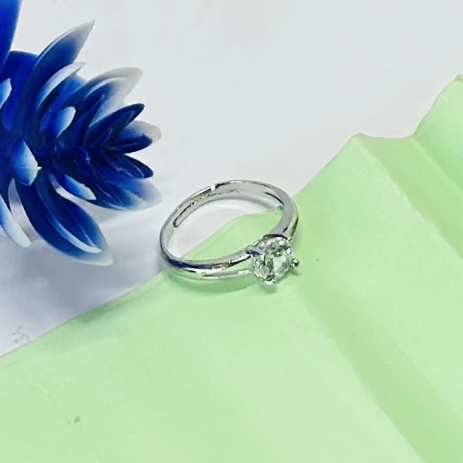 👉 Theme :- Silver solitaire engagement ring with American diamonds.