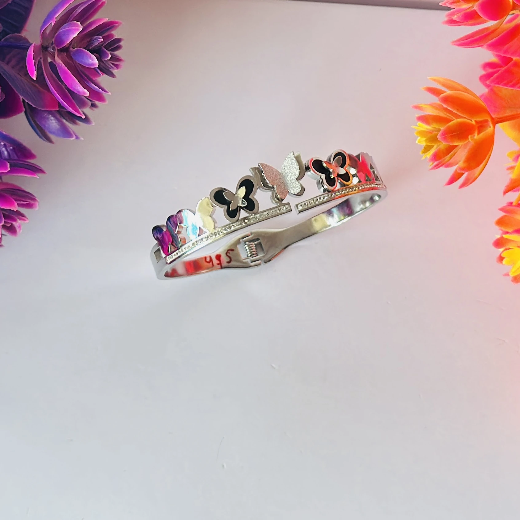 👉Theme :- silver-tone butterfly charm bangle bracelet