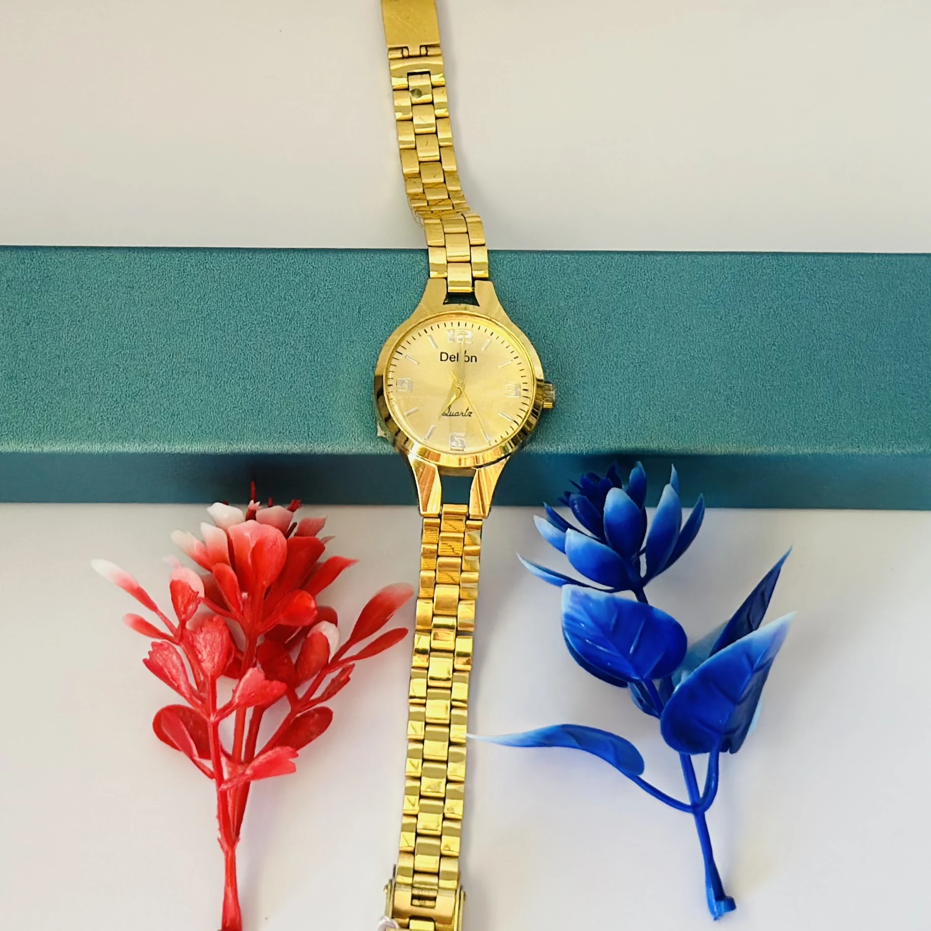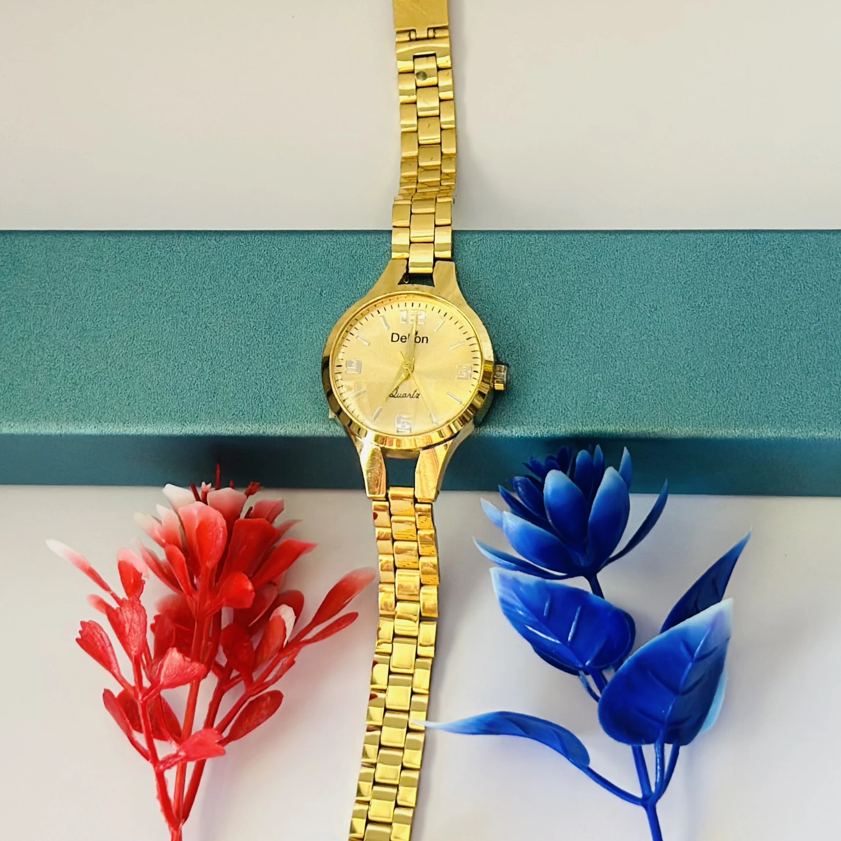 👉 Theme :- Skylark beautiful Girls Analog Watch in gold color with a metal chain strap and a quartz movement.