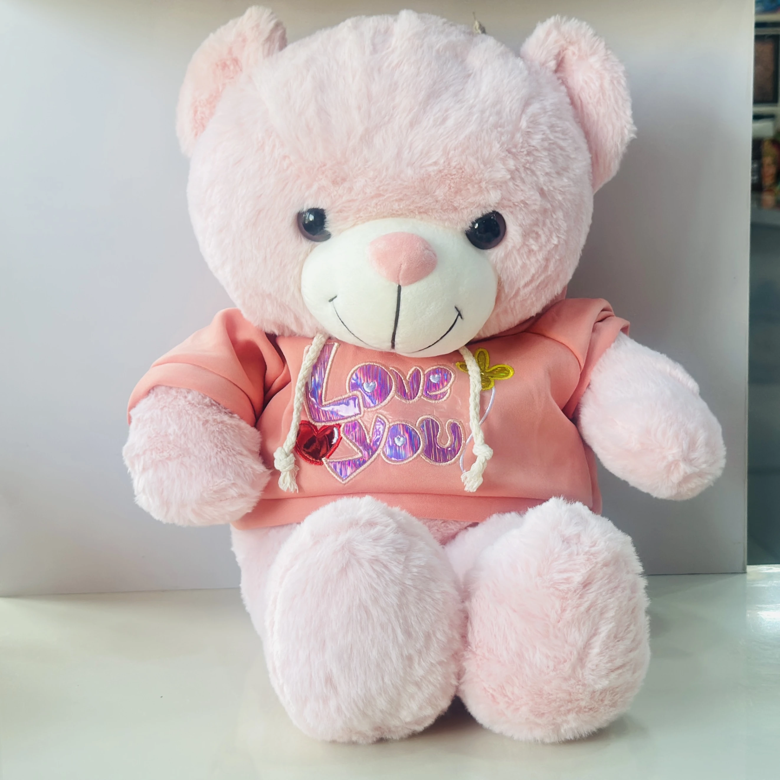 👉Theme :- soft plush teddy bear toy wearing a pink hoodie with "I Love You" text.