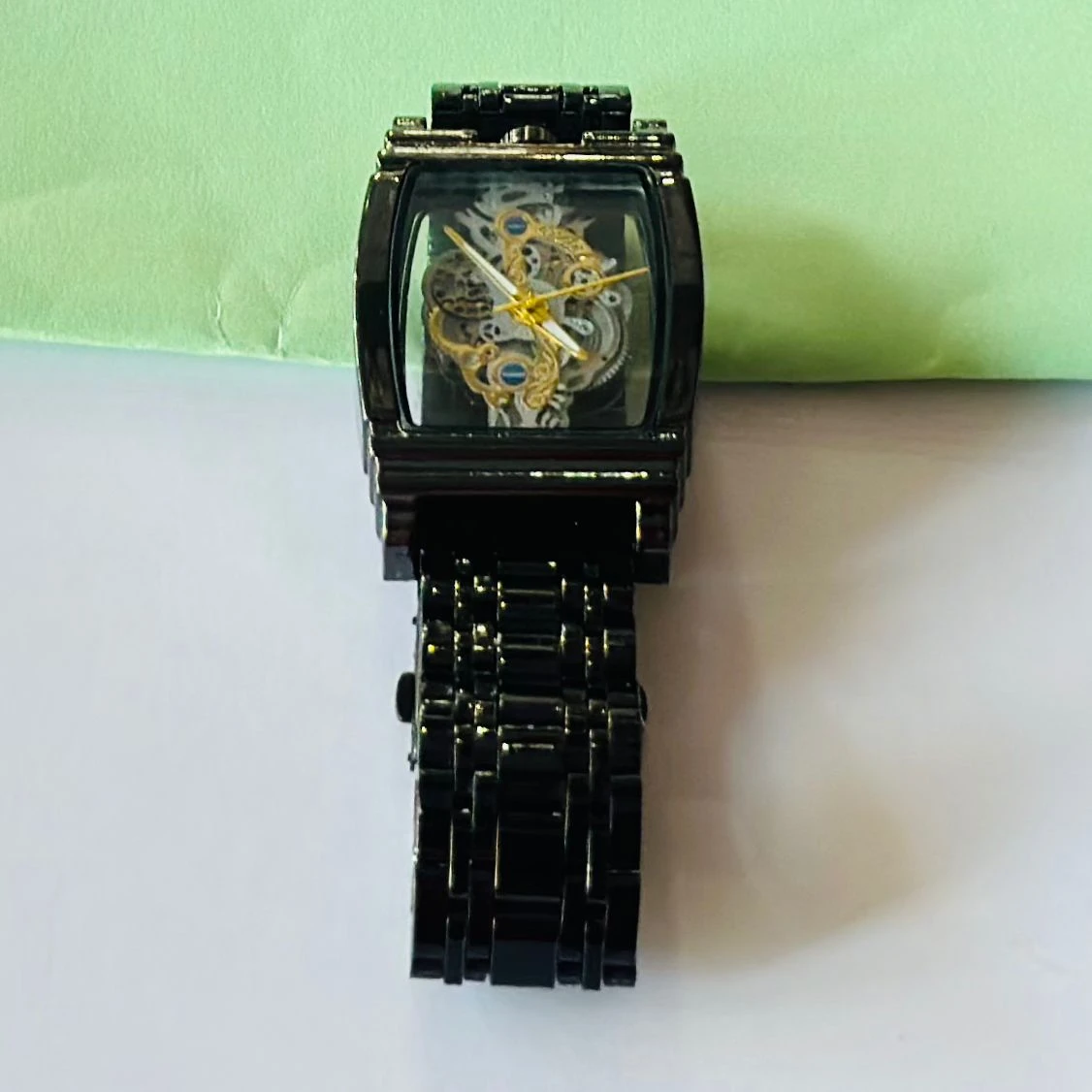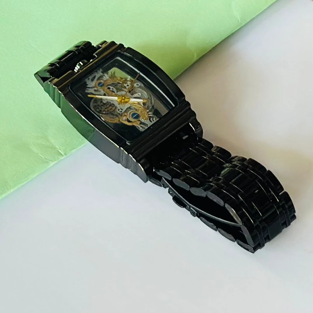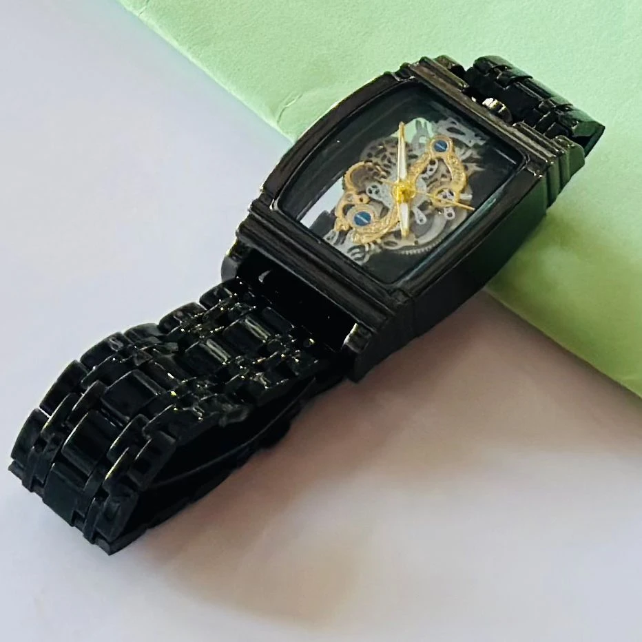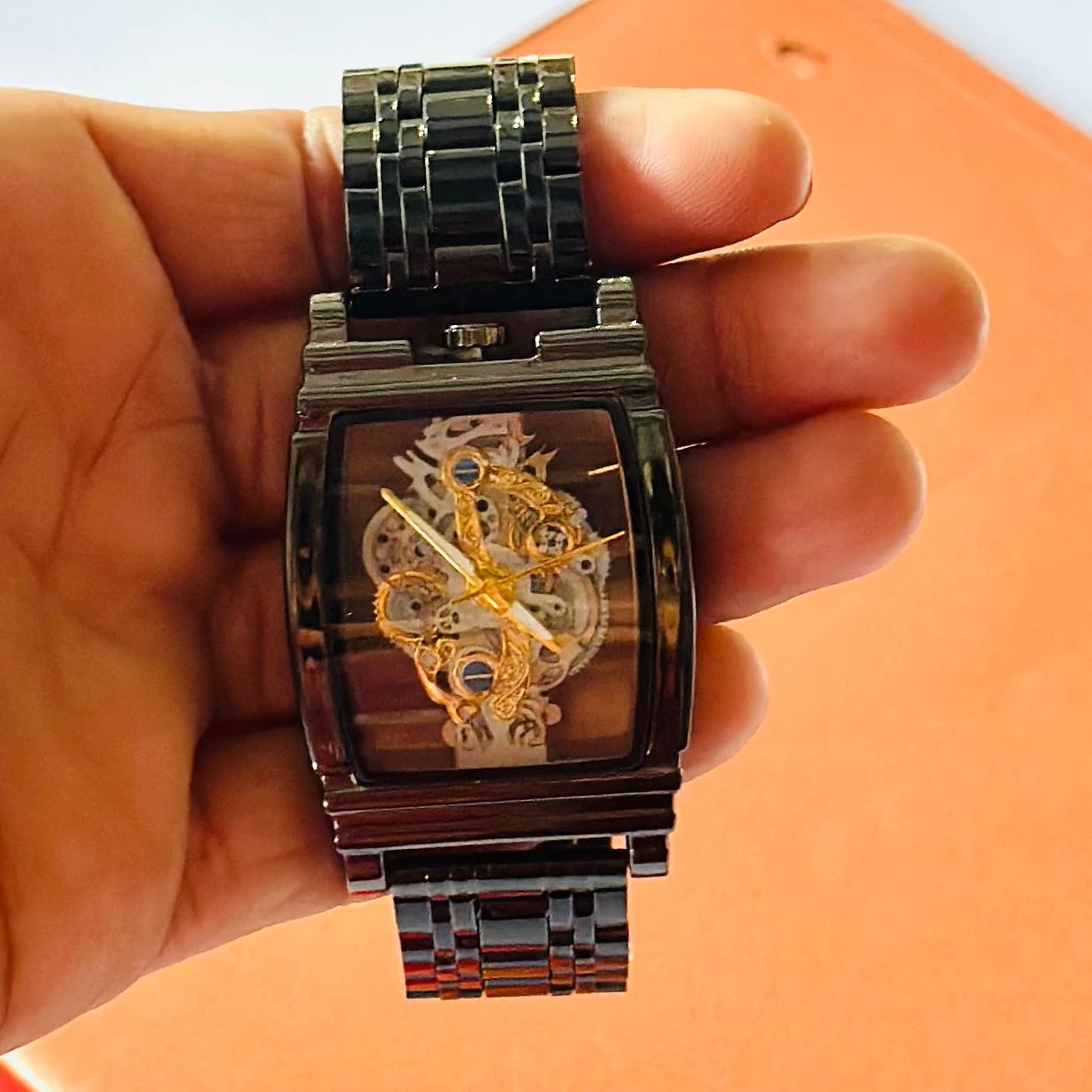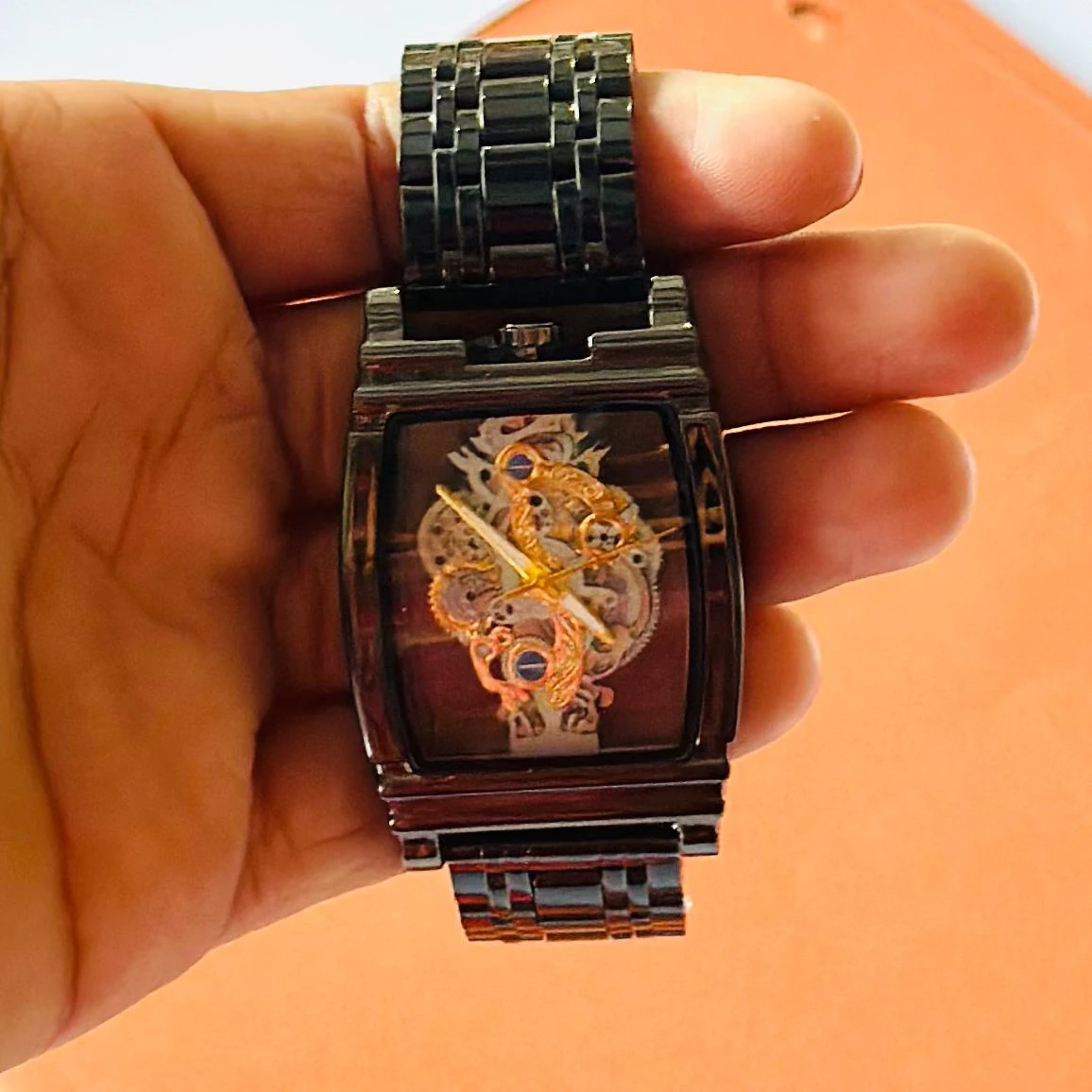 👉 Theme :- Spinning Wheel analog men's watch with black stainless steel case and metal strap
