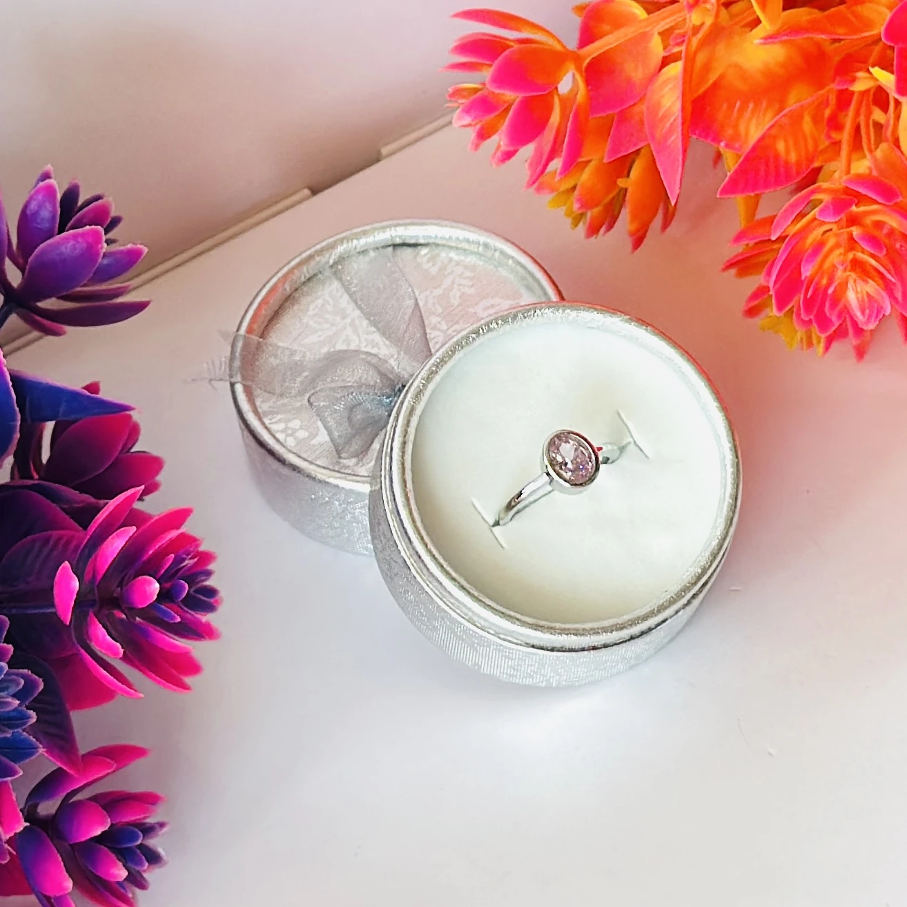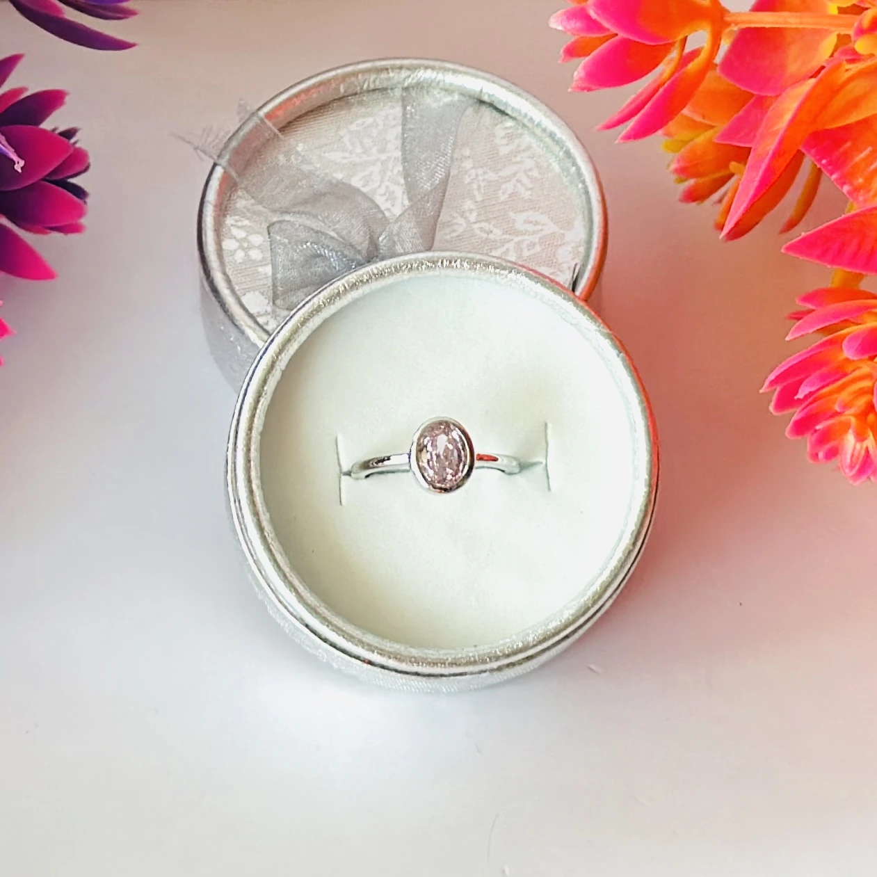 👉Theme :- Silver ring with an oval-cut amethyst gemstone.