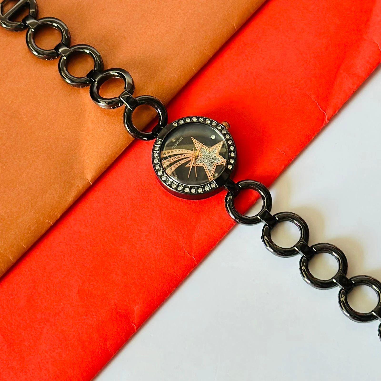 Stunners Quartz Analog Black Dial Metal Strap Watch for Girls.