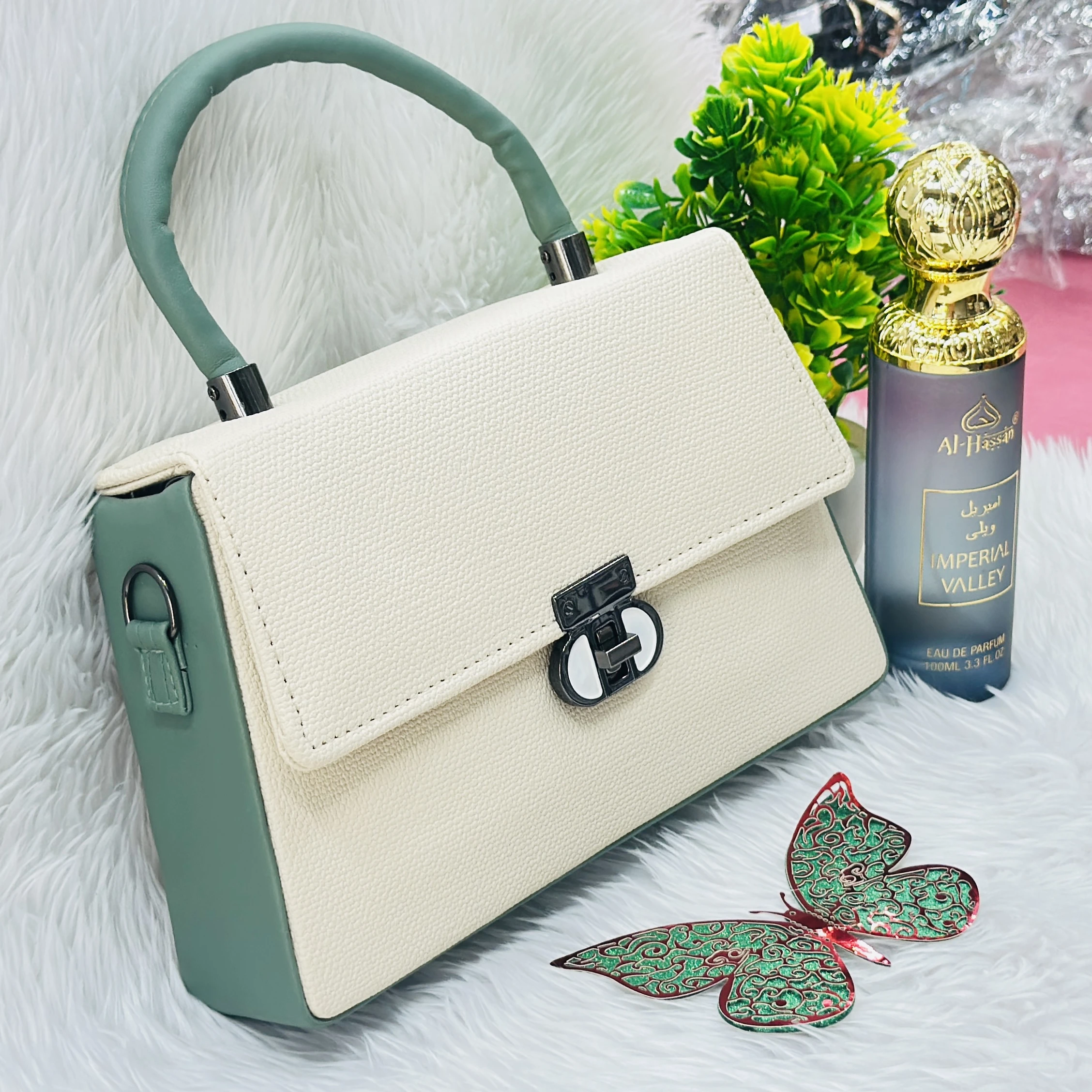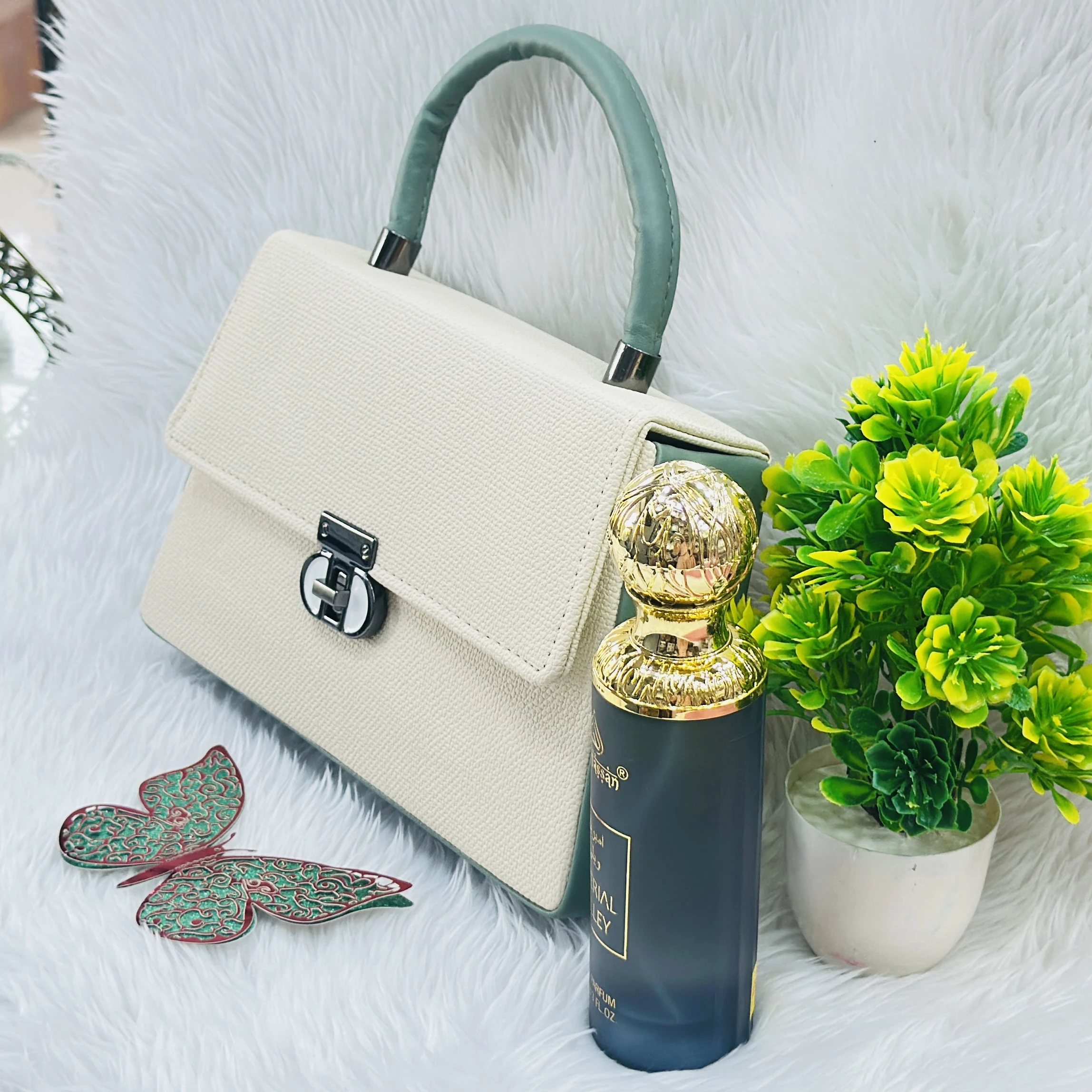 👉 Theme :- stylish cream-colored top-handle handbag
