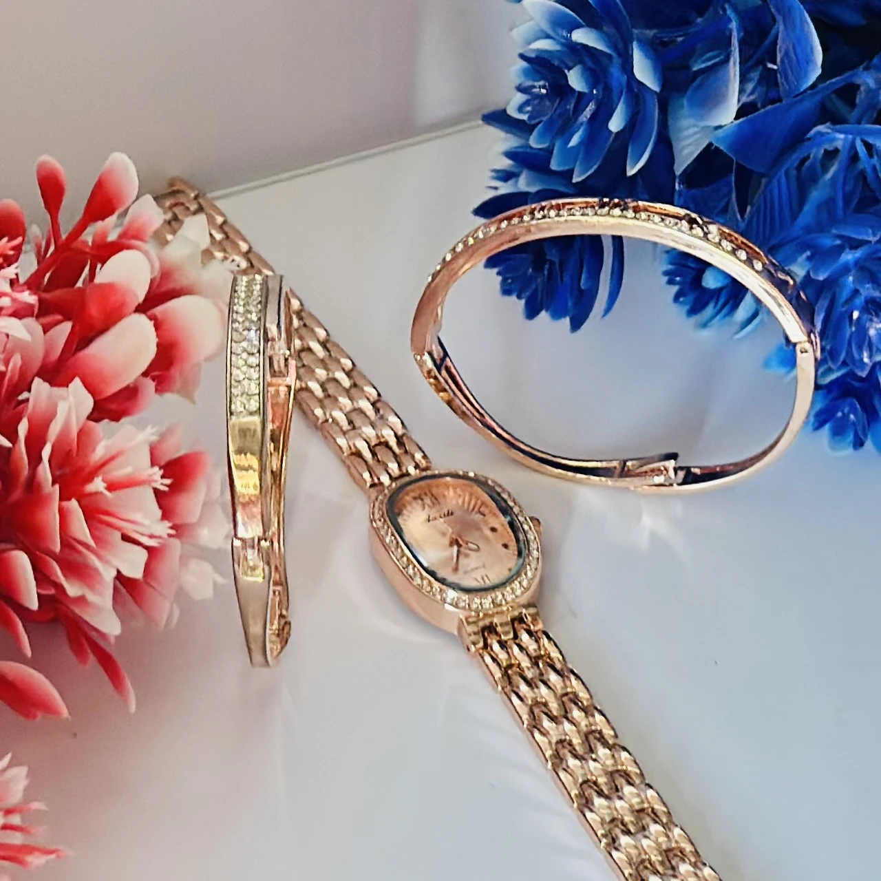 👉 Theme :- Stylish Rose Gold Floral Bracelet Watch