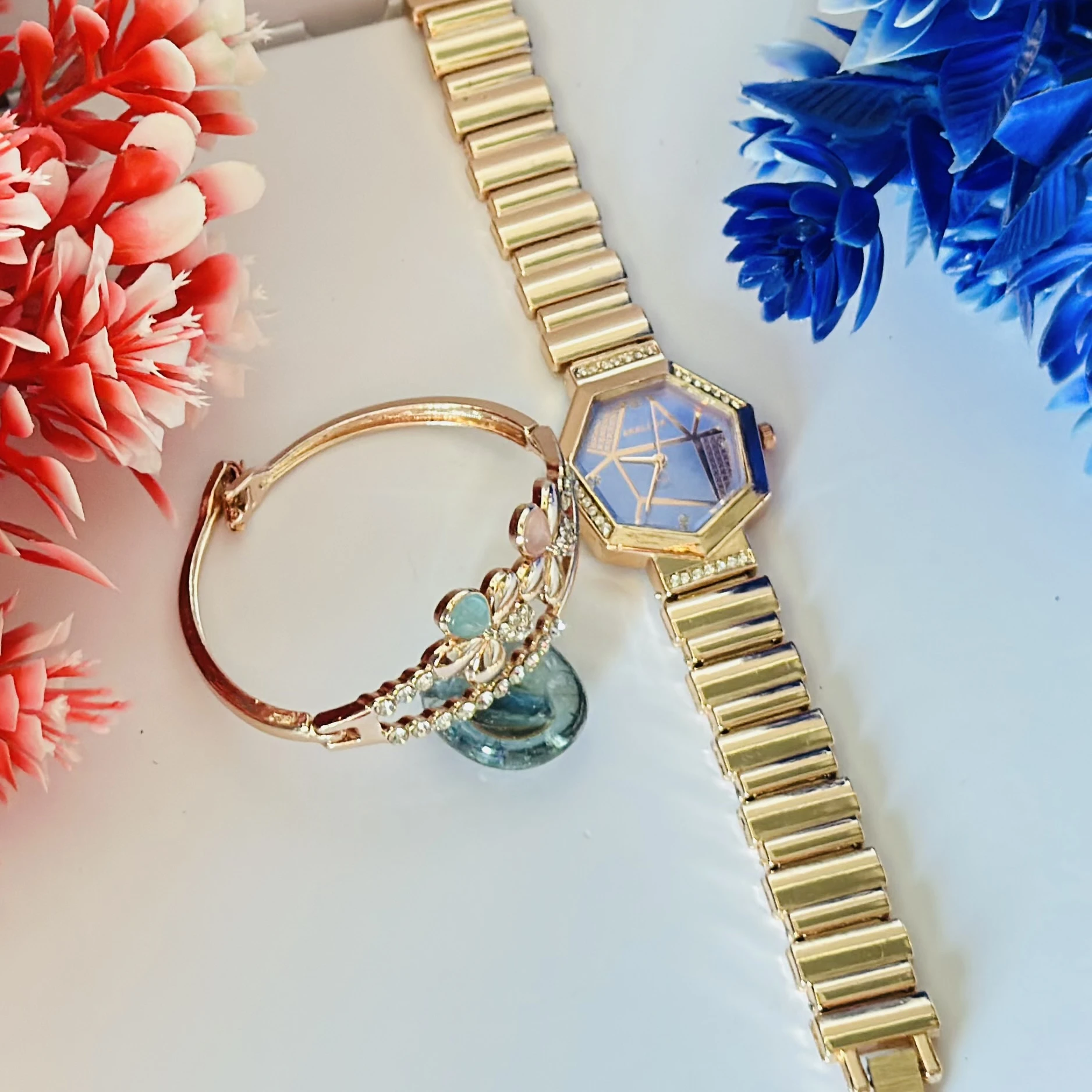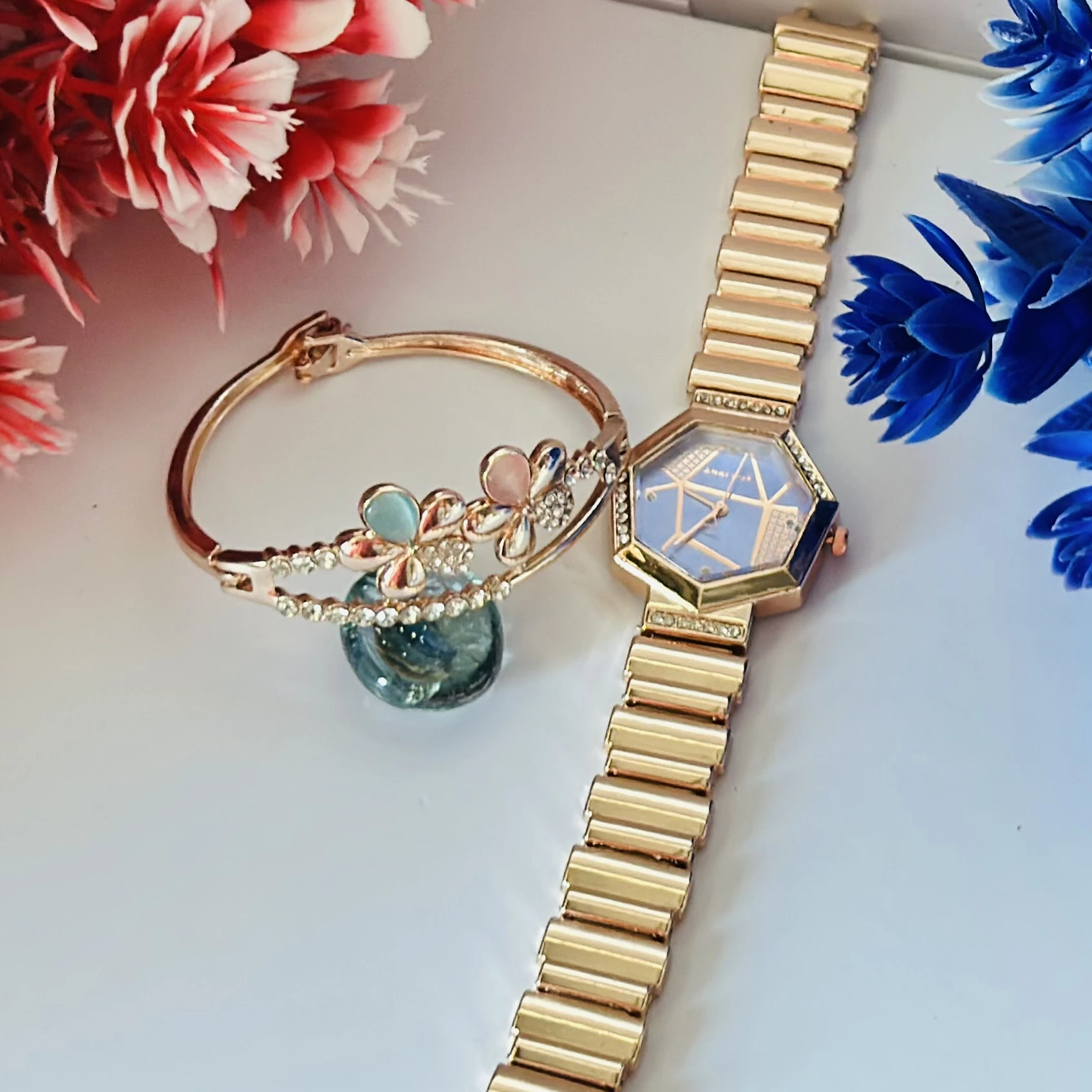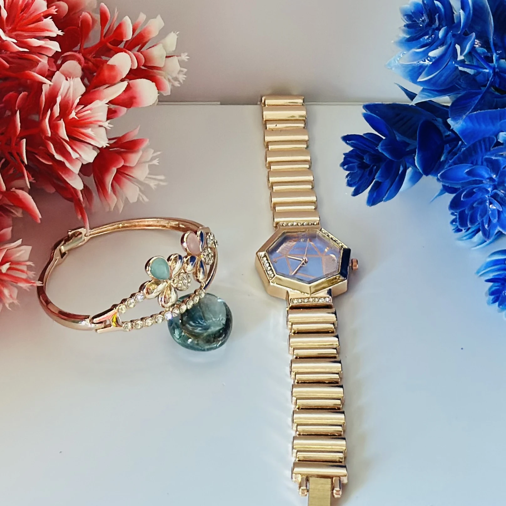 👉 Theme :- Stylish Rose Gold Floral Bracelet Watch