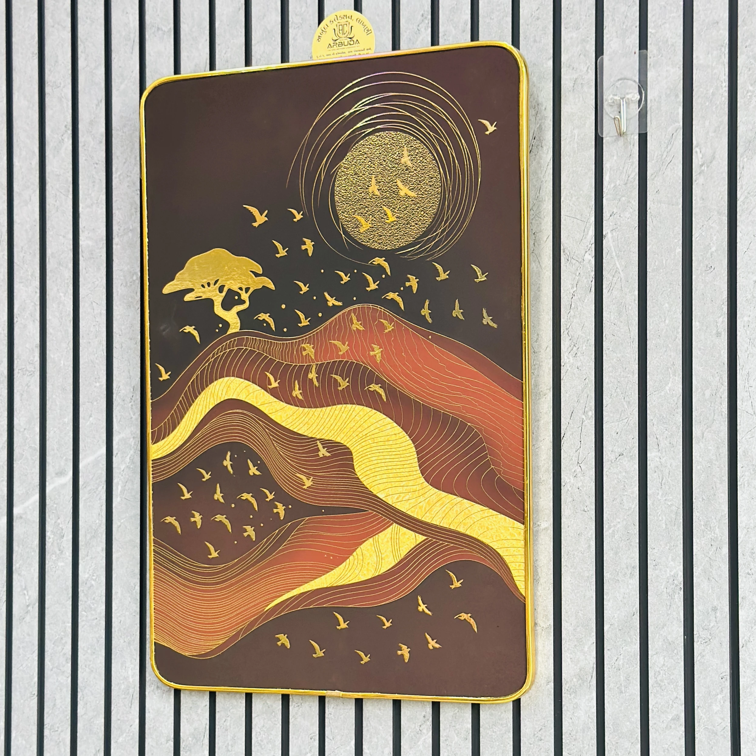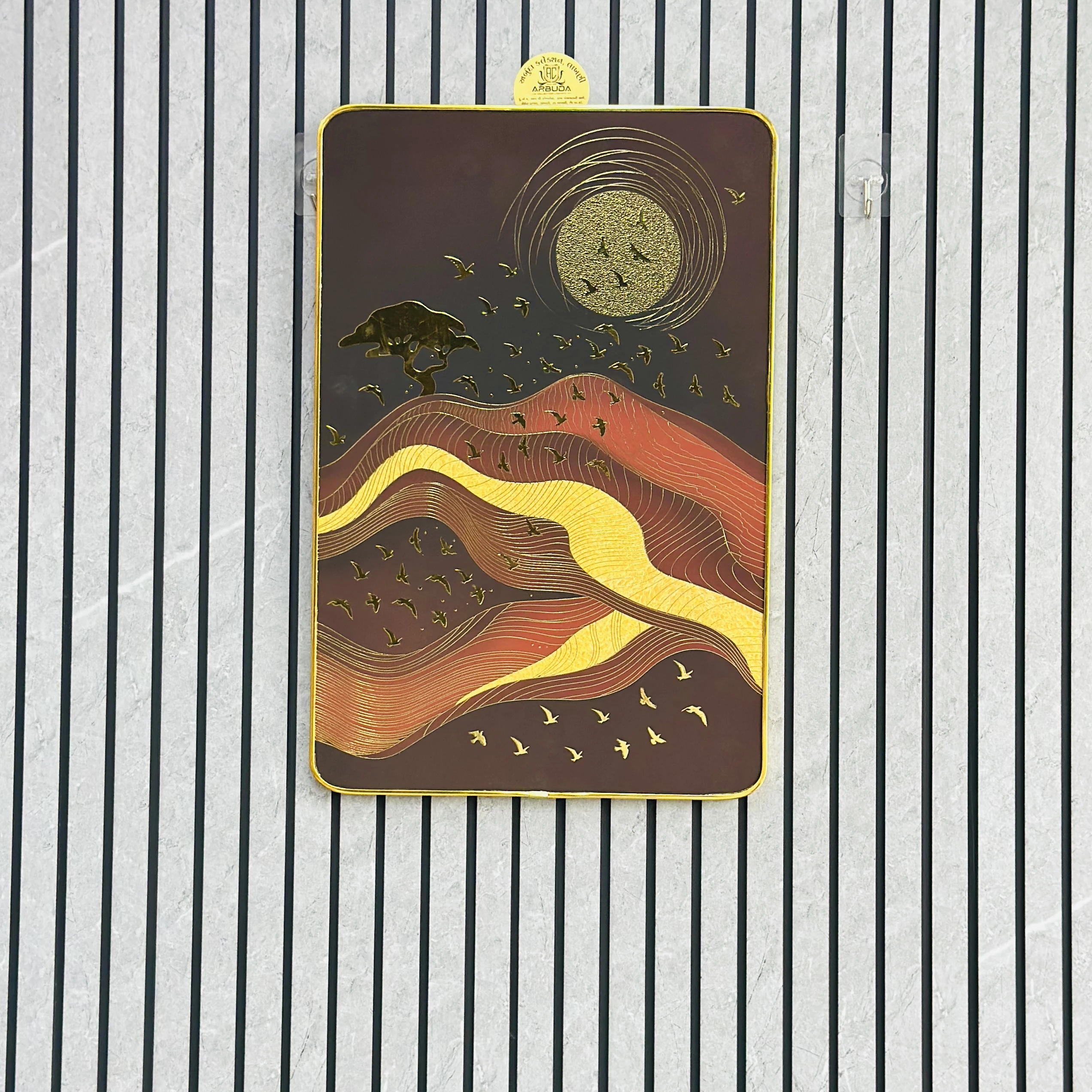 👉 Theme :- sun, mountains, a tree, and birds.