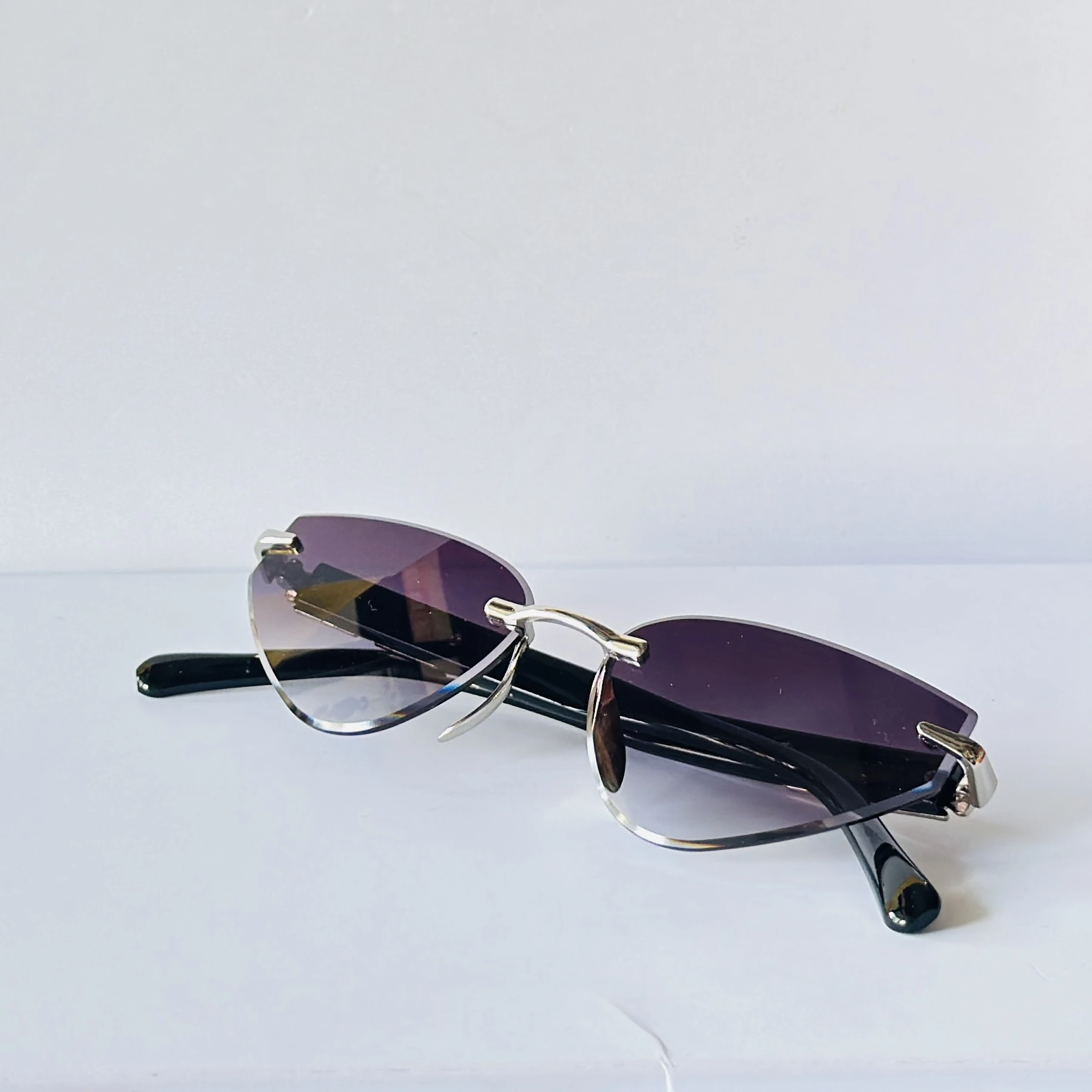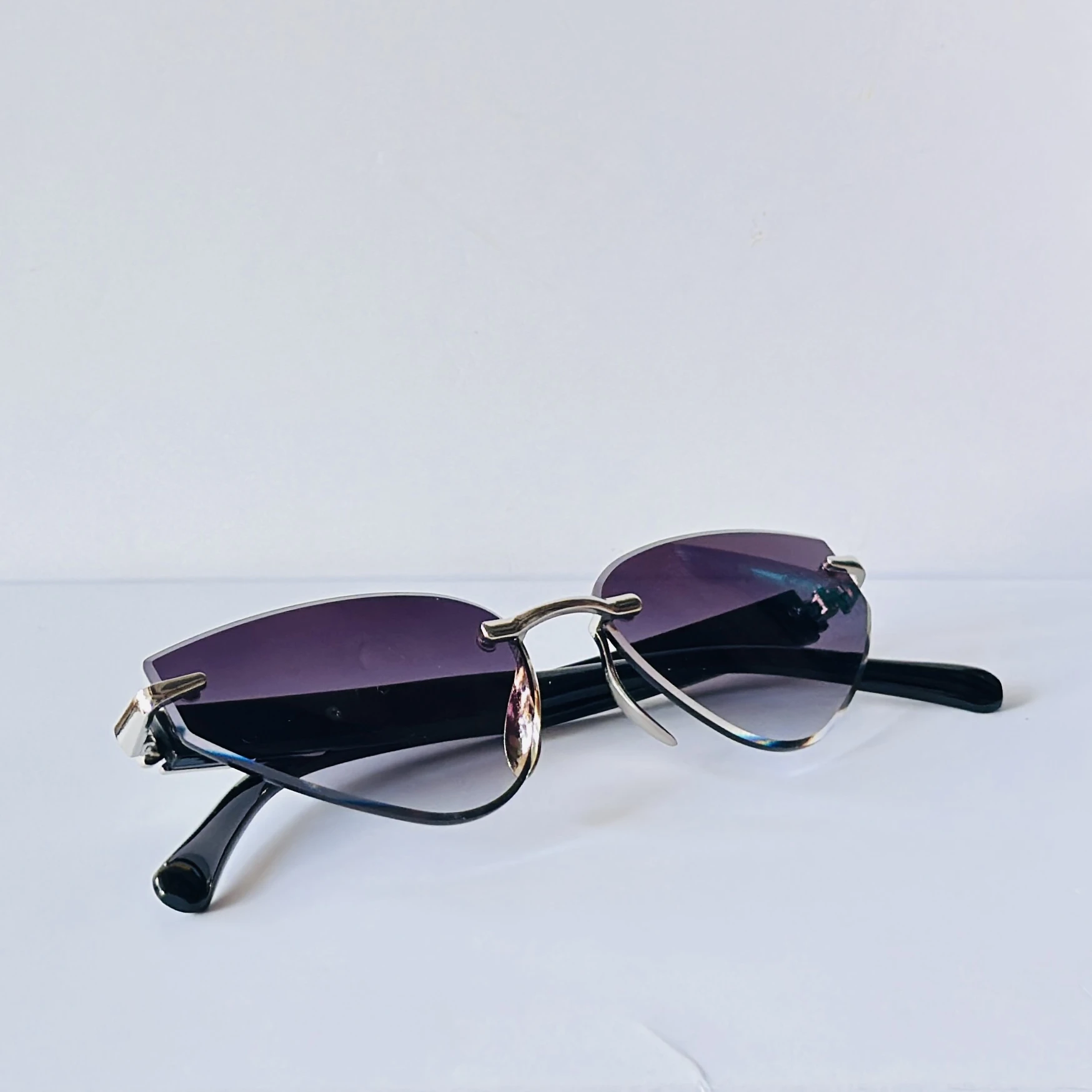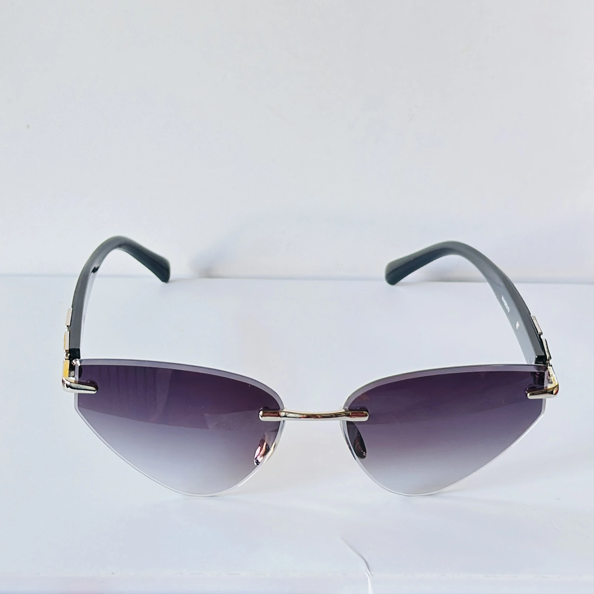 👉 Theme :- appears to be similar to rimless cat-eye sunglasses featuring a gold-tone frame and gradient lenses,.