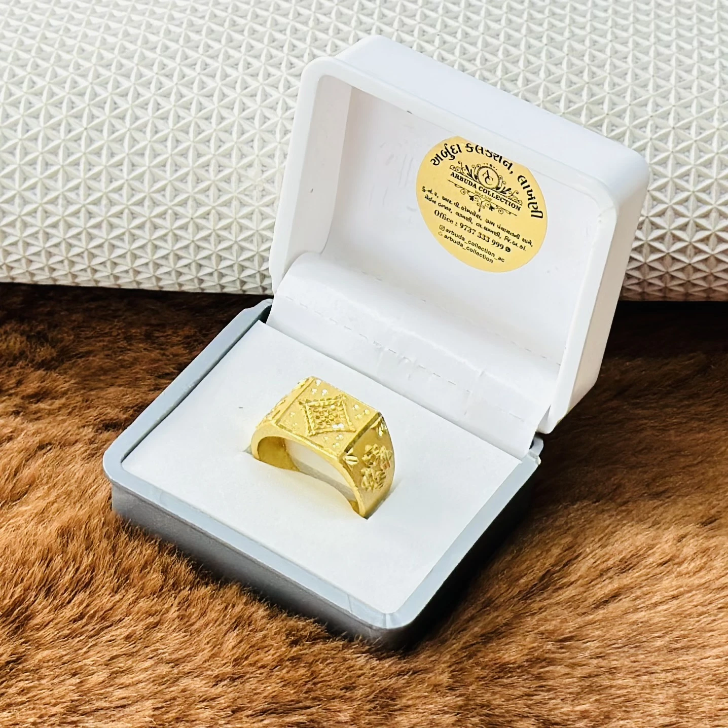 Tanishq Square Textured Mens Gold Finger Ring for Men.