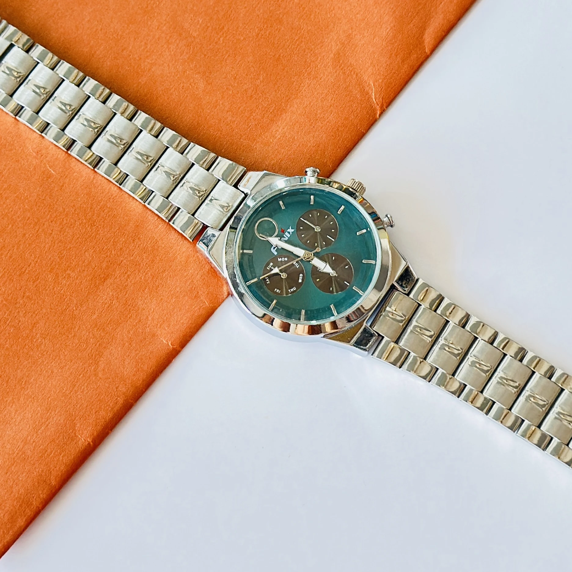 👉 Theme :- Time Track Men's Brass Silver Wrist Watch