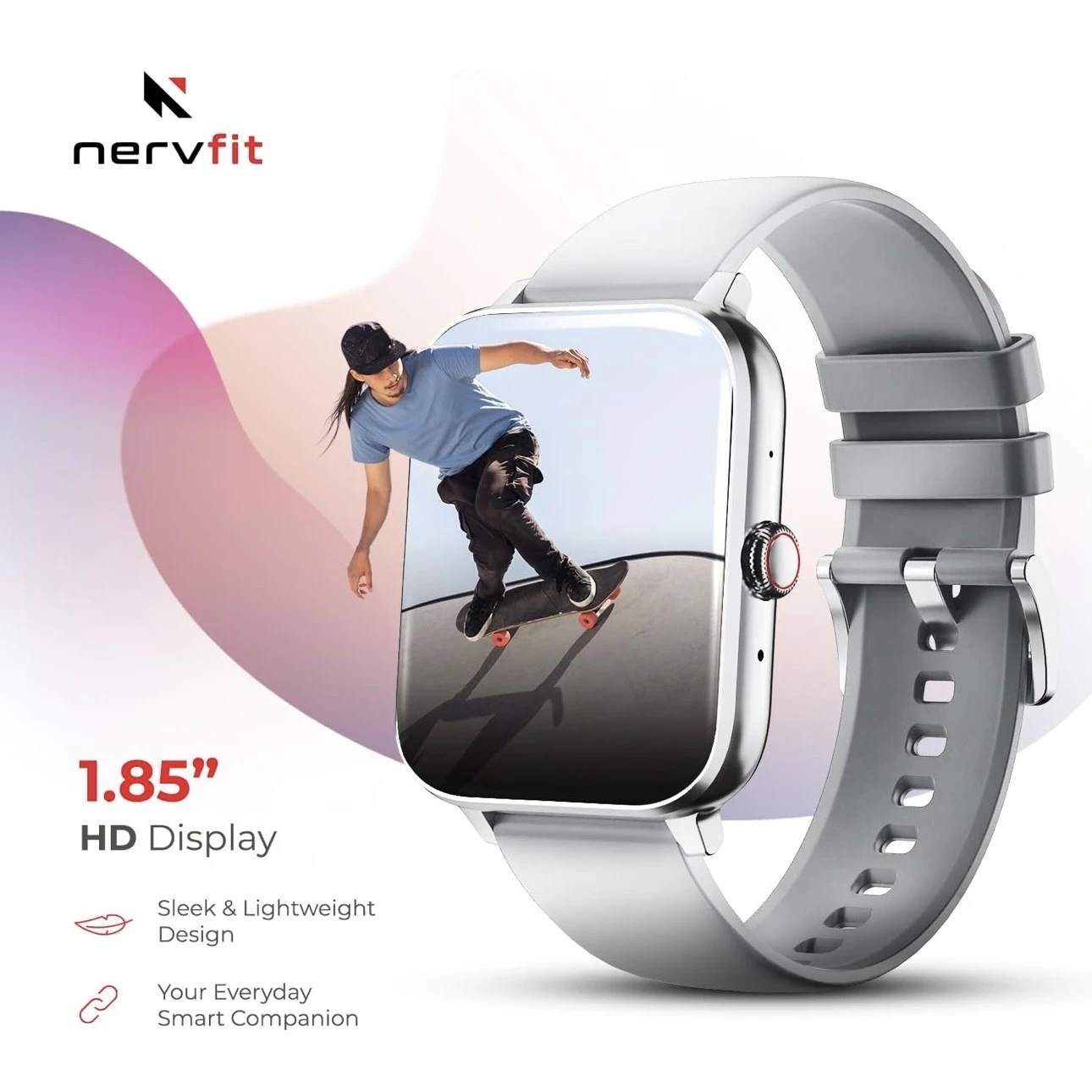 Nervfit Newly Launched Vibe Smartwatch with 1.85" LED Display | Bluetooth Calling | Waterproof | Heart Rate & SpO2 Tracking | Sleep & Stress Monitor | 5-Day Battery | Sports Modes (Cloud Grey)