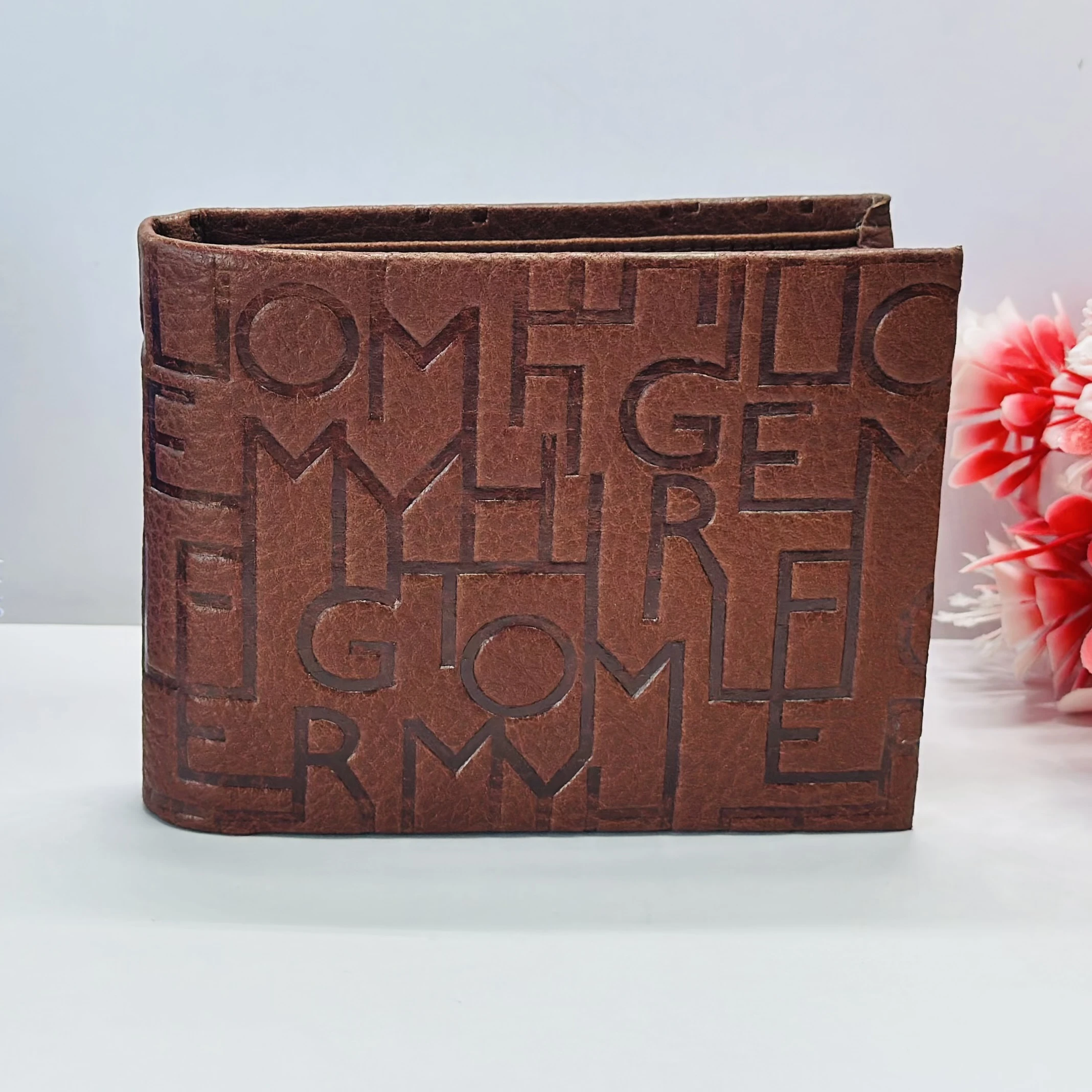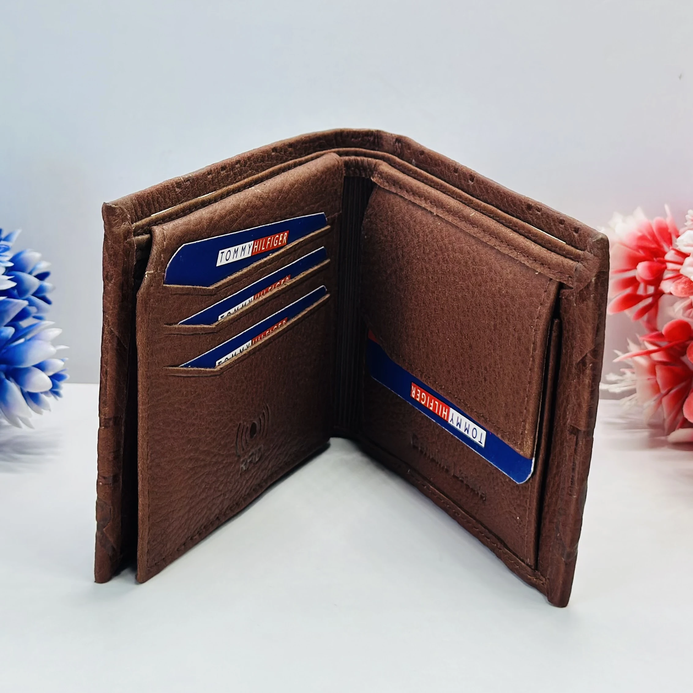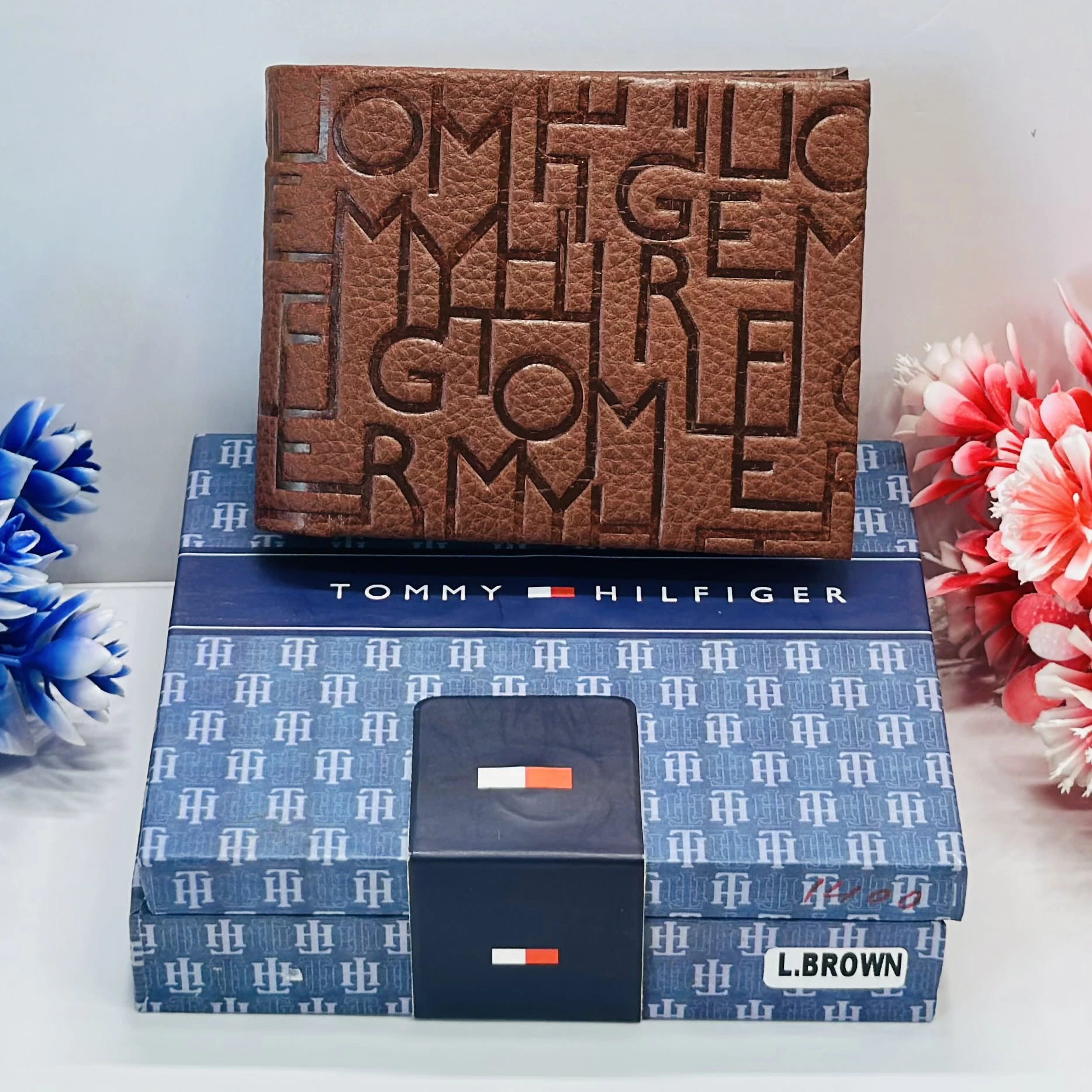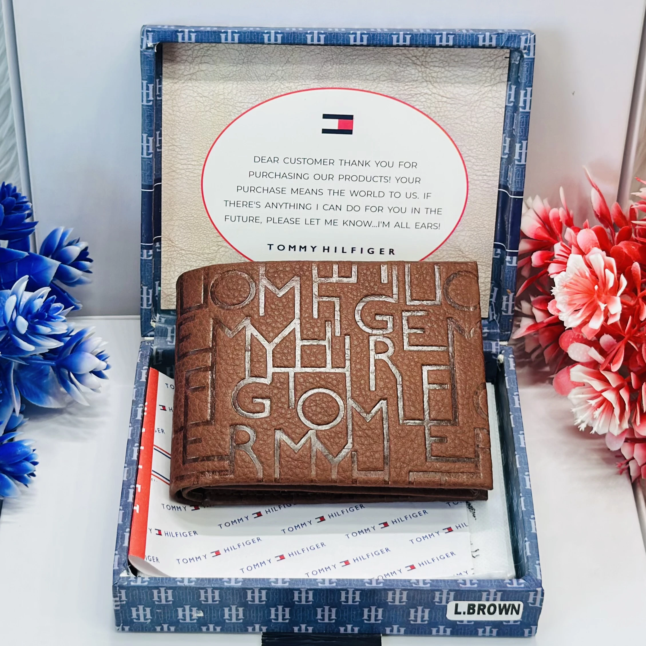 π Theme :- Tommy Hilfiger Erik embossed leather global coin wallet in a tan or light brown color.