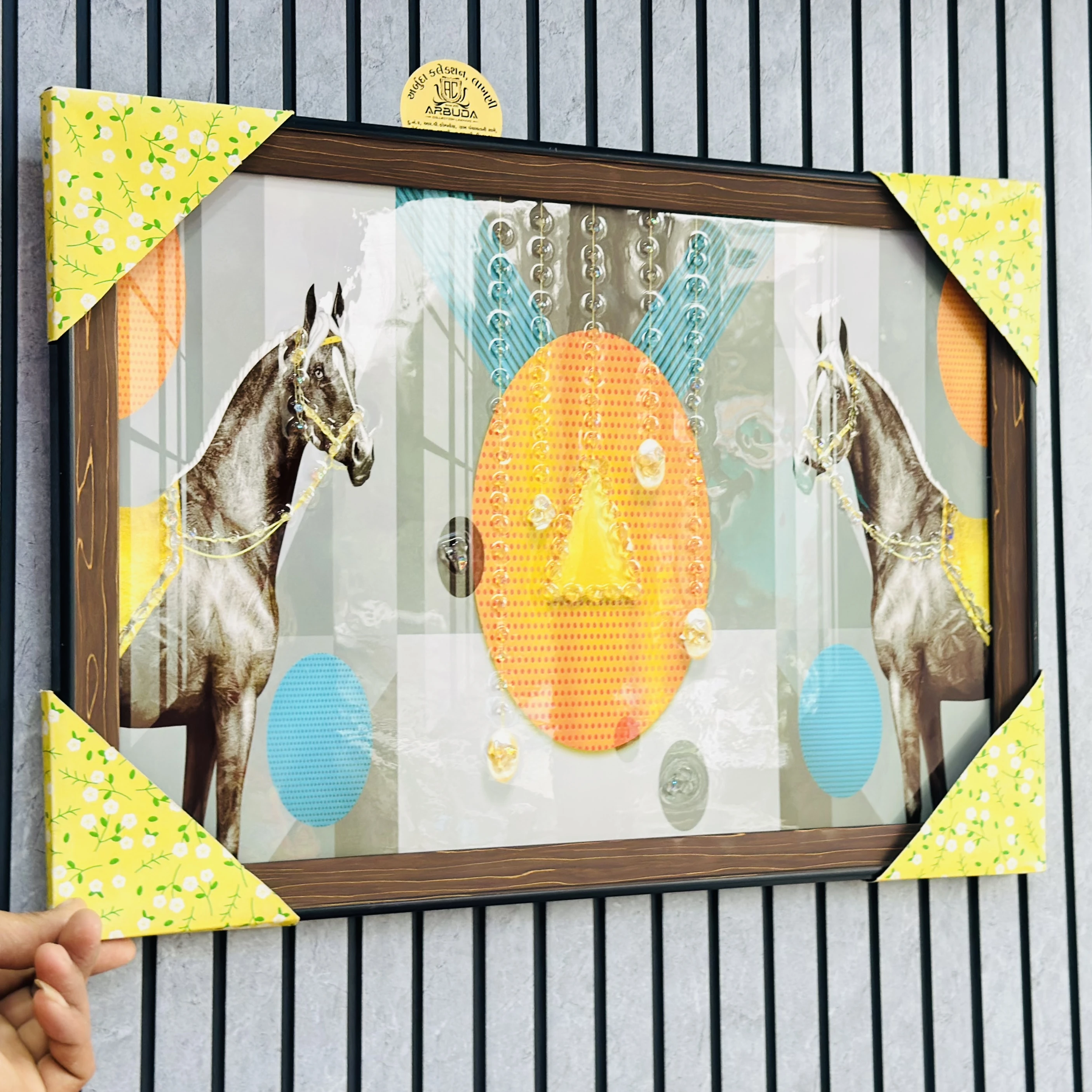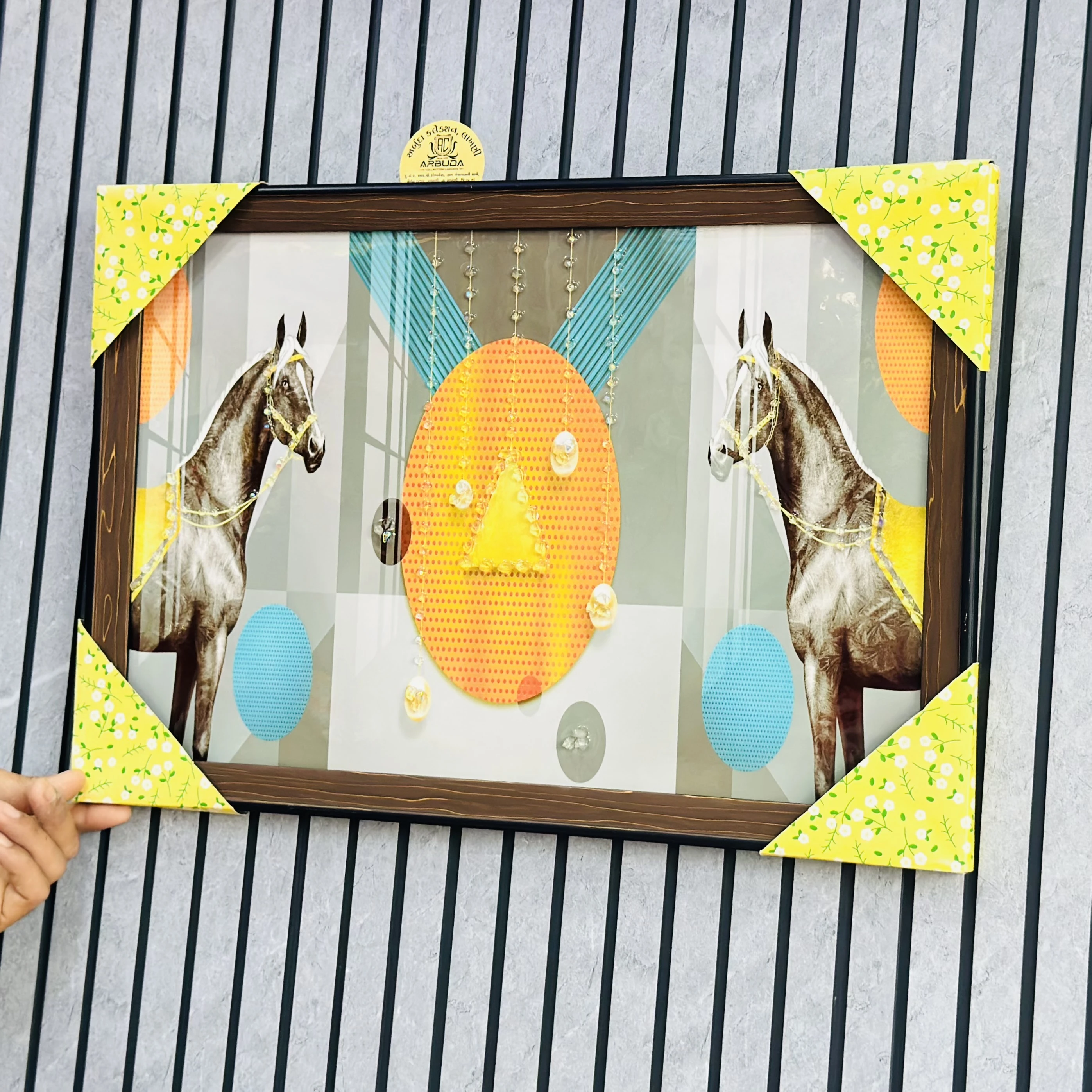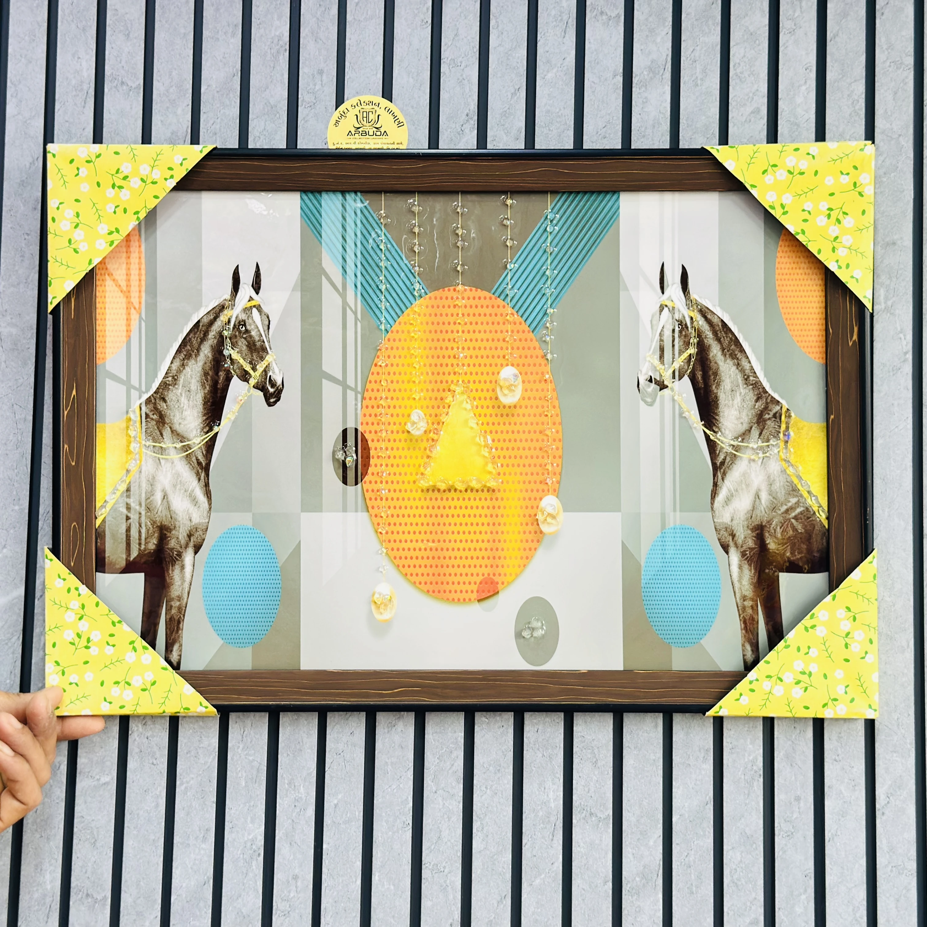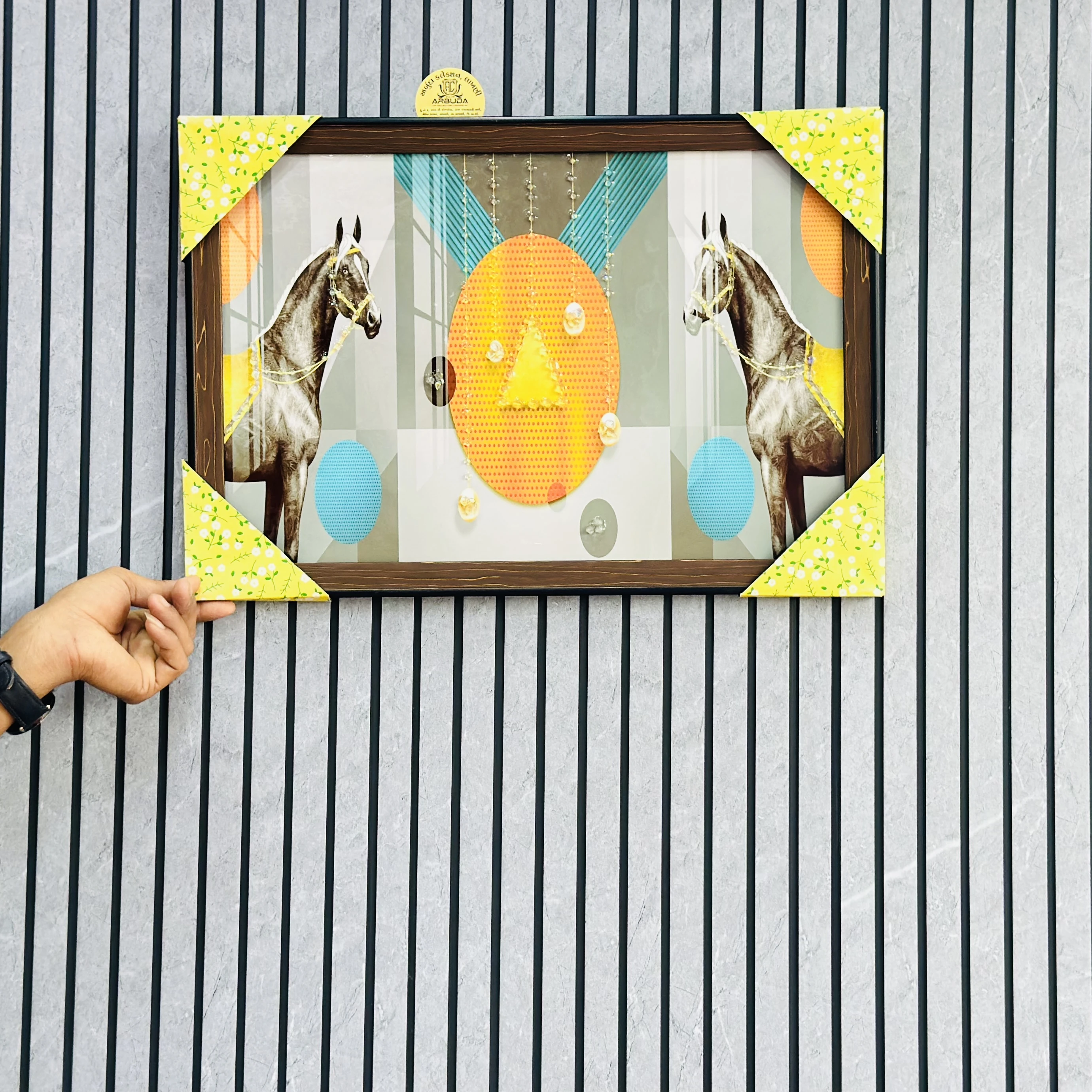 👉 Theme :- Two Horses and abstract geometric shapes.