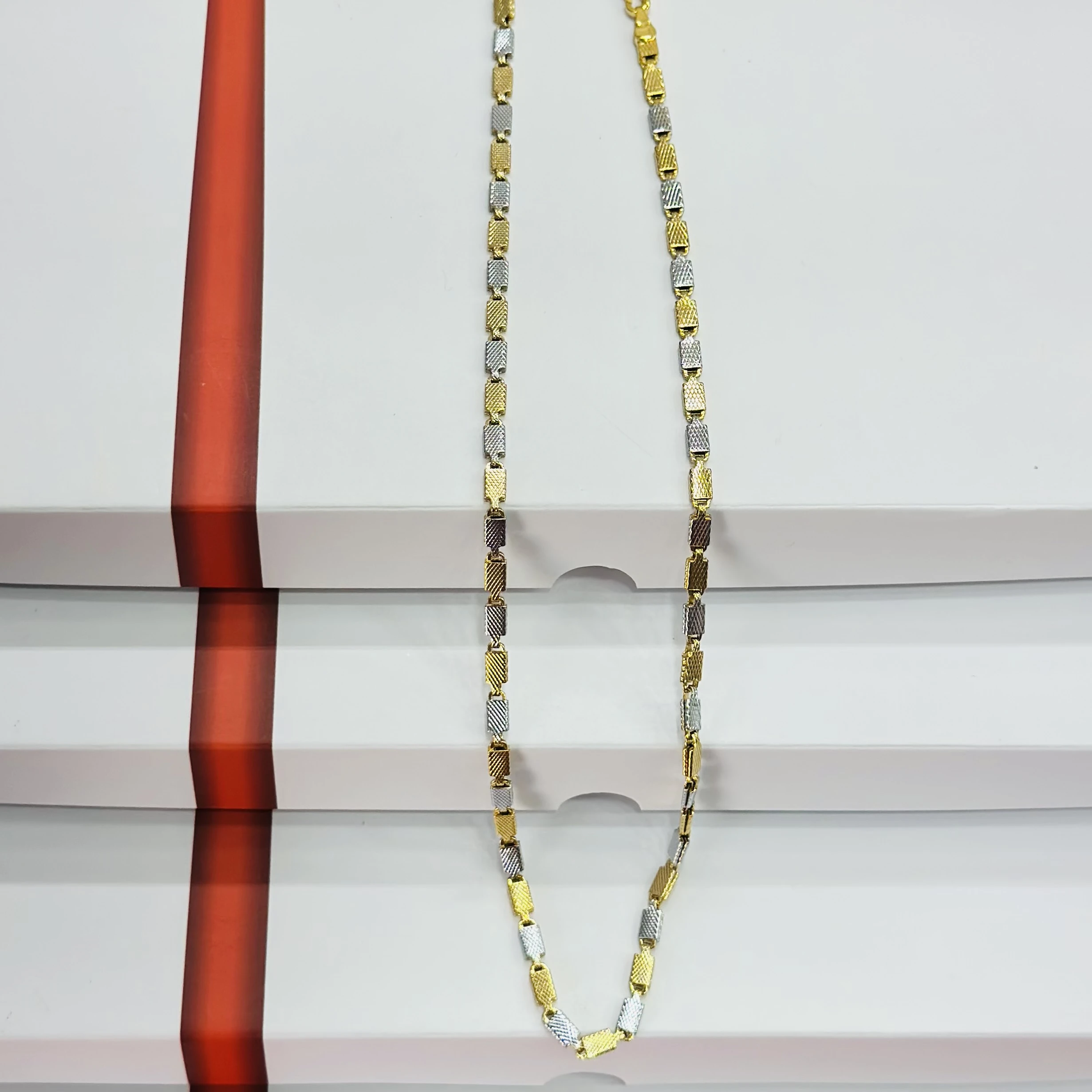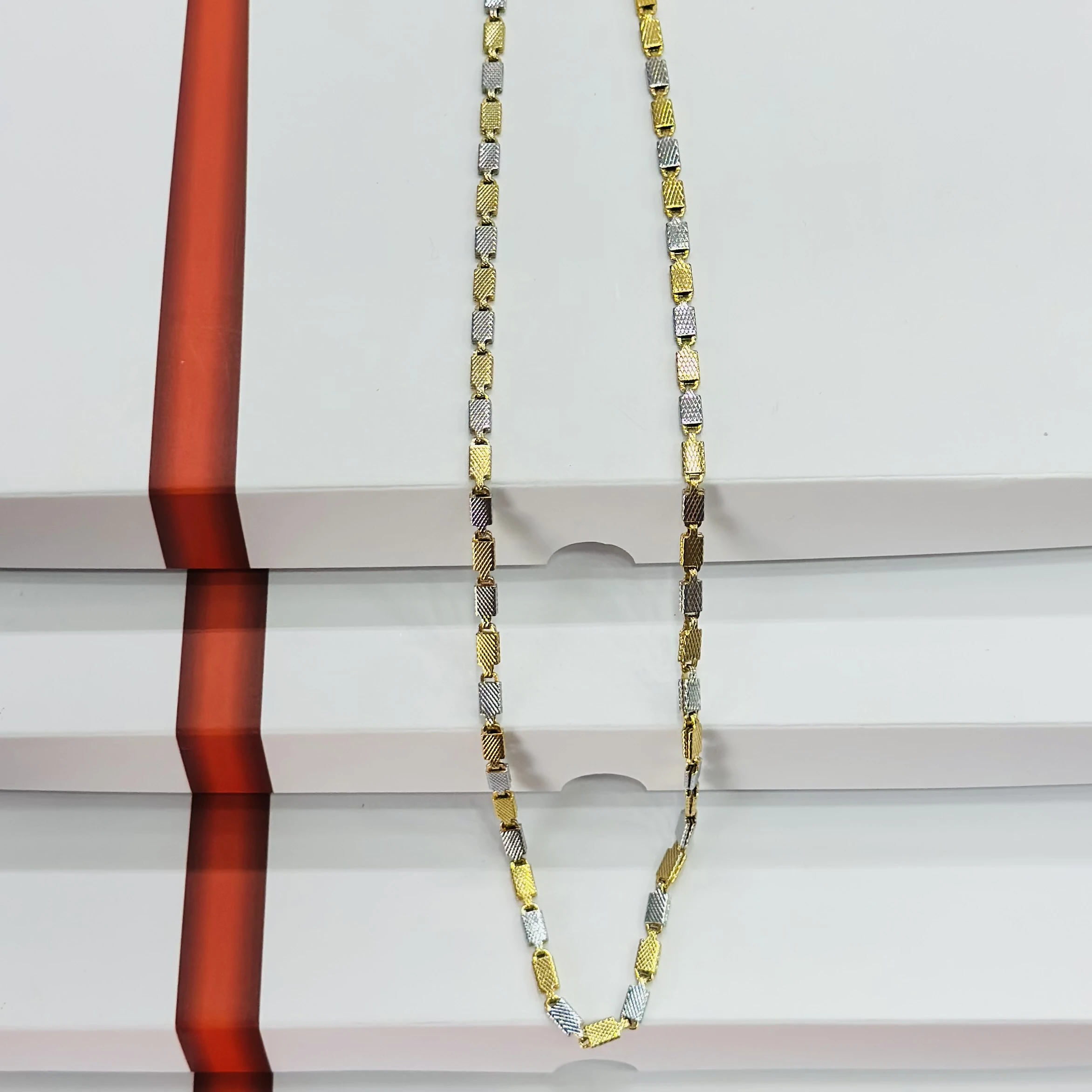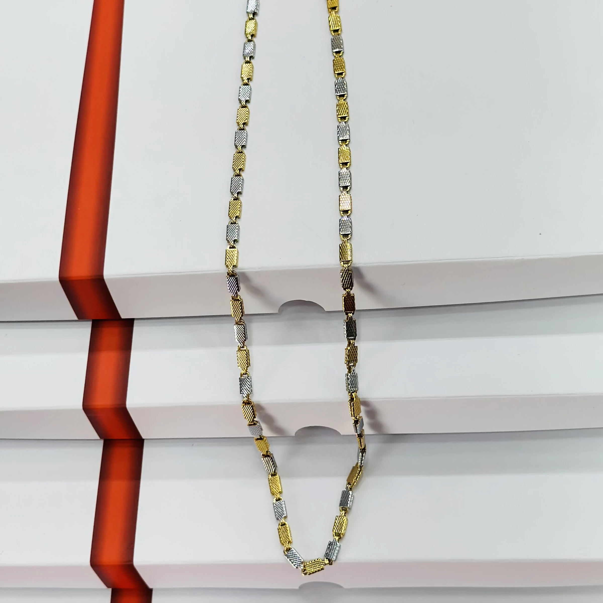 👉Theme :- two-tone silver and golden-colored stainless steel chain